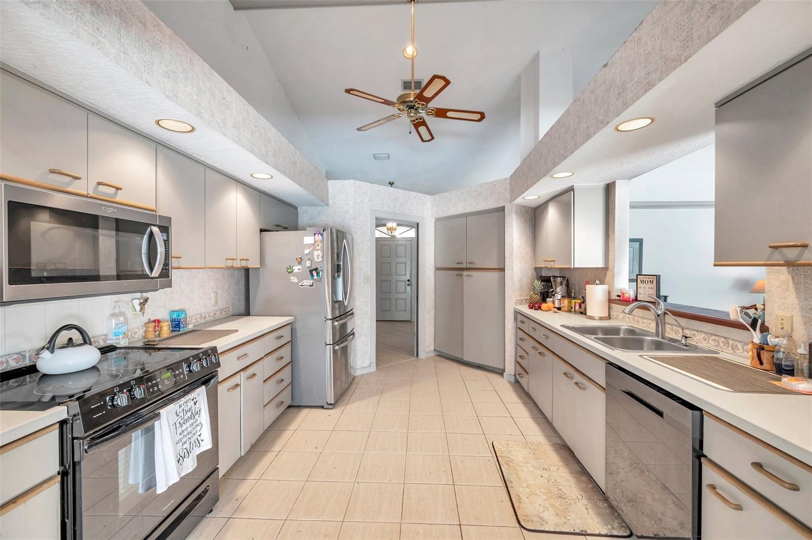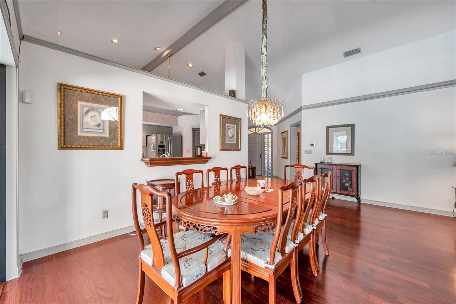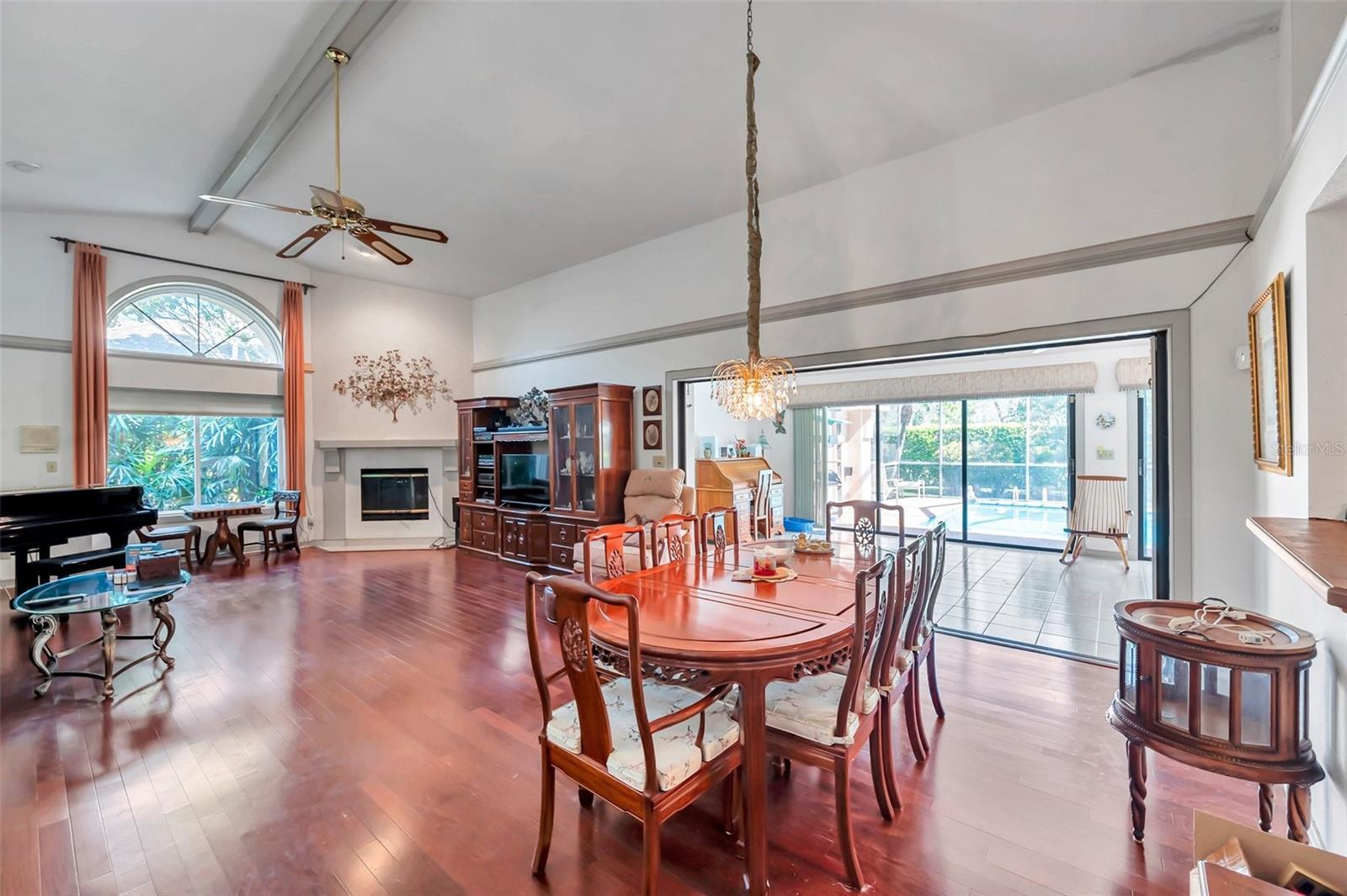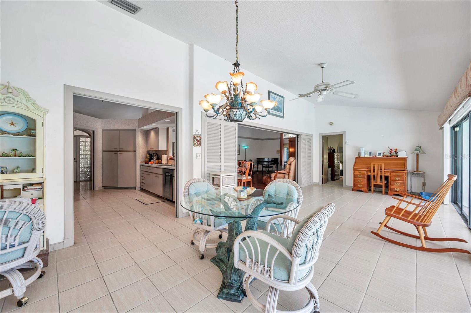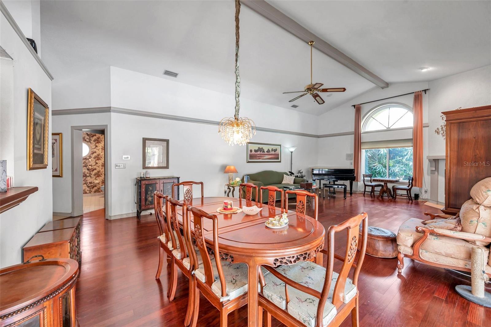 - Built-in Features, Cathedral Ceiling(s), Ceiling Fans(s), Eat-in Kitchen, High Ceilings, Living Room/Dining Room Combo, Split Bedroom, Walk-In Closet(s), Window Treatments