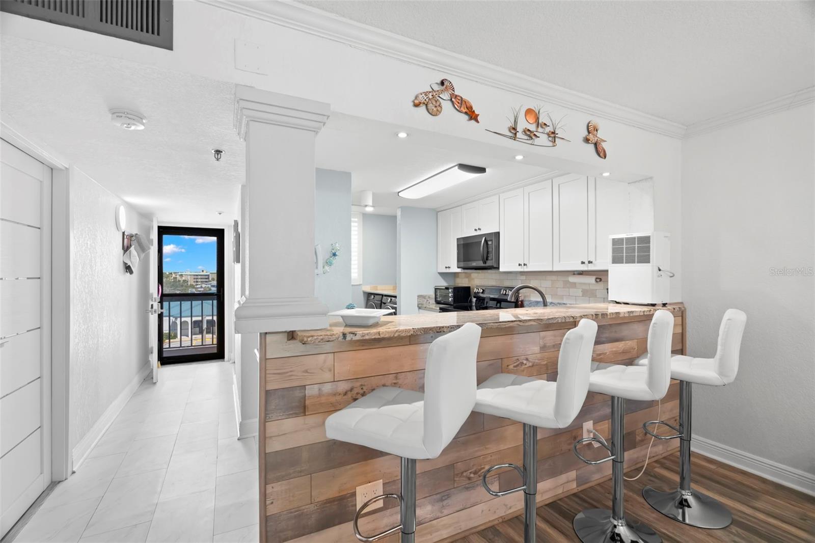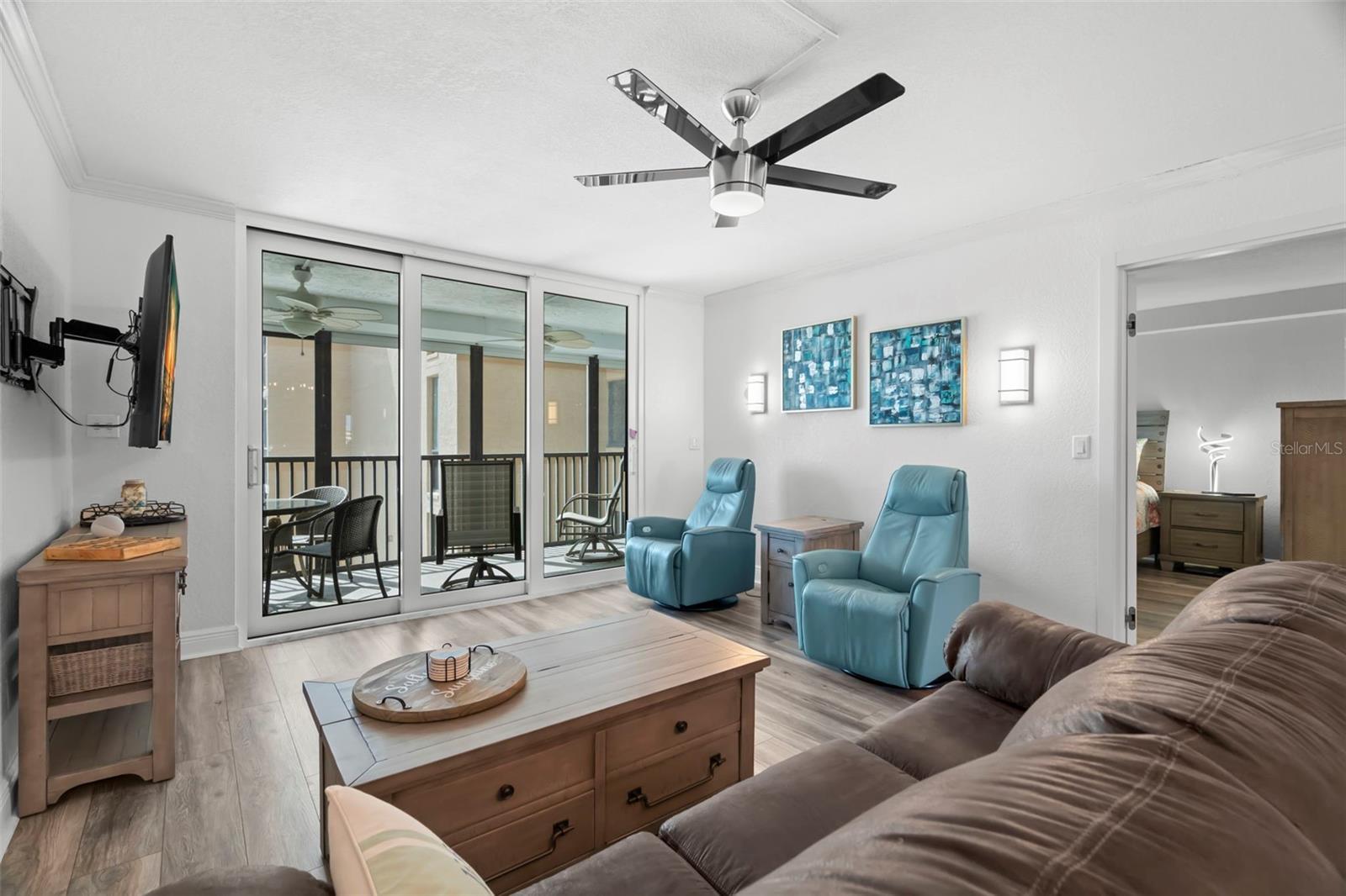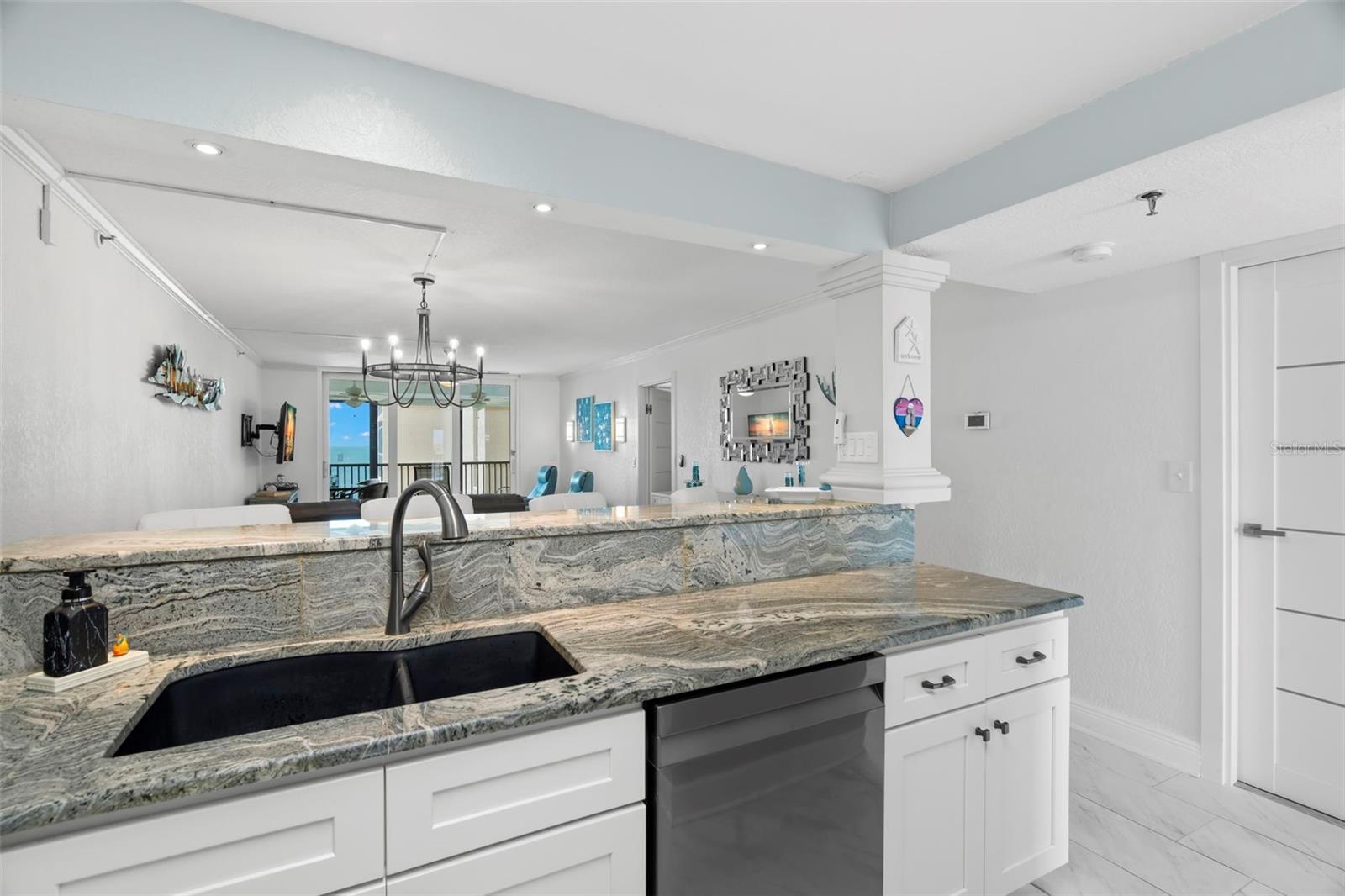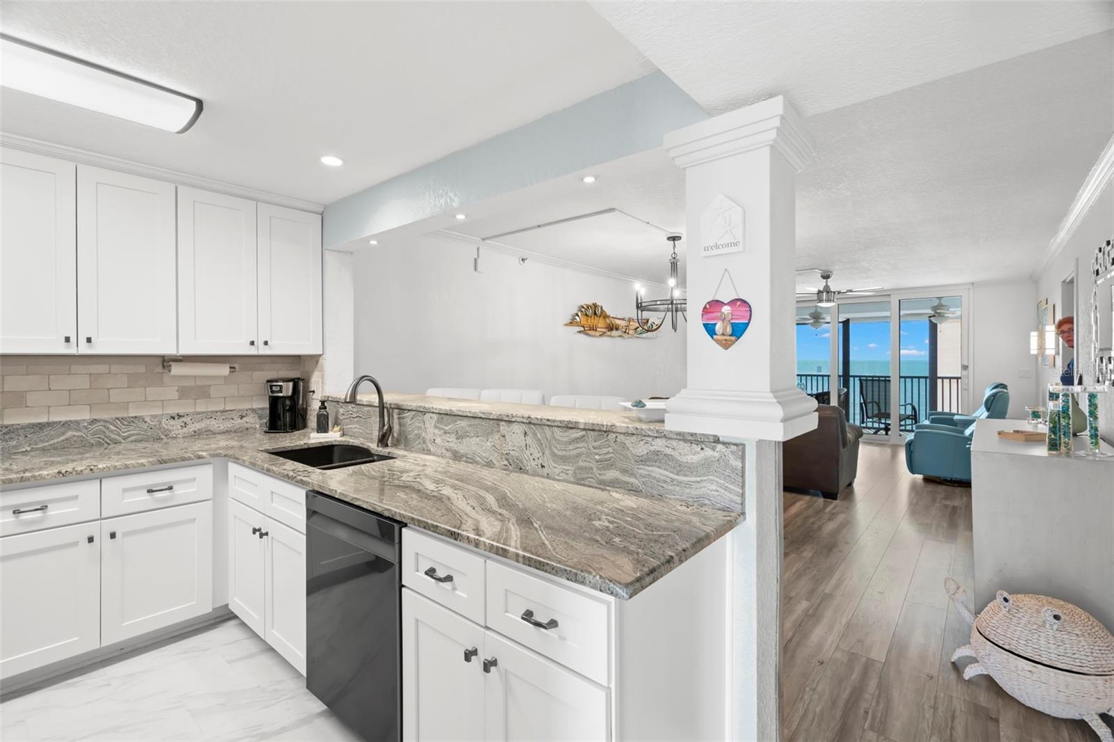 Stunning Gulf-Front Condo in the Heart of Madeira Beach. Experience the ultimate beachfront lifestyle in this beautifully renovated two-bedroom, two-bath condo overlooking the breathtaking Gulf of Mexico. From the moment you step through the front door, the mesmerizing blue waters draw you in, visible through the open floor plan family room and the floor-to-ceiling impact sliders that lead to the large screened-in lanai. Enjo expansive views of the white sandy beaches as you relax in your private outdoor oasis and enjoy the tropical sounds breezes. Inside, the condo boasts stylish laminate flooring and a completely updated kitchen featuring white shaker cabinets, granite countertops with bar seating, and sleek modern black stainless appliances. The conveniently located laundry area is equipped with a full-size black washer and dryer, set beneath a granite countertop perfect for folding and organizing. Wake up to spectacular Gulf views from the spacious owner’s suite, where floor-to-ceiling impact sliders open to the lanai, allowing you to soak in the sights and sounds of the beach from your bed. A generous walk-in closet offers ample storage, while the updated ensuite bath showcases a beautiful granite-topped vanity and a large walk-in shower. The guest bedroom is equally inviting, featuring a large window with plantation shutters, laminate flooring, and a spacious walk-in closet that the current owners cleverly used as an office. The updated guest bathroom offers a granite-topped vanity and a tub-shower combination. Additional highlights include a storage closet on the balcony, a screened lanai with hurricane shutters for added protection, and recent upgrades such as impact sliders and windows (2022), HVAC (2022), a water heater (2021), and a newer electrical service panel. This beachfront community features a sparkling pool and is ideally situated near restaurants, shopping, bars, and all the entertainment and boating activities of the world-famous John’s Pass Village and Boardwalk. Don’t miss this rare opportunity to own a slice of Gulfside paradise—call today for your private tour!