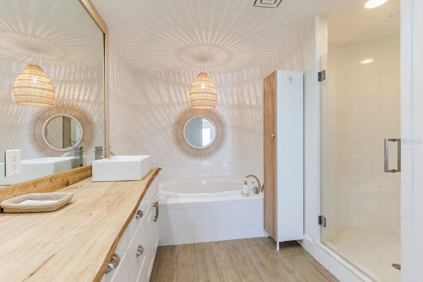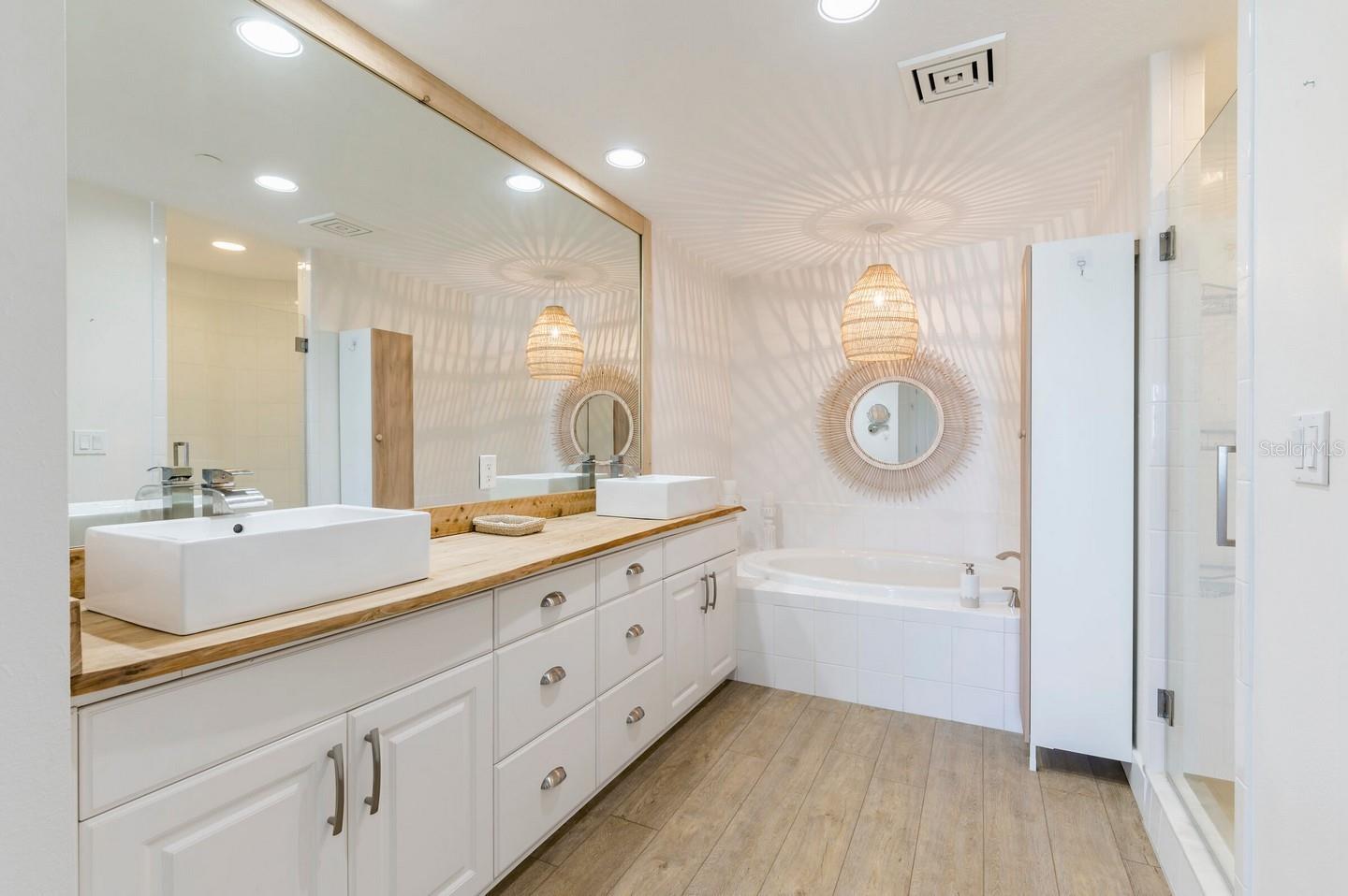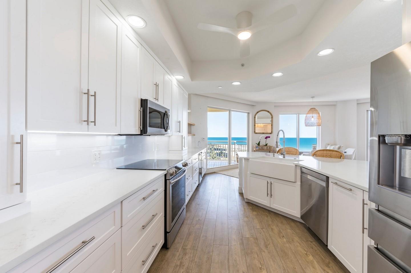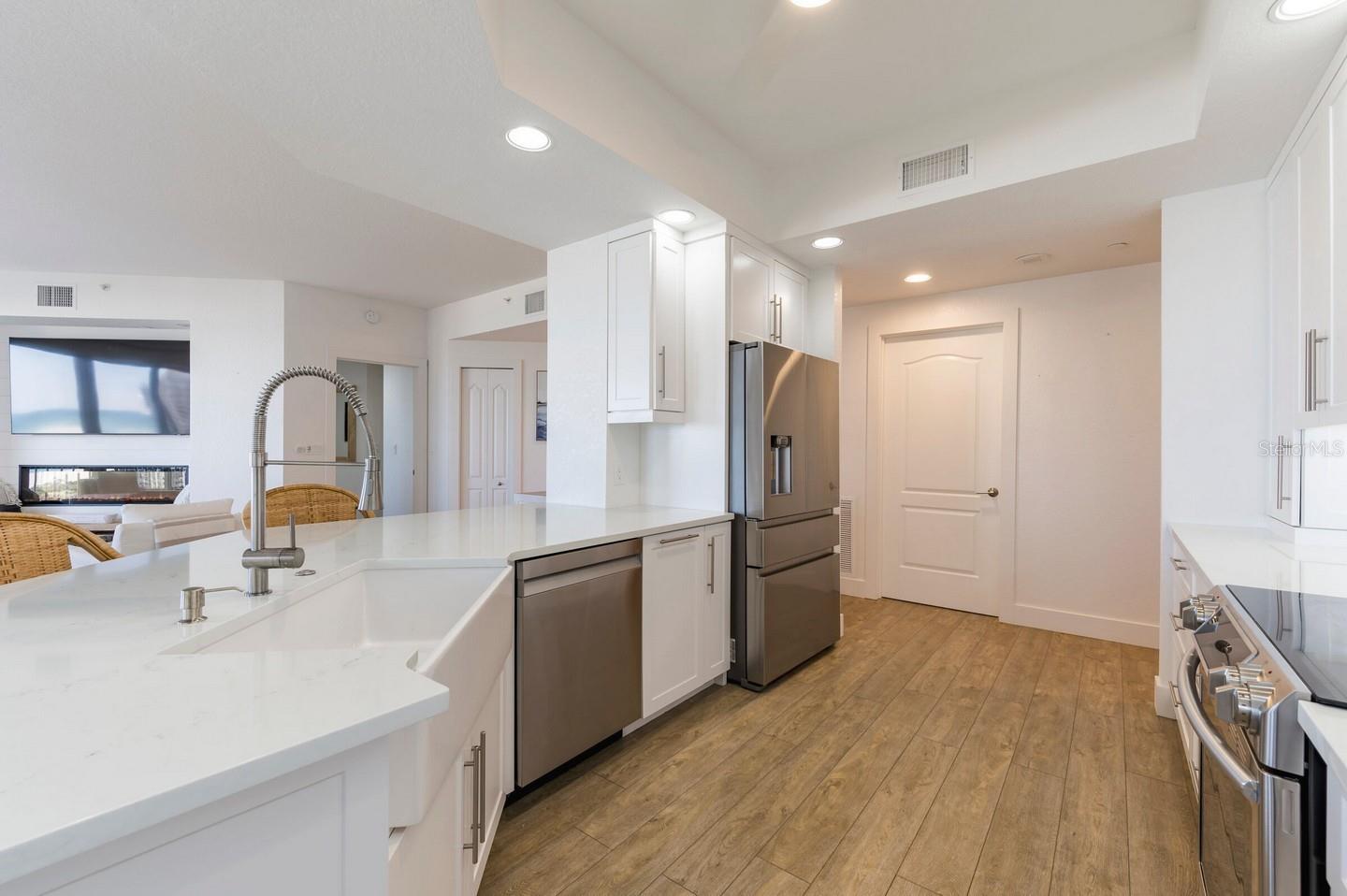 Fully remodeled, this stunning luxury residence features soaring 10-FT CEILINGS, luxury plank flooring, and FLOOR-TO-CEILING WINDOWS with remote black-out shades. The open-concept kitchen is a chef’s dream with CUSTOM CABINETRY, quartz counters, a PENINSULA CONVERSATION BAR, a drink station, and all new stainless appliances. The spacious PRIMARY SUITE boasts a CUSTOM WALK-IN CLOSET, a garden tub, a separate shower, and a double-sink cypress-top vanity. The GUEST SUITE is equally impressive with a built-out closet. The laundry room includes CUSTOM CABINETS, a quartz counter, and a tile backsplash. Additional upgrades include a BUILT-IN SAFE in the primary bedroom, outside wiring for an ELECTRIC BBQ GRILL on the balcony, electric fireplace wiring in the living room, new bathroom cabinets, added upper kitchen cabinets, and a new water heater. The building features a SOFT WATER SYSTEM and a newer AC (2019) with a WATER LEAK DETECTION SYSTEM. Enjoy RESORT-STYLE AMENITIES including a HEATED POOL & SPA, shade cabanas, grilling areas, a two-story social room, library, billiards, a FITNESS CENTER WITH SAUNA & STEAM ROOM, tennis courts, and more. Additional perks include STORAGE SPACE, manicured tropical grounds, a FULL-TIME CONCIERGE, an on-site manager, and 24-HOUR SECURITY with a manned entrance gate. Luxury living at its finest!