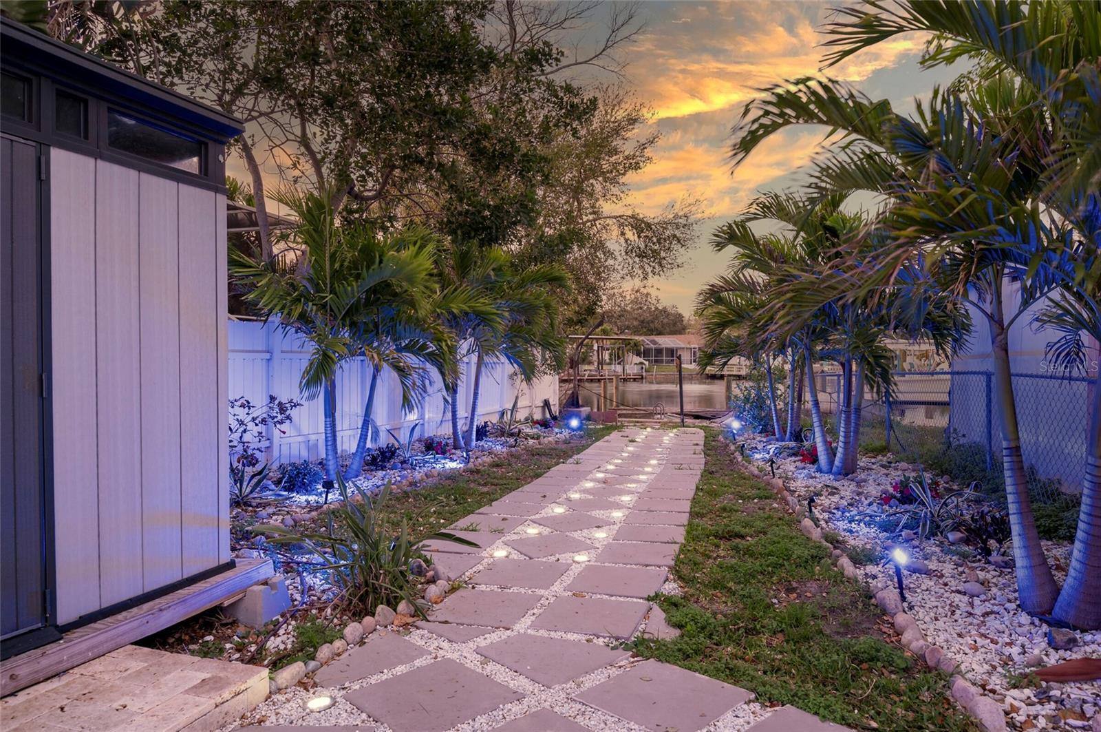 - Lighting, Rain Gutters, Sidewalk, Sliding Doors, Storage