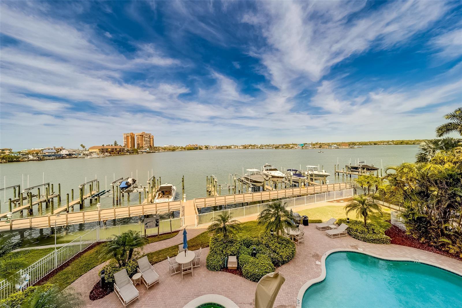 Welcome to luxury living at its finest in the prestigious gated community of Redington Shores Yacht and Tennis Club. This stunning 3-bedroom, 3.5-bathroom condo offers over 3000 square feet of meticulously designed living space, ensuring comfort and elegance at every turn. Step into a fully furnished sanctuary where every detail has been thoughtfully curated, allowing you to simply unpack your bags and start enjoying resort-style living. Available from May 2026 through December 2026, this exquisite condo promises an extended vacation experience. The true split bedroom plan ensures privacy and tranquility, with an expansive master suite boasting a walk-in closet and ensuite bathroom overlooking the breathtaking blue waters of the bay. Relaxation awaits on the 45-foot covered balcony, where you can savor panoramic views and watch dolphins play. Entertain with ease in the spacious, open-concept kitchen and living areas, complete with a chef's delight kitchen featuring built-in convection oven, granite countertops, and stainless steel appliances. A generously sized furnished den offers the perfect retreat for unwinding with a book or enjoying a movie night. Redington Shores Yacht and Tennis Club provides residents with exclusive access to a wealth of amenities, including a clubhouse with fitness center, pickleball and tennis courts, and a clubhouse pool. Additionally, the building boasts a designated heated pool and hot tub overlooking the picturesque harbor, as well as a grilling area for enjoying poolside meals. 2 designated COVERED PARKING SPACES!! With the Gulf waters just a short walk away, you'll have easy access to pristine beaches, while restaurants, shopping, and vibrant beach life are all within close proximity. This condo truly embodies the feeling of home in a resort-like setting. Don't miss out on the opportunity to experience luxury living at its finest – schedule your appointment today.