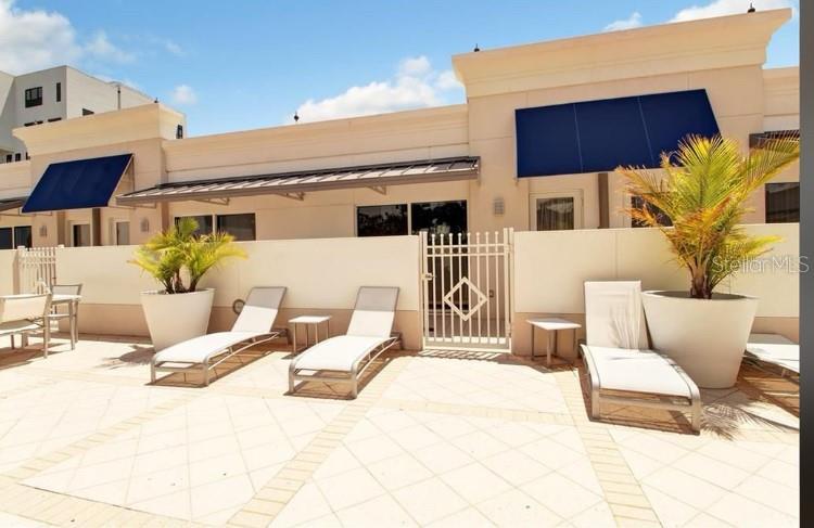 Up for rent is this beautiful poolside patio home at Waters Edge in Clearwater. Located downtown and minutes from Clearwater Beach, Waters Edge is a premiere condo complex in Pinellas County. This patio home is one of only 12 available at Waters Edge. It is a two-level unit that walks out to the expansive recreation area, including pool/spa, outdoor BBQ, patio dining and huge workout center. The patio home is fully furnished, turn-key to move in. There is a new air conditioning system, water heater and many upgrades. The unit is just under 1500 sq ft. The lower level consists of a large kitchen with stainless steel appliances, granite countertops and tons of storage. This opens up to an open dining area and large great room with huge windows and 10' ceilings. Upstairs there is a laundry room with new washer and dryer, two bedrooms, both with bathrooms and many closets. The master opens up to a private patio and walks out to the pool deck. Garage parking is just steps away from the unit. Waters Edge has 24/7 concierge service and full time maintenance staff. The grounds are immaculate. Because of the construction materials used in building you don't hear your neighbors. It is a quiet and secure space. There is an application through the HOA. The patio home is fully furnished, move-in ready. Pets are considered on an individual basis and are subject to approval by the HOA. Lease term 12 months. Rent $4480 plus electric. Cable and internet included. Unit is fully furnished and move-in ready. Application fee through the HOA is $200. One month security deposit due at signing, along with the first month's rent. May consider shorter term lease with higher monthly fee.