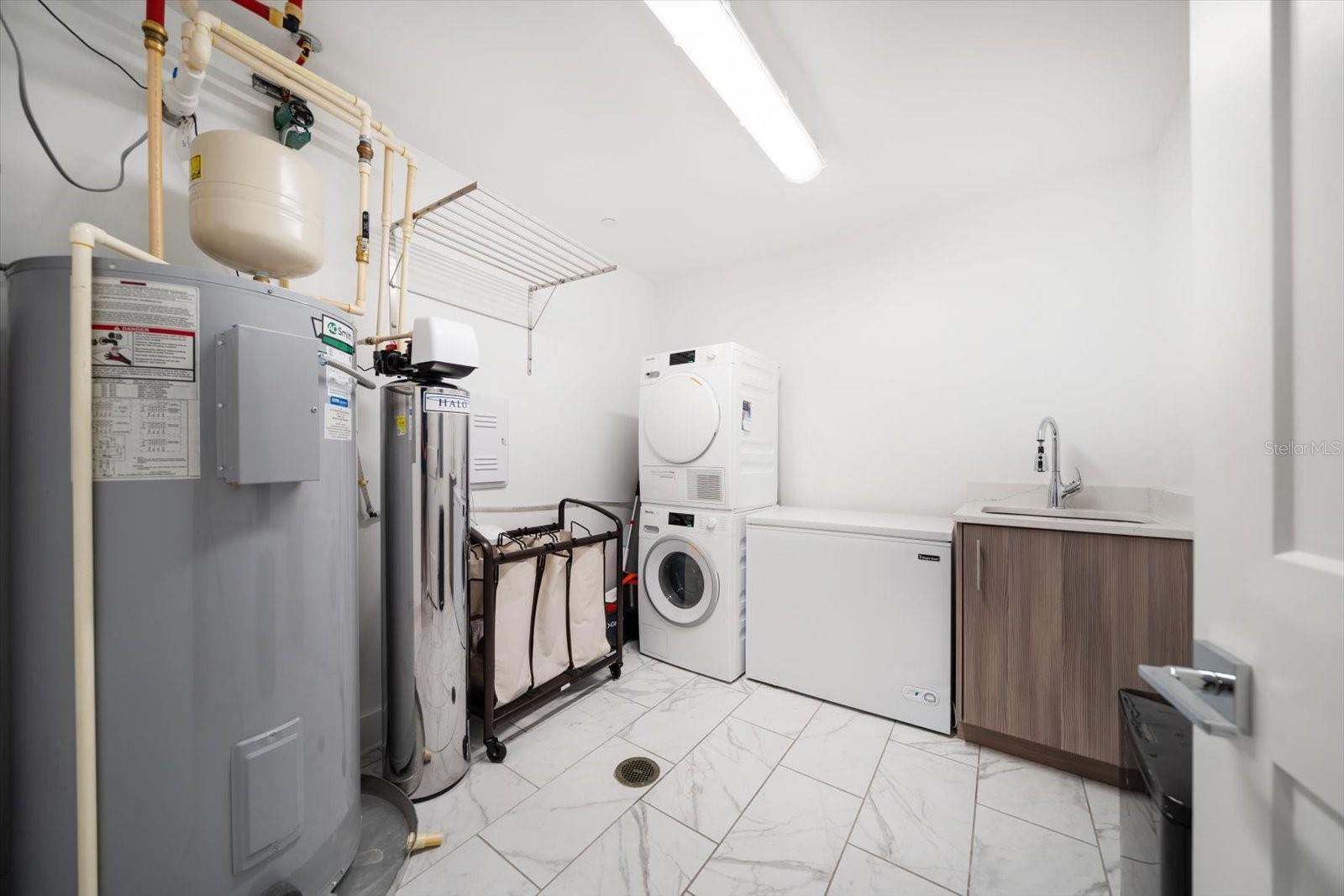 - Bar Fridge, Built-In Oven, Dishwasher, Disposal, Dryer, Electric Water Heater, Exhaust Fan, Freezer, Microwave, Range, Range Hood, Refrigerator, Washer, Water Filtration System