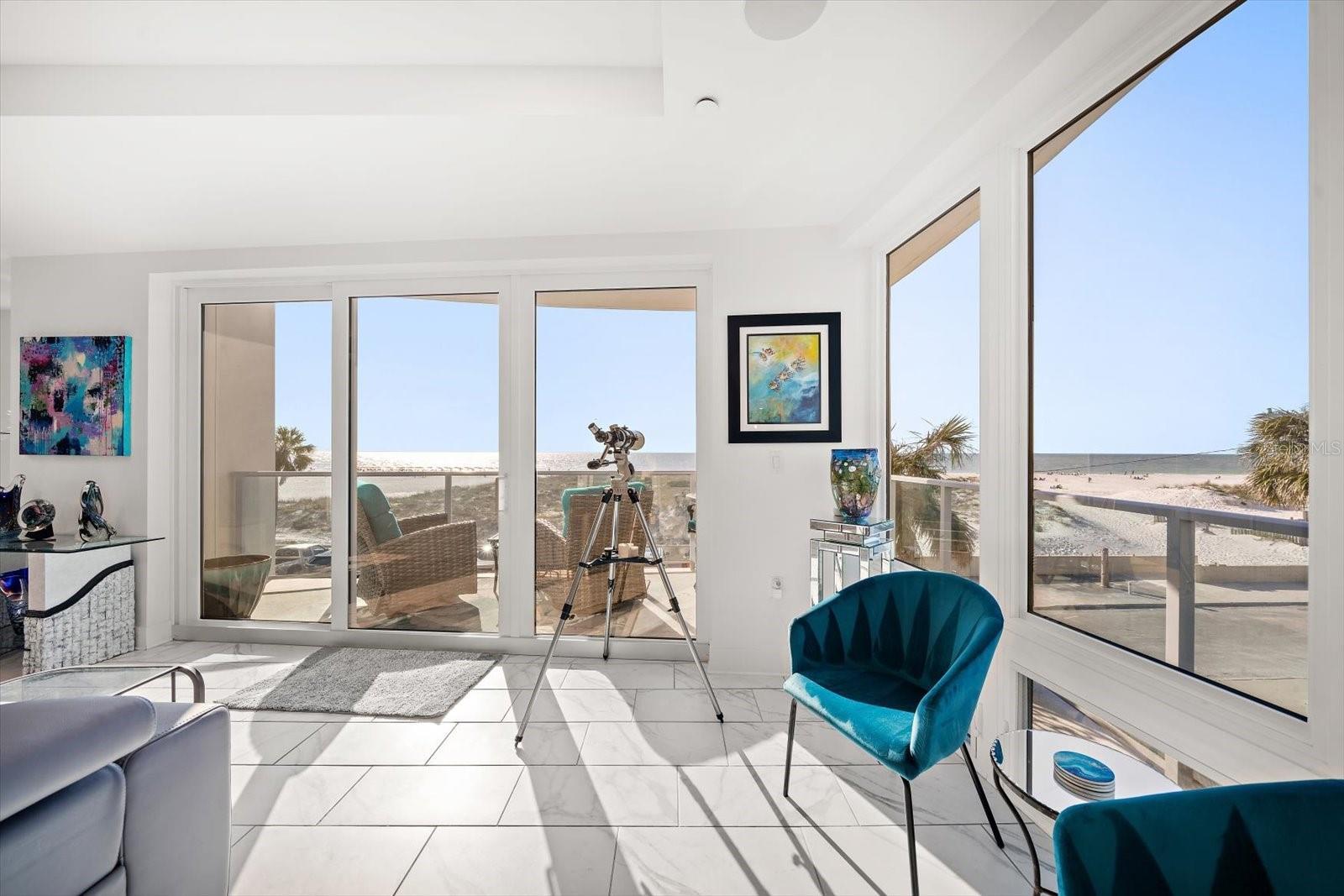Experience the perfect fusion of luxury, coastal serenity and area vibrancy at Pura Vida Residences. Built in 2020, this exclusive community of just 22 private residences stands as one of the most recent additions to the tranquil, North end of award-winning Clearwater Beach yet is conveniently close to boutique shops, marine adventures, and a diverse array of dining options, from fine dining for special occasions to laid-back beachfront eateries…this is coastal living at its finest. Offering the largest floor plan in the building with 3,111sf, 4 bedrooms, 3.5 bathrooms, 10’ ceilings plus open concept living space, unit 303 is an exquisite and spacious NW corner residence offering comfort, style and refined living. Direct West facing floor-to-ceiling impact windows, sliders, and glass paneled balconies allow an abundance of natural light and seamlessly blend beach and Gulf views from the entire kitchen, living and dining areas, offering a front row seat to possibly some of the most spectacular sunsets you will ever see. Secure, direct elevator access opens to a dedicated foyer, where double doors lead you into this elegant coastal retreat. Art enthusiasts will appreciate the expansive hallways, ideal for showcasing personal collections. Premium features include Miele appliances, a 5-burner gas stove, sleek European-style cabinetry, oversized kitchen island with quartz countertops, tile flooring throughout, designer finishes, custom closets, motorized cellular shades (primary suite) and whole-unit water filtration. Select furniture pieces available, and all 7 wall-mounted flat-screen TVs convey. Conveniently located, private, climate controlled, 8x8 (approx) storage unit. Secure, gated entry to the building, 2 assigned under building parking spaces (pre-wired for an electric vehicle charging station) located close to the lobby access. Personal beach locker for easy access to fun in the sun at your doorstep. Building amenities include heated pool with flow resistance, spa, club room, fitness center, indoor bike storage, key fob and digital security for doors and elevators, building back-up generator and 24-7 video security. Pro-active and professionally managed Association. Pet friendly building (1 pet under 30lbs). One month minimum rental. Don’t miss this rare opportunity to claim your elegant slice of paradise on Clearwater Beach.