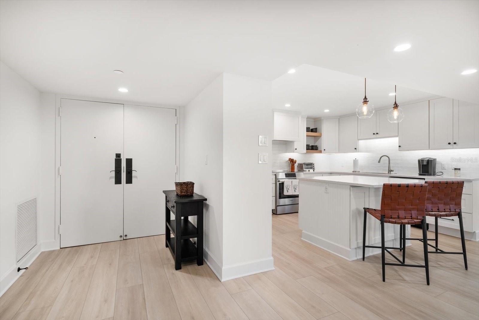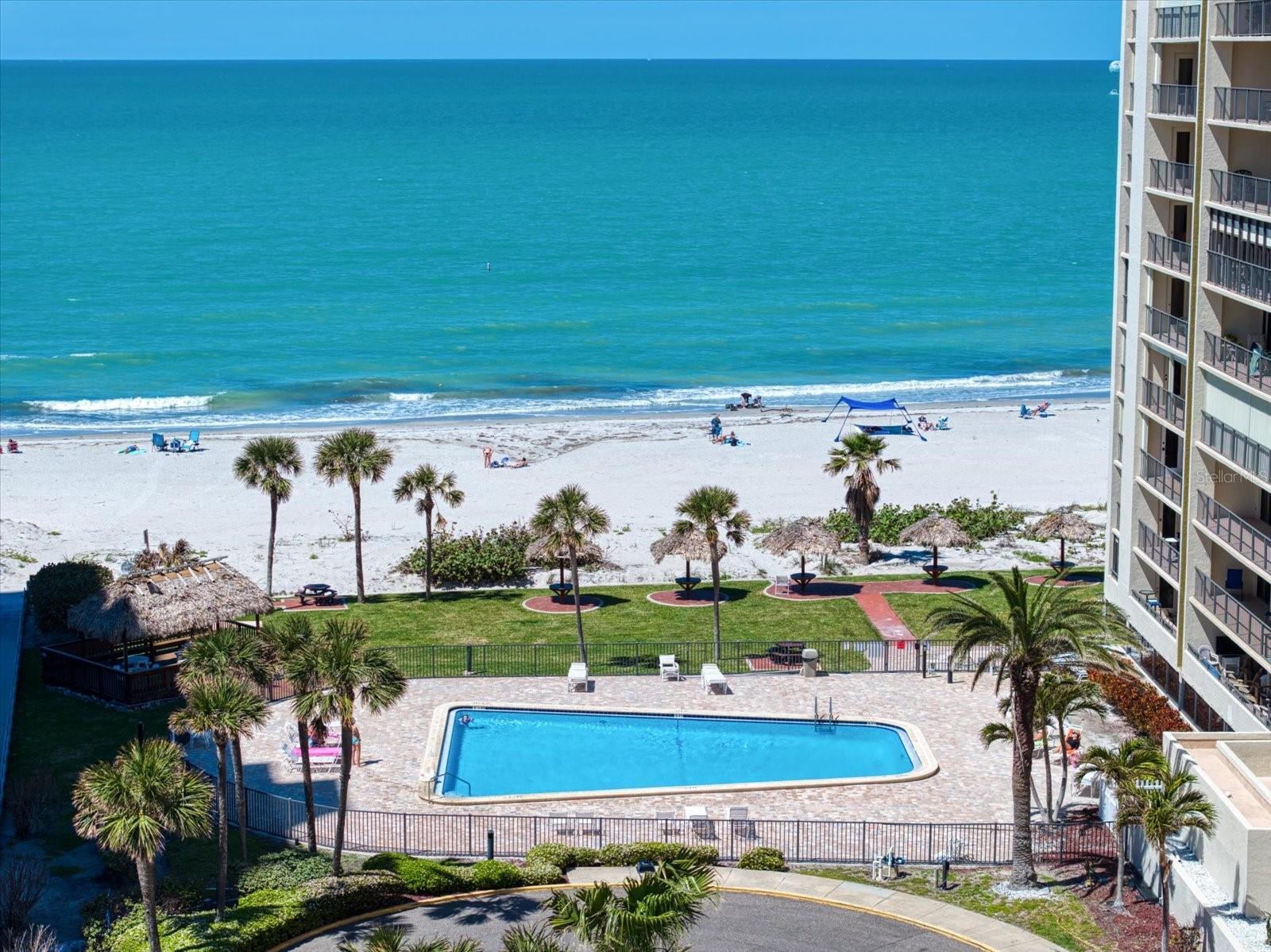 No expense was spared in the remarkable remodel of this exquisite gulf-front condo, designed to offer the ultimate beachside living experience with abundant living space and high-end upgrades. Featuring a spacious open floor plan that maximizes breathtaking beach views from every room, this home effortlessly blends style with function. The gourmet kitchen boasts solid wood cabinetry, luxurious quartz countertops, and a convenient breakfast island, perfect for casual dining or entertaining. Luxury vinyl flooring runs seamlessly throughout the entire space, while custom closets provide ample storage. The floor plan has been thoughtfully reconfigured to include a small office with a stunning Gulf view – ideal for remote work or a quiet retreat. This condo has been upgraded with all-new hurricane-impact-resistant windows and sliding glass doors, offering peace of mind and uninterrupted views. Custom lighting throughout the space creates a tranquil coastal ambiance, making it the perfect place to unwind and take in the beauty of the Gulf Coast. Enjoy breathtaking sunsets every evening and the added convenience of underbuilding parking. South Beach IV is a vibrant gated community that occupies one of the most pristine stretches of beach anywhere in the world! Amenities include a resort-style pool that overlooks the Gulf, tiki huts, gas grills, and a shaded pavilion, offering the perfect setting for relaxation and entertainment. Milestone Inspections and SIRS completed! Close to great shops, restaurants, entertainment, and the Jolly Trolly. This extraordinary property is a must-see for those seeking a luxurious coastal lifestyle, and turn-key furnishings are optional.