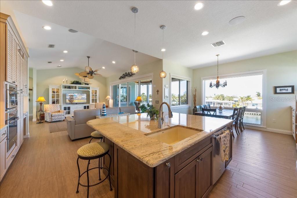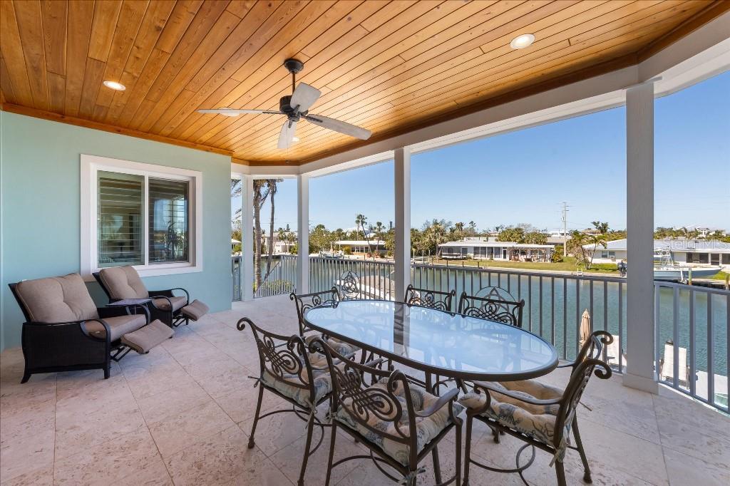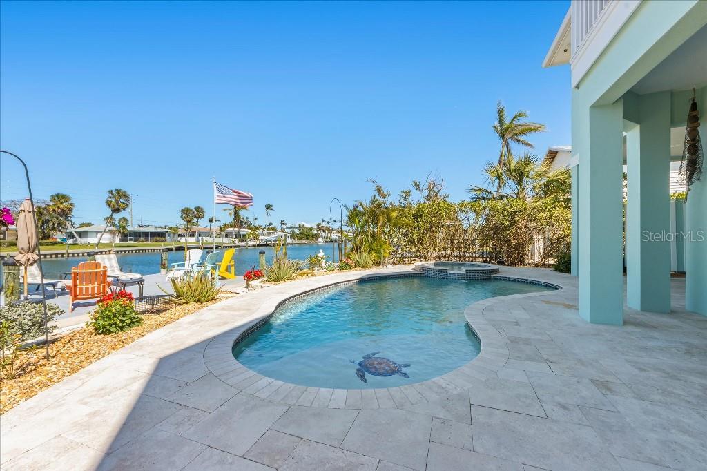 Own your Slice of Paradise! Are you a boater? Beachgoer? Sun Worshiper? This meticulously designed elevated custom home is just 2 blocks from the beautiful beaches of Anna Maria Island and was built to FEMA exacting standards (allowing for the best wind and flood insurance rates). It is move-in ready incurring no damage from the recent hurricanes. With 90 feet of frontage on Watsons Bayou (one of the widest and deepest canals on Anna Maria), boaters have direct access to Anna Maria Sound and the ICW with no bridges to maneuver. This single-owner home offers an open concept great room with 3 bedrooms (2 ensuite) and 3 bathrooms. The heart of the home is the expansive kitchen which boasts a large island – perfect for meal preparation, casual dining and entertaining friends and family. The kitchen is outfitted with an abundance of cabinetry, granite counters, stainless steel appliances, bar sink, ice machine and a beautiful wine cooler. The adjacent dining and family room areas form an exceptional great room with 14’ vaulted ceiling. Large sliding glass doors lead out to the upper covered deck offering an additional dining area with incredible views of Watsons Bayou and the ICW. The primary suite features an oversized bedroom with views to the Bayou and a luxurious bathroom with a rain shower. The guest suite features dual vanities and a private outdoor balcony with an abundance of sunshine. A third bedroom and bathroom along with a large laundry room complete the living level. Downstairs, step outside to the private backyard oasis where you’ll find a custom heated saltwater pool with a large sun shelf for lounging or relaxing. The pool is complete with an integrated waterfall spa and an adjacent outdoor shower room offering both hot and cold water and a changing area. The spacious covered lanai offers plenty of entertaining space for relaxing and dining. Additional outdoor amenities include a large sun dock, 10,000 pound boat lift and a fire pit. Inside on the ground level is an oversized 3-car garage with an air conditioned storage room – plenty of room for all of your pool, boat and beach toys. Contributing to lower utility bills are solar panels on the roof, foam insulation in the attic and hurricane-impact Low-E windows and doors. Schedule an appointment and this property can be your Slice of Paradise!