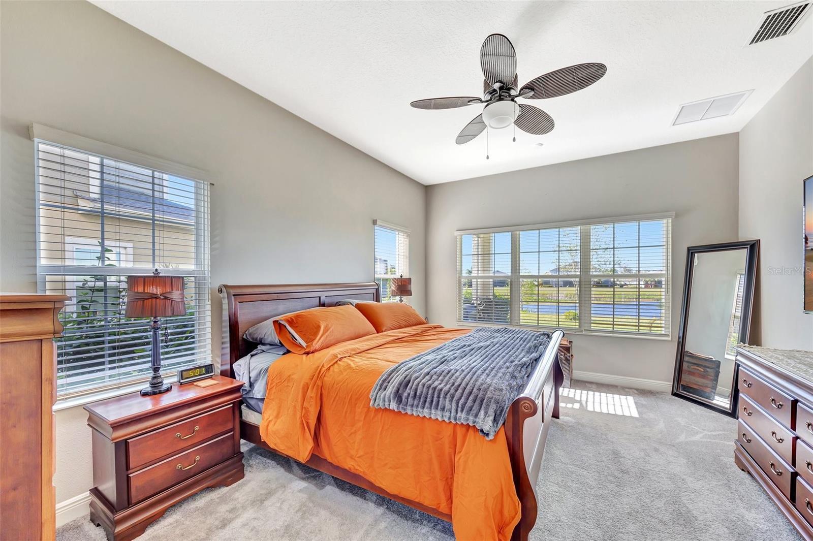 Stunning coastal residence in the highly desirable Waterset community, perfectly positioned on a premium waterfront lot with approximately 70 feet of waterfrontage. This exceptional home has been refreshed with new flooring, fresh interior paint, and upgraded landscaping, offering a move-in-ready opportunity with refined coastal elegance. A grand formal entry with chandelier sets the tone, leading to a formal dining room with a butler’s pantry. The heart of the home is an expansive great room with soaring 20-foot ceilings and four folding glass sliders that open to a covered waterfront patio—ideal for indoor-outdoor entertaining. The great room flows seamlessly into a gourmet kitchen and breakfast nook, all enjoying tranquil lake views. The chef’s kitchen features a gas five-burner cooktop, double built-in oven and microwave, generous counter space, abundant cabinetry, and seating for five or more at the oversized bar—perfect for gatherings and gourmet cooking. The primary suite is conveniently located on the first floor, offering water views, large walk-in closets with built-ins, and a spa-inspired bath with dual vanities, river rock tile, rain shower head, and a relaxing garden tub. Also on the main level is a private in-law or guest suite with full bath, ideal for extended family or a home office, along with a large laundry room featuring cabinetry and extensive counter space. An open staircase overlooks the great room and leads to the second floor, which includes a spacious loft/living area, game room, and four additional bedrooms. The home is equipped with surround sound on both levels, abundant architectural details, and exceptional natural light throughout. Additional highlights include a three-car garage, expansive patios, and multiple water views that enhance the home’s open, airy feel. This is a rare opportunity to own a beautifully updated waterfront home in one of Apollo Beach’s premier master-planned communities.