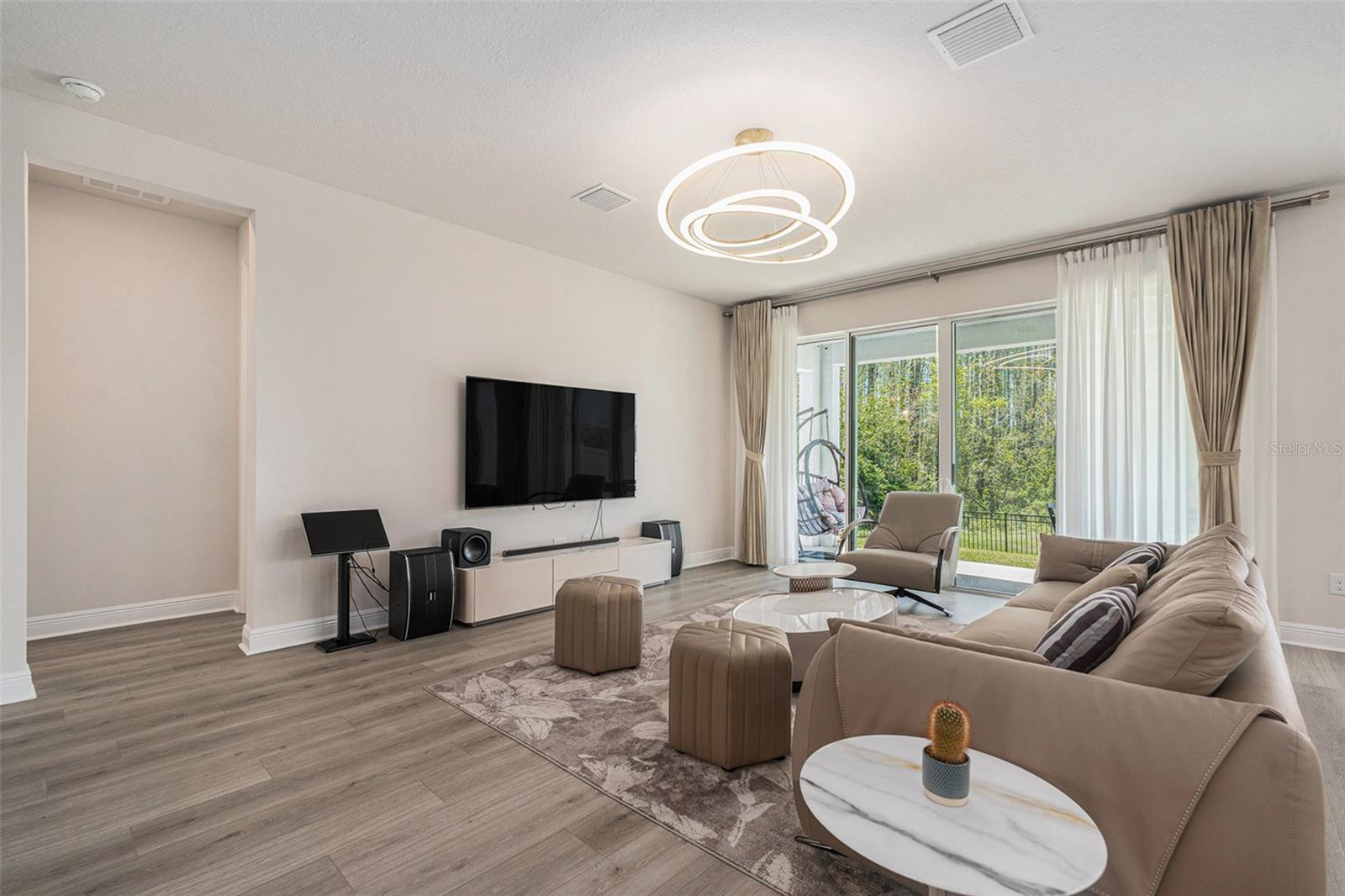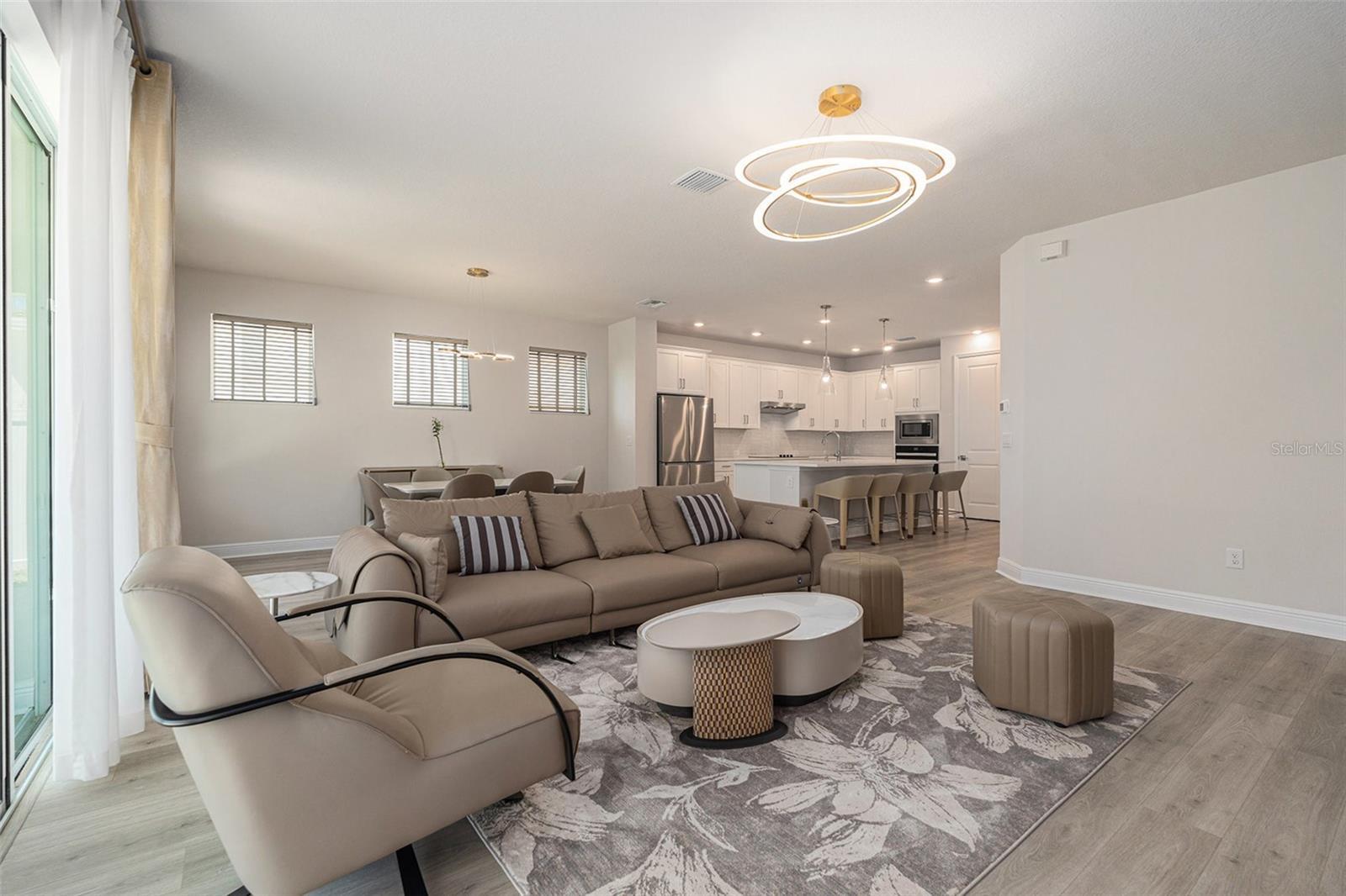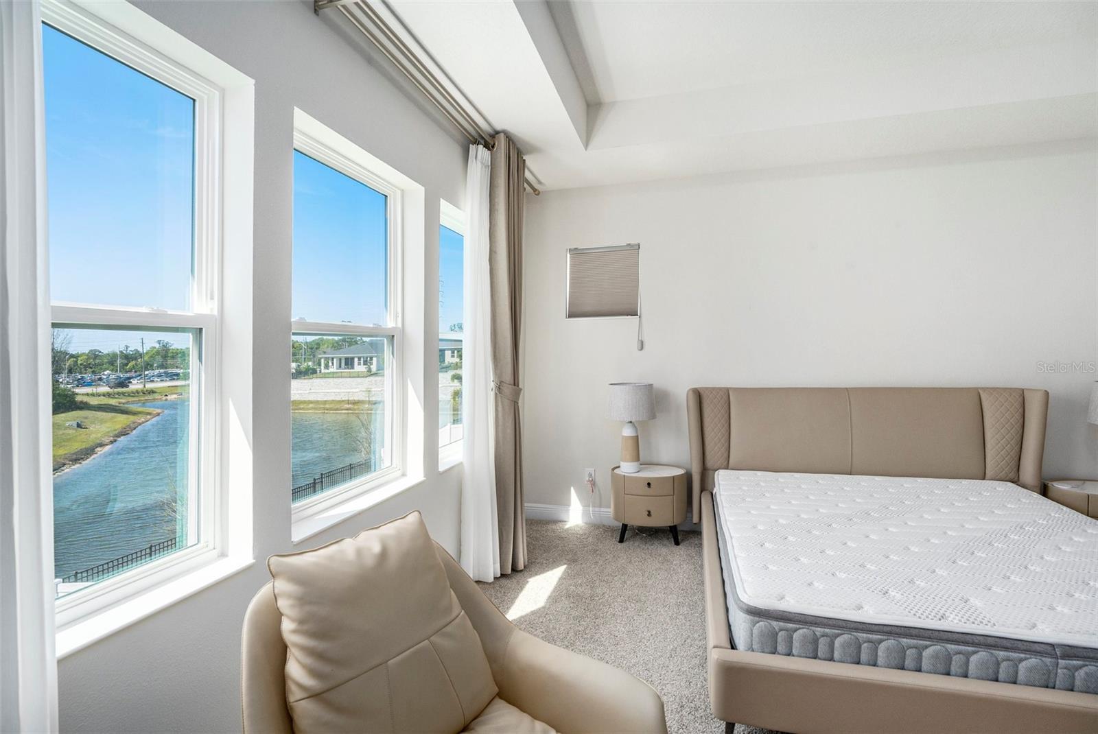 Luxury, Space & Stunning Water Views! This is your chance to own a 5-bed, 3-bath home built by David Weekley in the exclusive gated community of Eagle Creek Estates. With 9-ft ceilings, wood and porcelain tile floors, this home blends style and durability. The chef's kitchen features stone countertops and new appliances that flow into the dining and living areas; perfect for entertaining. The study's French doors offers a quiet yet bright workspace. The first-floor bedroom and full bath provide flexibility for guests. Upstairs contains the spacious loft, laundry, and the oversized master suite. The master suite's coffered ceiling compliments the stunning water view with a walk-in closet and walk-in shower that create the perfect retreat. Enjoy the serene water view from the extended lanai. Located next to the community lounge, this home offers privacy with unmatched convenience. Schedule your private tour today and capture this chance for superior splendor!