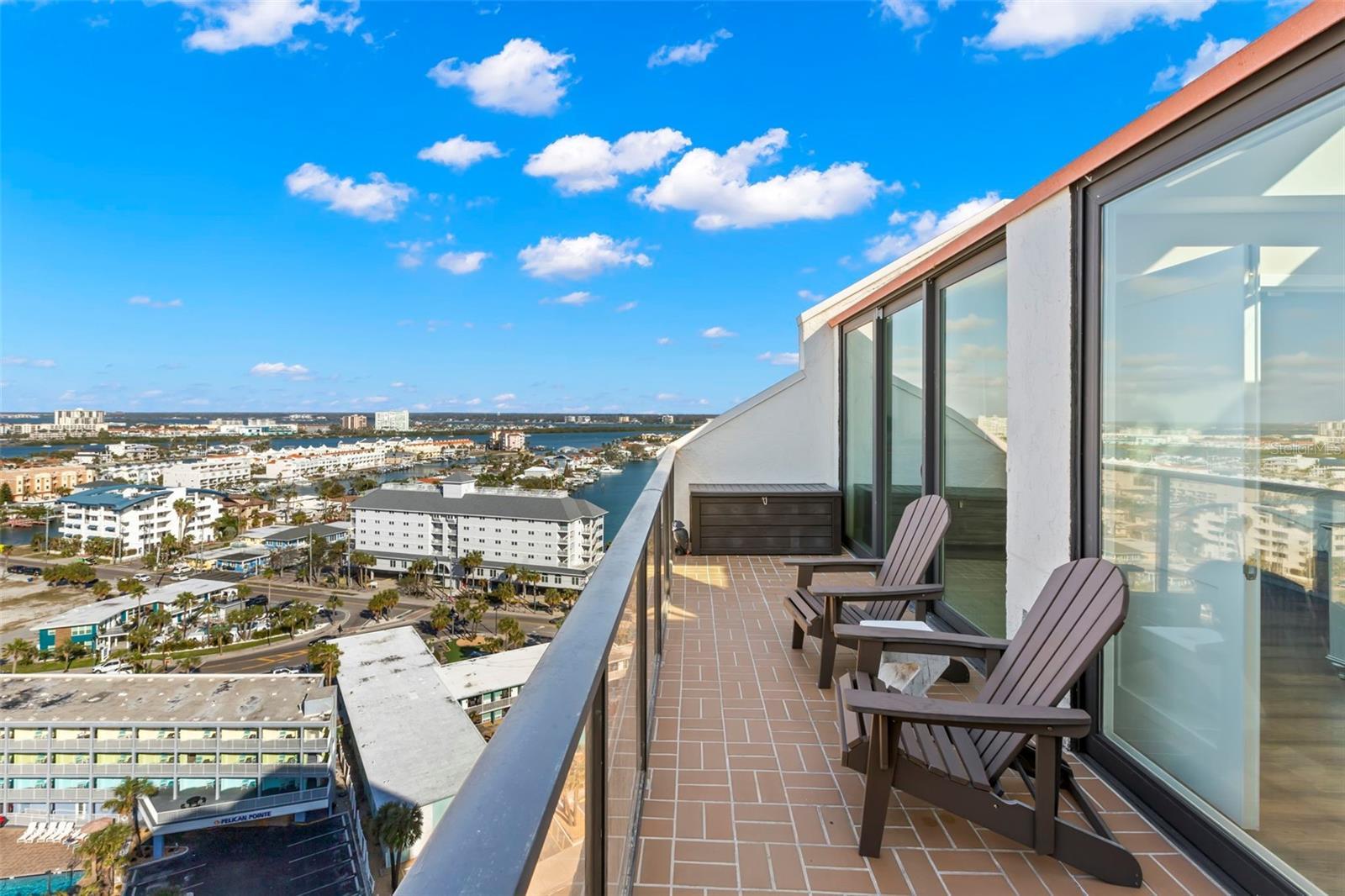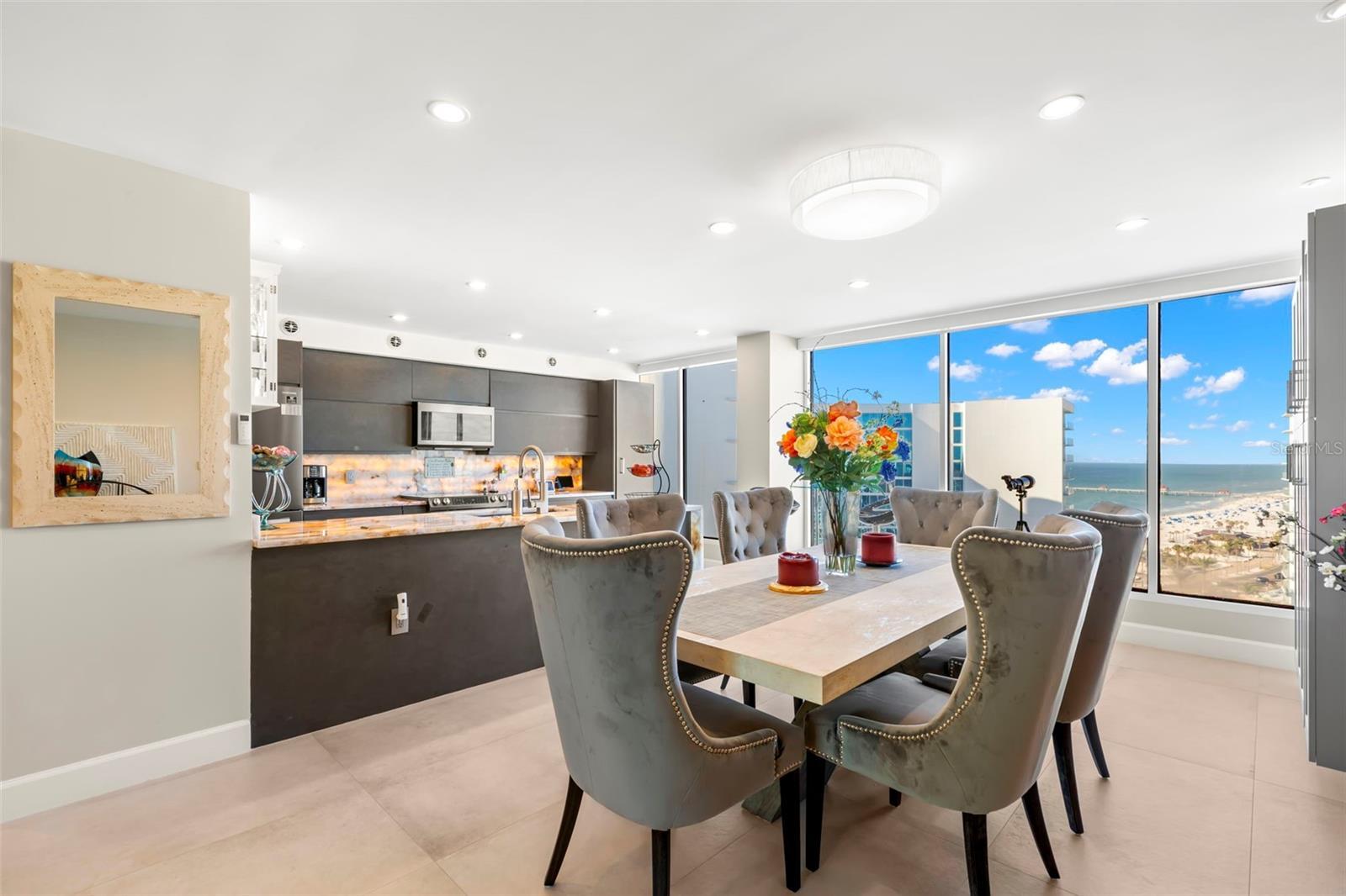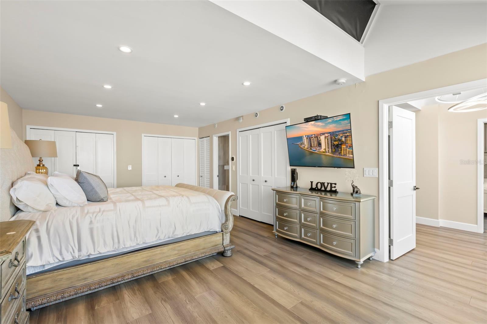 Welcome to beach front living in this breathtaking, two-story penthouse-style smart condo nestled in the heart of Clearwater Beach. This one-of-a-kind residence has been masterfully reimagined and was completely taken down to the studs and rebuilt with a vision to create not just a home, but an elevated lifestyle experience. With sweeping views of both Clearwater Beach to the north and Sand Key Beach to the south, this is the only unit of its kind in the area offering such dual panoramas. The interior reflects a perfect fusion of design and innovation, starting with a sleek, modern kitchen outfitted with Tuscan-finished appliances, minimalist German-style cabinetry, and luminous translucent quartzite countertops that can be backlit with customizable LED lighting. The island features a waterfall edge, a granite composite sink, and a touchless faucet—every detail thoughtfully curated for both form and function. The upper cabinets open effortlessly with a soft touch, thanks to a high-tech Blum lift system. This is a true smart home, designed with intuitive technology for ultimate convenience. From voice-activated lighting and temperature controls to automated roll-out shades, security cameras, keyless entry, and smart TVs with surround sound speakers—all systems are pre-programmed for easy, seamless operation. Multi-temperature LED lighting throughout the home lets you shift the ambiance from a cozy warm white to a crisp daylight setting depending on your mood. Hurricane impact sliding doors and window treatments add both style and security. The first floor features a guest suite with views of Clearwater Beach, a dining area, and an elegant main living space that opens onto a balcony overlooking Sand Key. Upstairs, you’ll find a versatile guest bedroom/flex room, a laundry area, and the crown jewel: a stunning primary suite. Designed as a tranquil retreat, the oversized master bedroom offers ample seating, generous closet space, custom HUE lighting, a Sonos sound system, and its own expansive balcony with dazzling views of Clearwater Beach. The spa-inspired en-suite bathroom is equipped with a Toto smart toilet featuring a seat warmer, an LED mirror, and a luxury shower with rain head, handheld wand, and body jets for a full spa experience. Located just steps from the award-winning sugar sands of Clearwater Beach—named “Best Beach in America”—you'll enjoy the convenience of walking to top-rated restaurants, beachside attractions, and sunset strolls without ever needing a car. This is a rare fusion of modern luxury, intelligent design, and coastal living. There’s truly nothing else like it—schedule your private showing today.