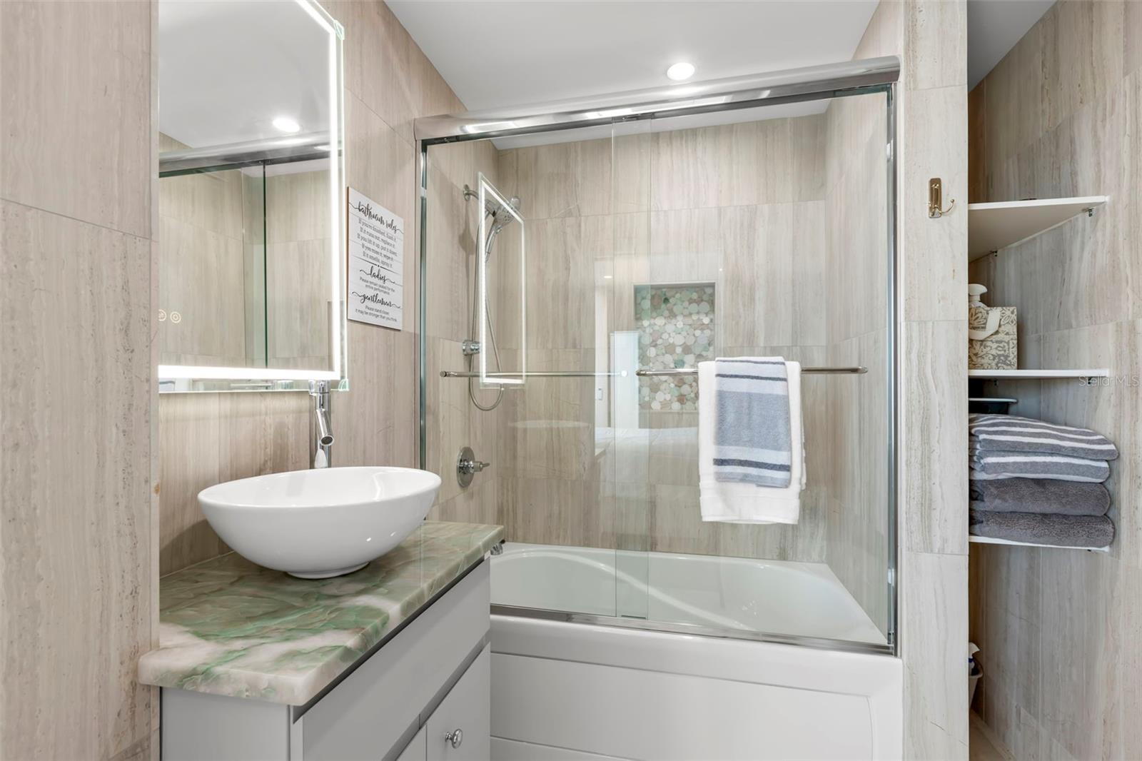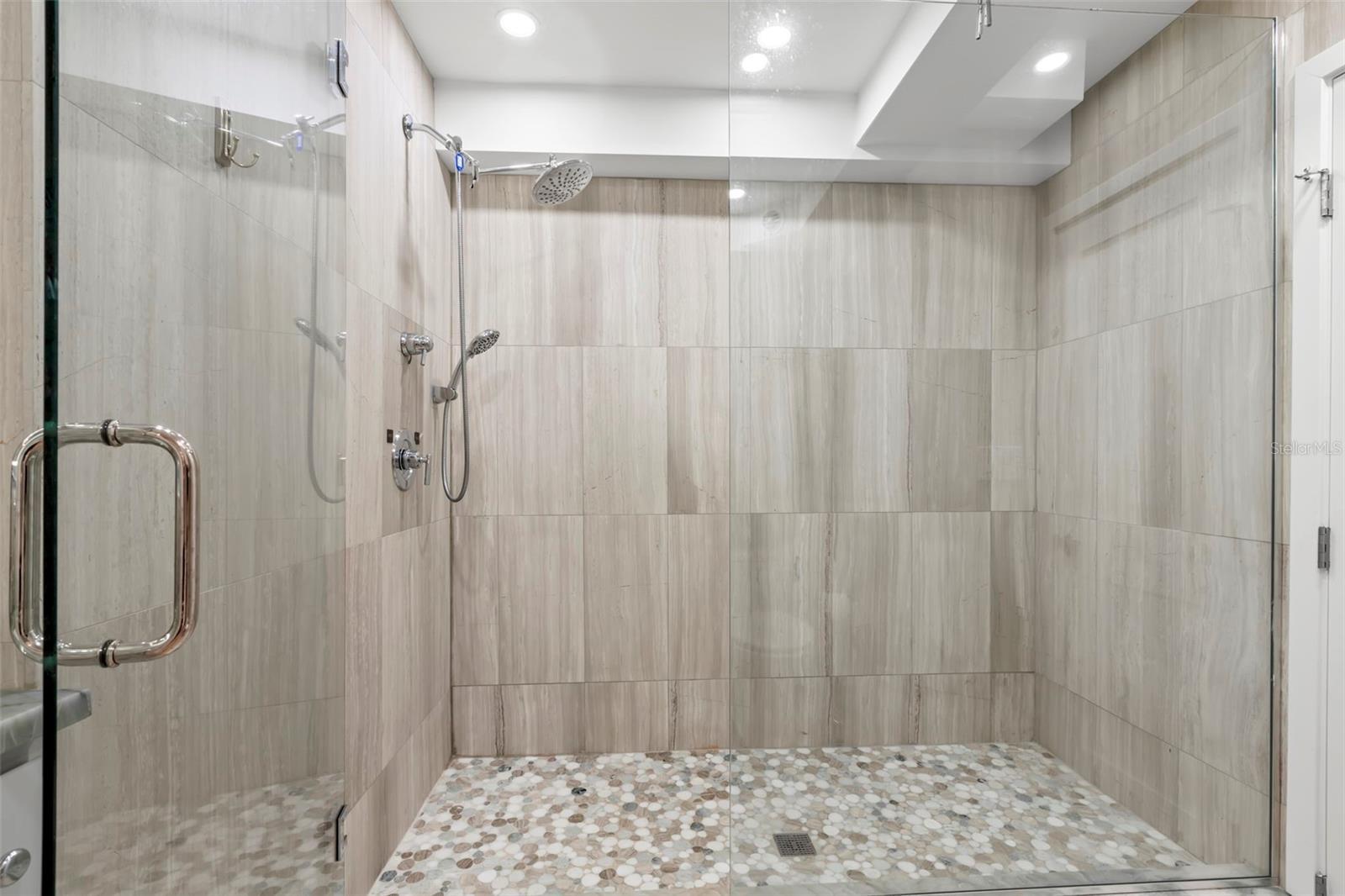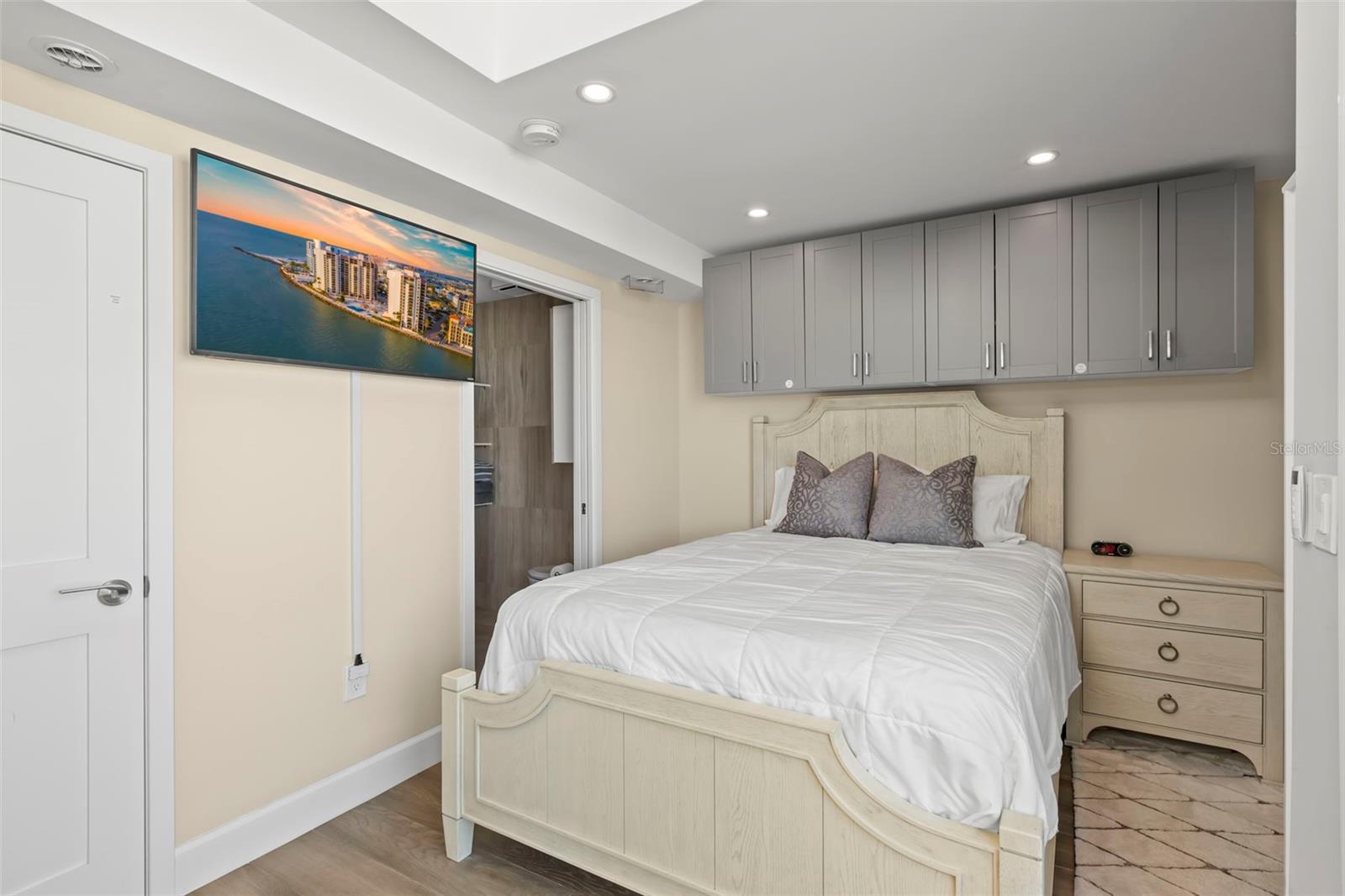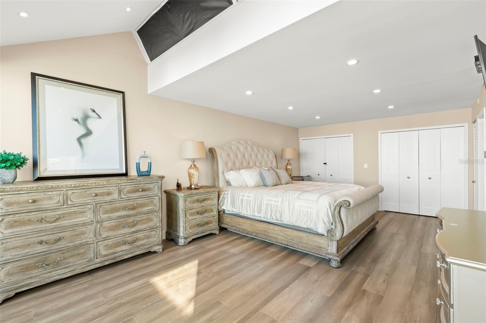 Welcome to beach front living in this breathtaking, two-story penthouse-style smart condo nestled in the heart of Clearwater Beach. This one-of-a-kind residence has been masterfully reimagined and was completely taken down to the studs and rebuilt with a vision to create not just a home, but an elevated lifestyle experience. With sweeping views of both Clearwater Beach to the north and Sand Key Beach to the south, this is the only unit of its kind in the area offering such dual panoramas. The interior reflects a perfect fusion of design and innovation, starting with a sleek, modern kitchen outfitted with Tuscan-finished appliances, minimalist German-style cabinetry, and luminous translucent quartzite countertops that can be backlit with customizable LED lighting. The island features a waterfall edge, a granite composite sink, and a touchless faucet—every detail thoughtfully curated for both form and function. The upper cabinets open effortlessly with a soft touch, thanks to a high-tech Blum lift system. This is a true smart home, designed with intuitive technology for ultimate convenience. From voice-activated lighting and temperature controls to automated roll-out shades, security cameras, keyless entry, and smart TVs with surround sound speakers—all systems are pre-programmed for easy, seamless operation. Multi-temperature LED lighting throughout the home lets you shift the ambiance from a cozy warm white to a crisp daylight setting depending on your mood. Hurricane impact sliding doors and window treatments add both style and security. The first floor features a guest suite with views of Clearwater Beach, a dining area, and an elegant main living space that opens onto a balcony overlooking Sand Key. Upstairs, you’ll find a versatile guest bedroom/flex room, a laundry area, and the crown jewel: a stunning primary suite. Designed as a tranquil retreat, the oversized master bedroom offers ample seating, generous closet space, custom HUE lighting, a Sonos sound system, and its own expansive balcony with dazzling views of Clearwater Beach. The spa-inspired en-suite bathroom is equipped with a Toto smart toilet featuring a seat warmer, an LED mirror, and a luxury shower with rain head, handheld wand, and body jets for a full spa experience. Located just steps from the award-winning sugar sands of Clearwater Beach—named “Best Beach in America”—you'll enjoy the convenience of walking to top-rated restaurants, beachside attractions, and sunset strolls without ever needing a car. This is a rare fusion of modern luxury, intelligent design, and coastal living. There’s truly nothing else like it—schedule your private showing today.
