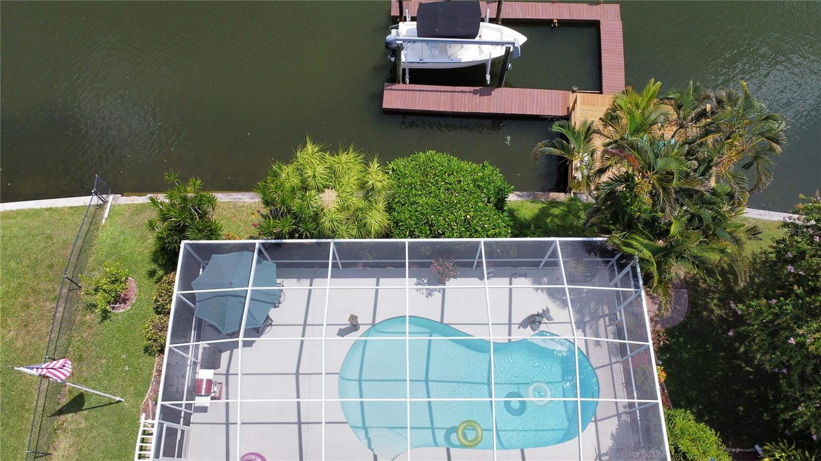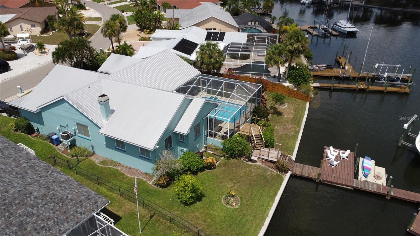 One of the best waterfront lots in Apollo Beach • New roof • New flooring in living, dining, and guest rooms • Updated primary bath • A irrigation well to save on water bills • Cathedral ceilings • Crown molding • Solid wood cabinets with over-head and underneath lighting • Newer appliances • Huge patio • Extra large garage • Paver driveway • Impact windows. This great waterfront, custom built home, sits near the end of Flamingo Canal on Cocoa Lane. This home is only minutes to the Bay by boat and then on to the Gulf of Mexico and beyond. No fixed bridges. It is centrally located with easy access to Tampa, MacDill, St. Petersburg, and Sarasota, by boat or car; eight houses to the open bay! It is situated on deep water, ideal for sail/power boats, or jet skis and is in a no-wake zone. No CDD or HOA in this community. Custom double entry doors and hand-painted murals on the feature walls in entry and kitchen. Beautiful kitchen with granite counter tops. All appliances, including new washer/dryer and newer refrigerator, convey and the house is ready for you to add your personal touches. The home is a 4-bedroom, 2 bath split plan home with sliding pocket doors opening to a huge, screened lanai and a fabulous pool. The primary suite includes a pool view and lanai access, two walk-in closets, separate updated shower and soaking tub. There is plenty of space in the oversized garage for storage or a workbench. A pavered driveway offers plenty of parking. Property has been outfitted with double-pane windows/doors and hurricane shutters. There is a wide view from the expansive waterfront. A waterfront dock, and a boat lift are ready for your use. Make this home and fabulous location yours --- schedule your private showing today! All measurements are to be verified by buyer. Sold AS-IS for convenience of Sellers. Property is covered by FEMA Legacy insurance rate. Seller is a licensed real estate broker.