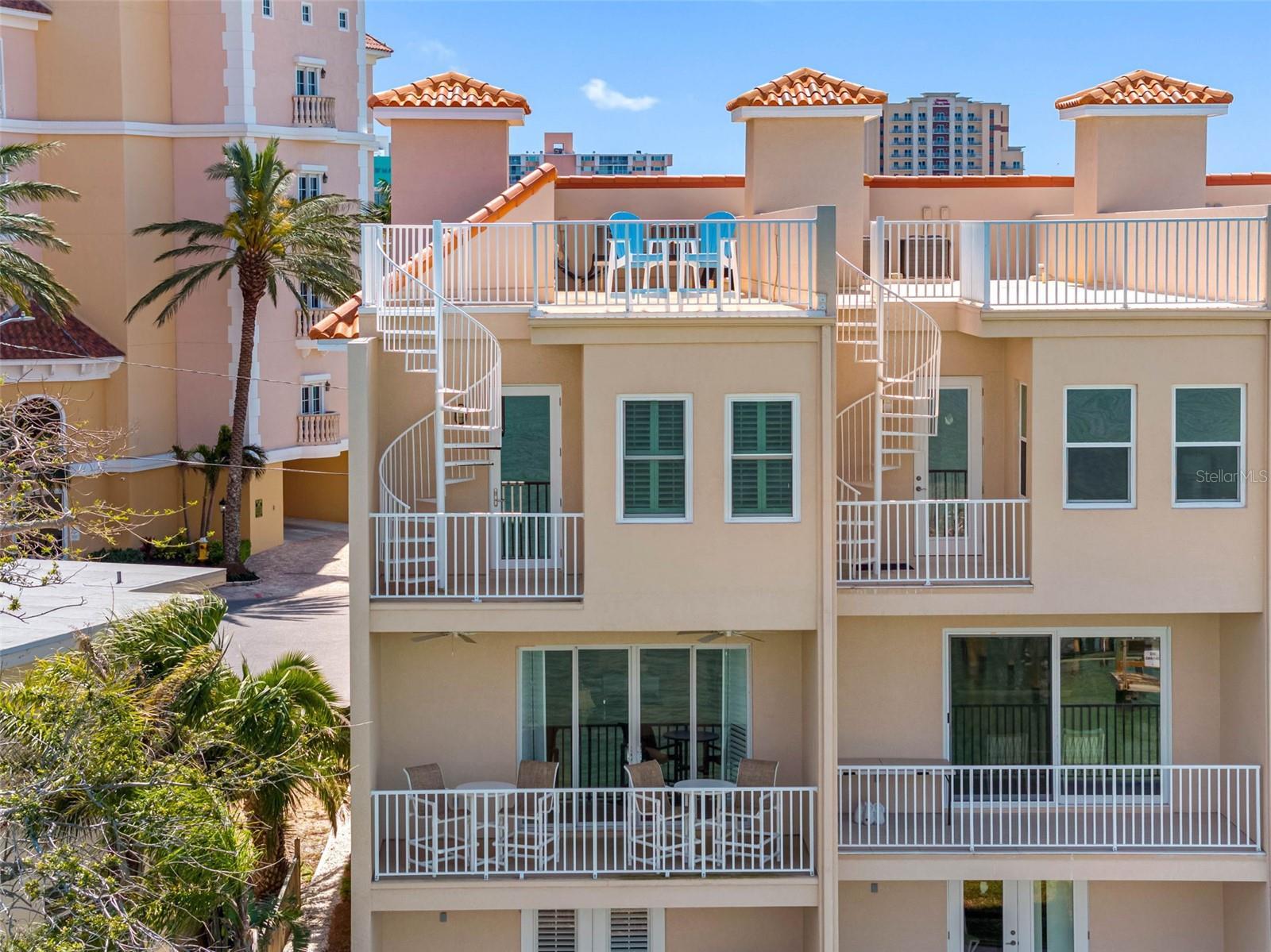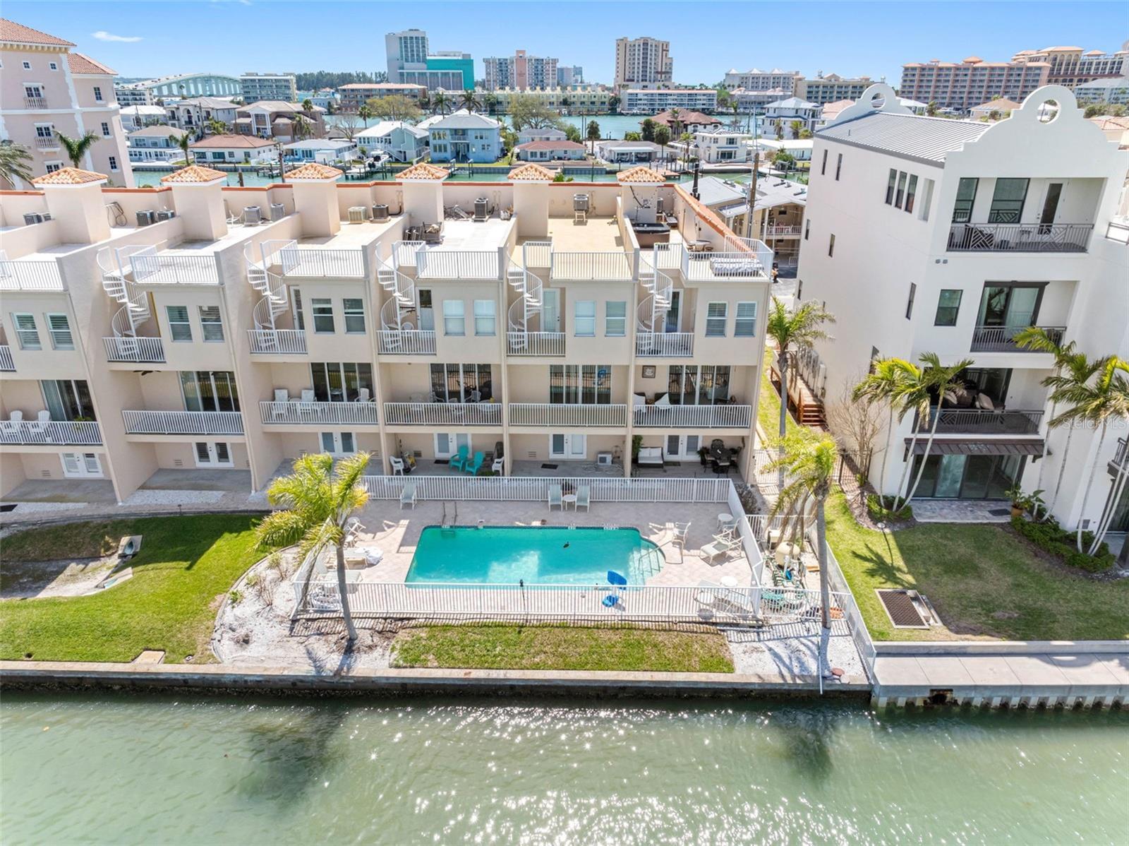 SEVERAL PHOTOS ARE STAGED WITHOUT FURNITURE. Spacious coastal townhome, more like a single-family waterfront home, only without the maintenance! Quiet 3BR/3BA end unit in a friendly 10-unit community with 4-month minimum rental. Assigned, deep water 30’ boat slip with owner-owned 10K boat lift. Personal elevator to panoramic water views on all levels, including a rooftop terrace for a sunset over open water or watching 360-degree fireworks. 2,041 SF of luxury living plus a lower level bonus room, adding another 261SF to walk out of at ground level and grill out or watch tour boats pass by. Short walk to Clearwater Beach excitement: great restaurants, beach bars, and powdery sugar sand beach. High ceilings and tons of windows add natural sunlight and showcase stunning city lights after sundown. Tastefully neutral color palette: Plantation shutters throughout, ceiling fans, tile and wood floors, etc. Three strategically split bedrooms provide max privacy for you and guests. Kitchen boasts a supersized island, stainless appliances, GE microwave and double oven, Bosch dishwasher, quartz counters and wood cabinets. Heated community pool. Garage with tons of storage and paver driveway for guests. Meticulous maintenance, taken care of for you while you are off relaxing, unwinding, hiding out from the world and partying-all at the same address. You’ve worked hard for your success. Here’s your chance to start enjoying it!