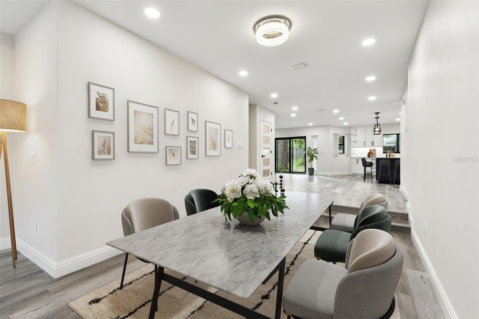 One or more photo(s) has been virtually staged. Experience your dream home in this thoughtfully designed, newly built, single family residence, in sought after Safety Harbor. Here, you'll live walking distance to downtown Safety Harbor and one block from the Bay. Experience numerous outdoor living areas and a third story terrace - your own private oasis! Inside you will be greeted with an open layout - the main floor has two bedrooms - a downstairs master, and a guest room or office - as you wish! Step into a kitchen with an oversized book-matched quartz island, large enough to fit the entire family. This area also has its own wine and bar room, flowing right outside to one of four private outdoor living areas - perfect for living and entertaining. Adorned with custom hard wood cabinets as well as Delta faucets and fixtures throughout, you'll be surrounded by quality. Enjoy plenty of natural light throughout the home via your brand-new hurricane impact rated windows. This house is a great size but yet still offers you a sizeable front and back yard with covered patios. The trees were purposefully maintained to provide ample shade to allow for residents and guests to enjoy Florida's outdoor lifestyle. Lot is pre-plumbed for you to add your own custom landscaping. You'll live and entertain here as the open kitchen area offers pass-through windows to entertain family and friends, maintaining a connection with the outdoors at each turn. Upstairs you'll find a second family room, theatre room, and three more bedrooms with high ceilings. Spacious closets, and a Jack and Jill bathroom await you here. A master with two walk-in closets, a double shower with body sprays, balcony, and more! Enjoy the convenience of a spacious second-floor laundry room with natural gas hookups. Relax on your back deck or walk upstairs to entertain guests on your very own, unique, sizeable, and private third story crow's nest! Here you can take in the water views of Tampa Bay or stargaze at night! This one-of-a-kind home offers instant equity as compared to new builds coming up in downtown Safety Harbor. Furthermore, buy this dream home with peace - it is up and out of a flood zone, and is built to stand - no issues at all during the recent hurricanes. Come by and take a look!