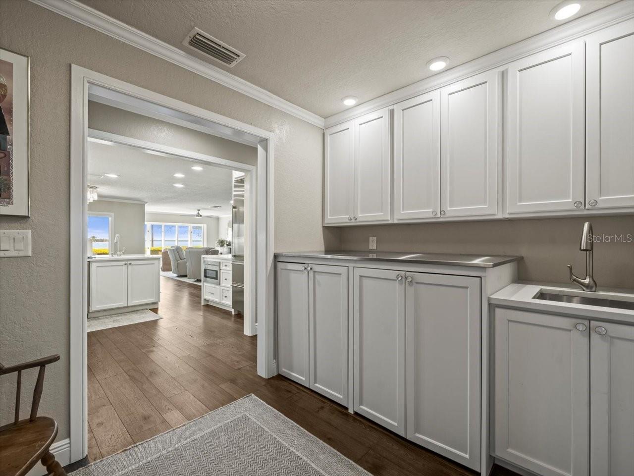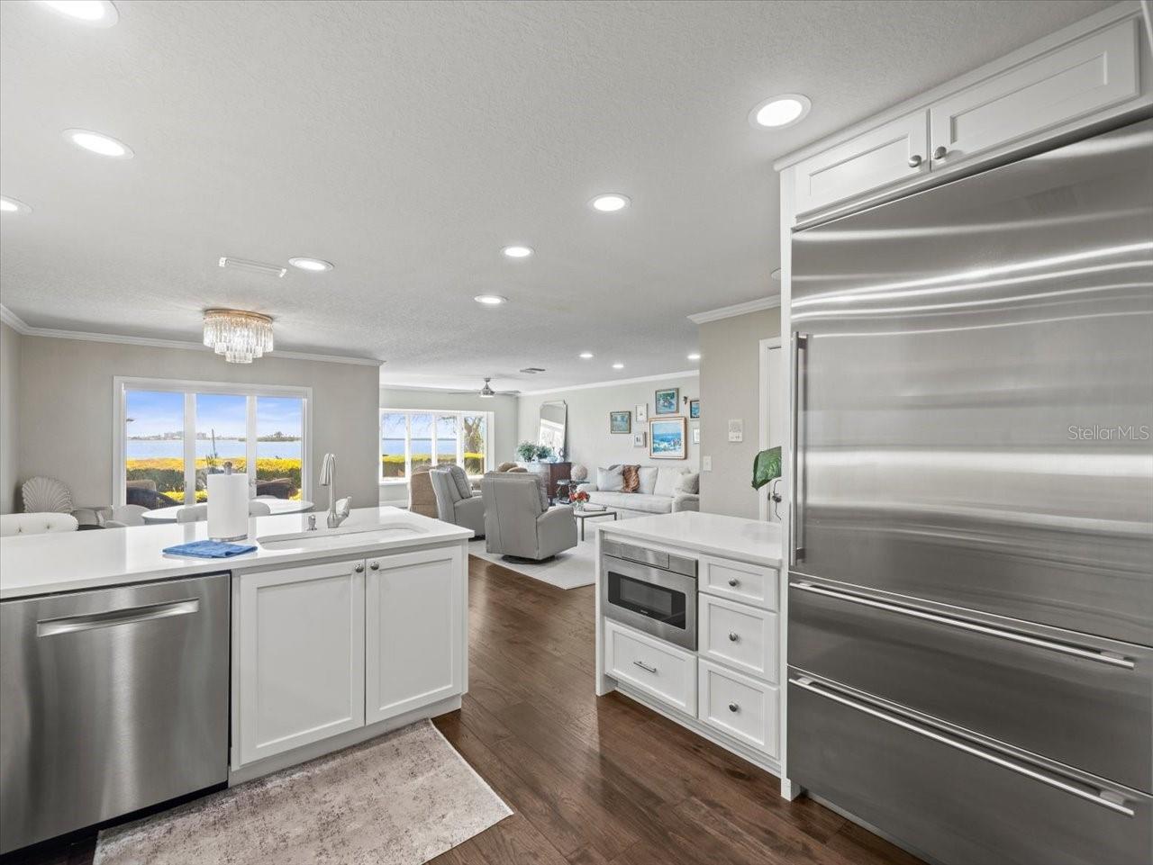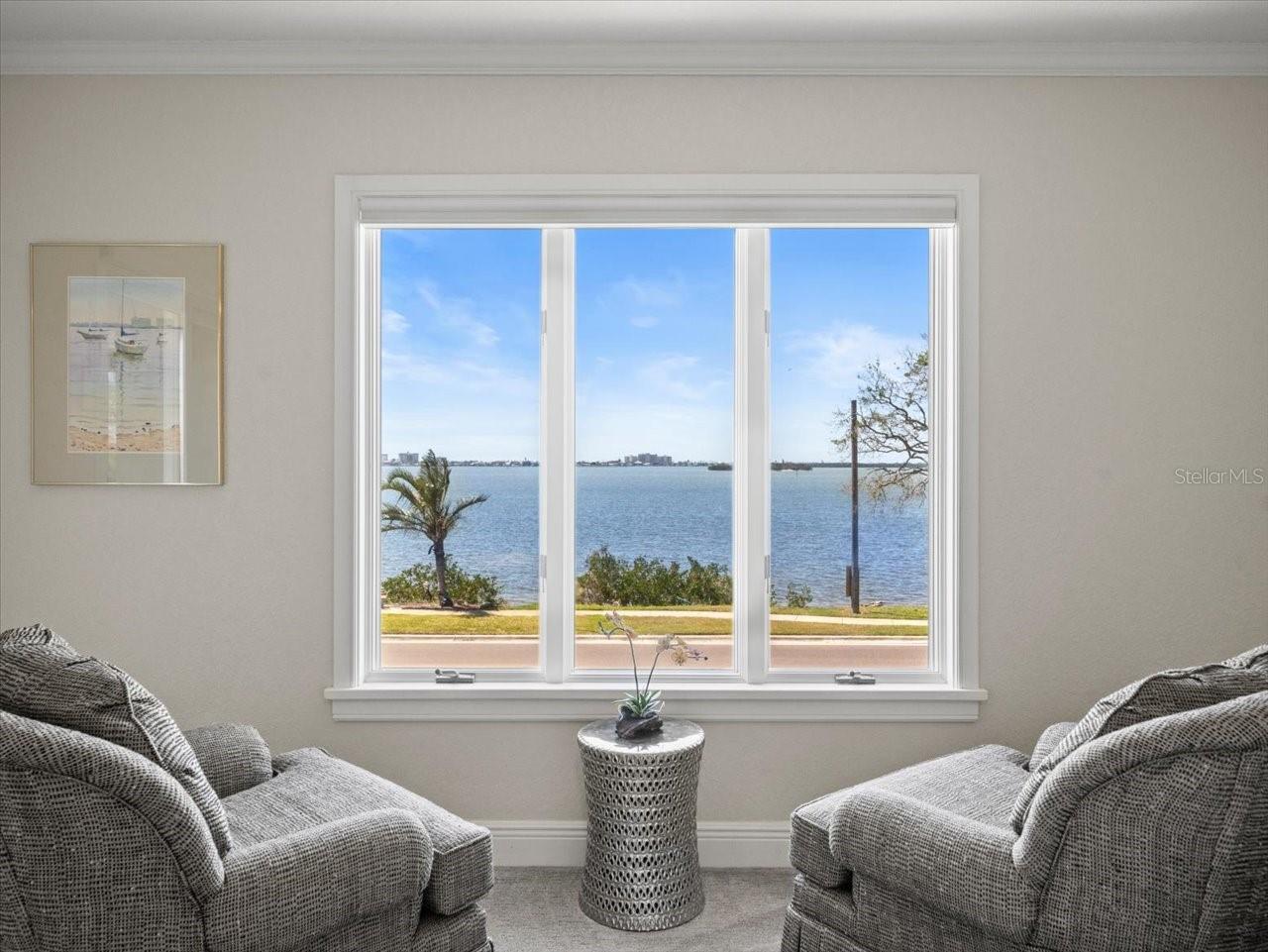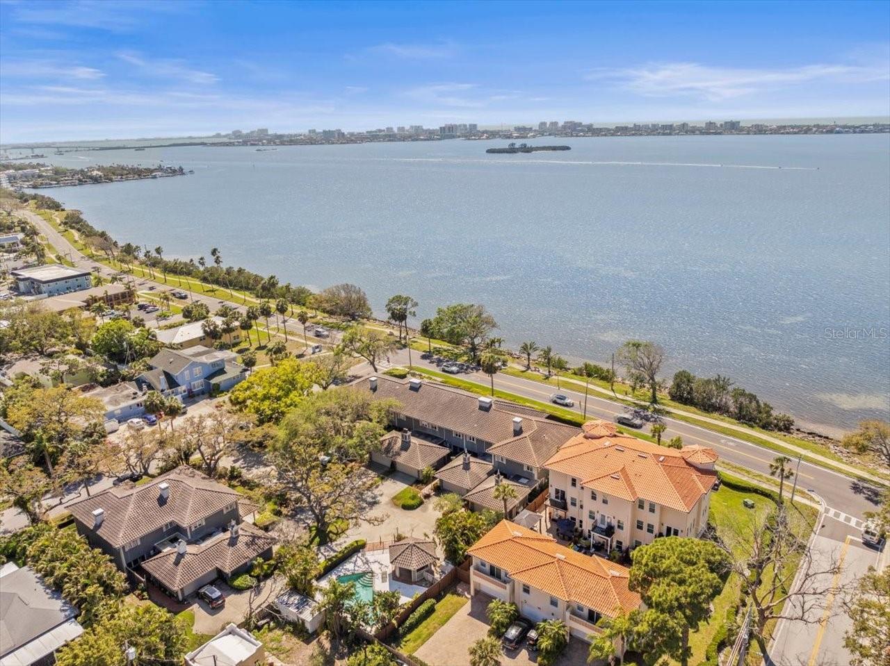 Experience stunning sunsets from the comfort of this spacious and open 3 Bedroom, 2.5 Bathroom townhome overlooking the breathtaking expanse of St. Joseph’s Sound and the Intracoastal waterway. Step into luxury as you enter through the privately gated front courtyard into an elegant foyer that leads into an open living room with panoramic waterfront views. Easily entertain guests in the waterfront dining room & kitchen, complete with bar seating, flat stone stack brick (from the historic Belleview Biltmore Hotel) fireplace, and a private covered lanai and outdoor waterfront patio. The first floor also features a spacious laundry room/butler’s pantry with a full-size washer & dryer and elegant 1/2 bath, front courtyard, two car garage and ample storage. Take your private elevator (or stairs) to the second floor to discover the waterfront primary bedroom with an ensuite bath and another private outdoor covered lanai overlooking breathtaking views of nature, water, Clearwater Beach, Caladesi Island. Enjoy the uplifting view of bikers, walkers and jogger’s enjoying the Edgewater trail. Also on the second floor are 2 nice size additional bedrooms and a second, shared full bathroom. This property is extremely unique with the following combination of features that are hard (if not impossible to duplicate) First, absolutely amazing open water expansive views. Second, Flood zone X (no flood insurance required for lenders) and water did not reach the land of this complex during last year’s “worst flood in 100 years”. Third, Location and proximity to Downtown Dunedin, Honeymoon Island and Clearwater Beach. Fourth, private 2 car garage, 3 full bedrooms, 2.5 baths, Elevator, Community Pool, and exquisite updates including features hickory wood flooring, motorized blinds, custom built closets & a Hurricane-rated windows and garage door with a new automatic opener. The kitchen features recently upgraded, high-end appliances (Bosch, Sub Zero, Café GE, Sharp) & custom cabinetry. Additional updates include: new (in the last 5 years) water heater, air conditioner, ductwork, leased Blair water conditioner. Move in ready with modern neutral décor. A real pleasure to tour. Please request a link to view the video walkthrough if you haven’t already.