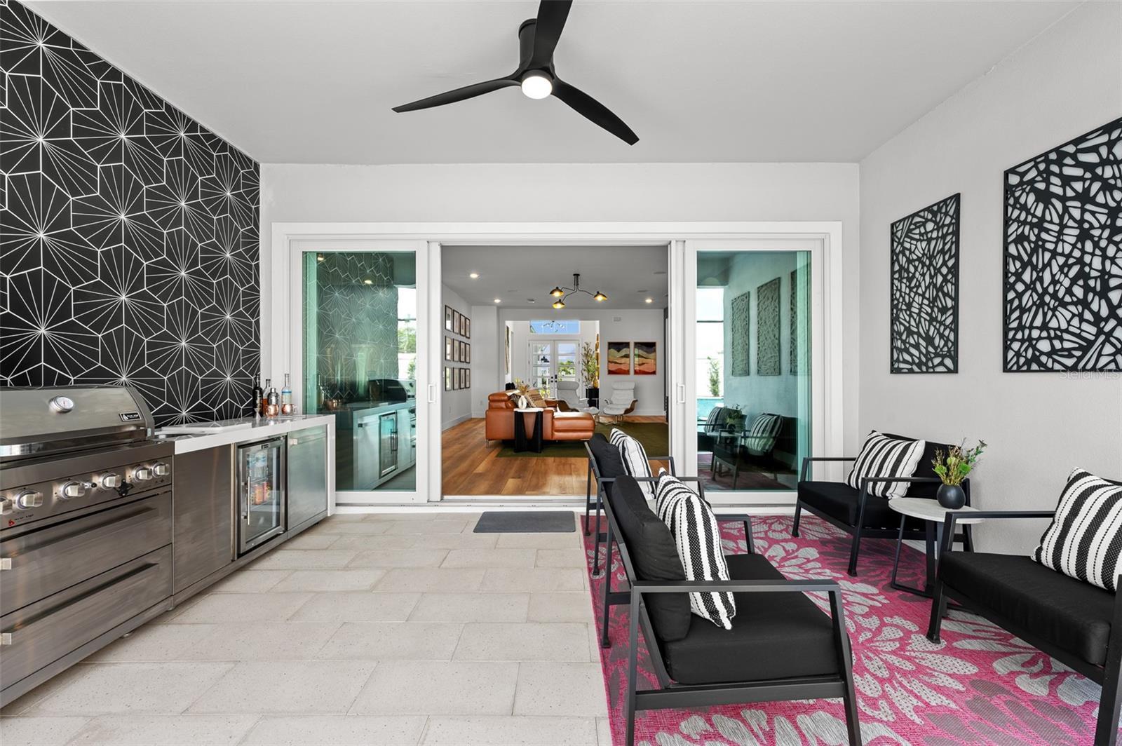 - French Doors, Lighting, Outdoor Grill, Outdoor Kitchen, Rain Gutters, Sidewalk, Sliding Doors, Sprinkler Metered