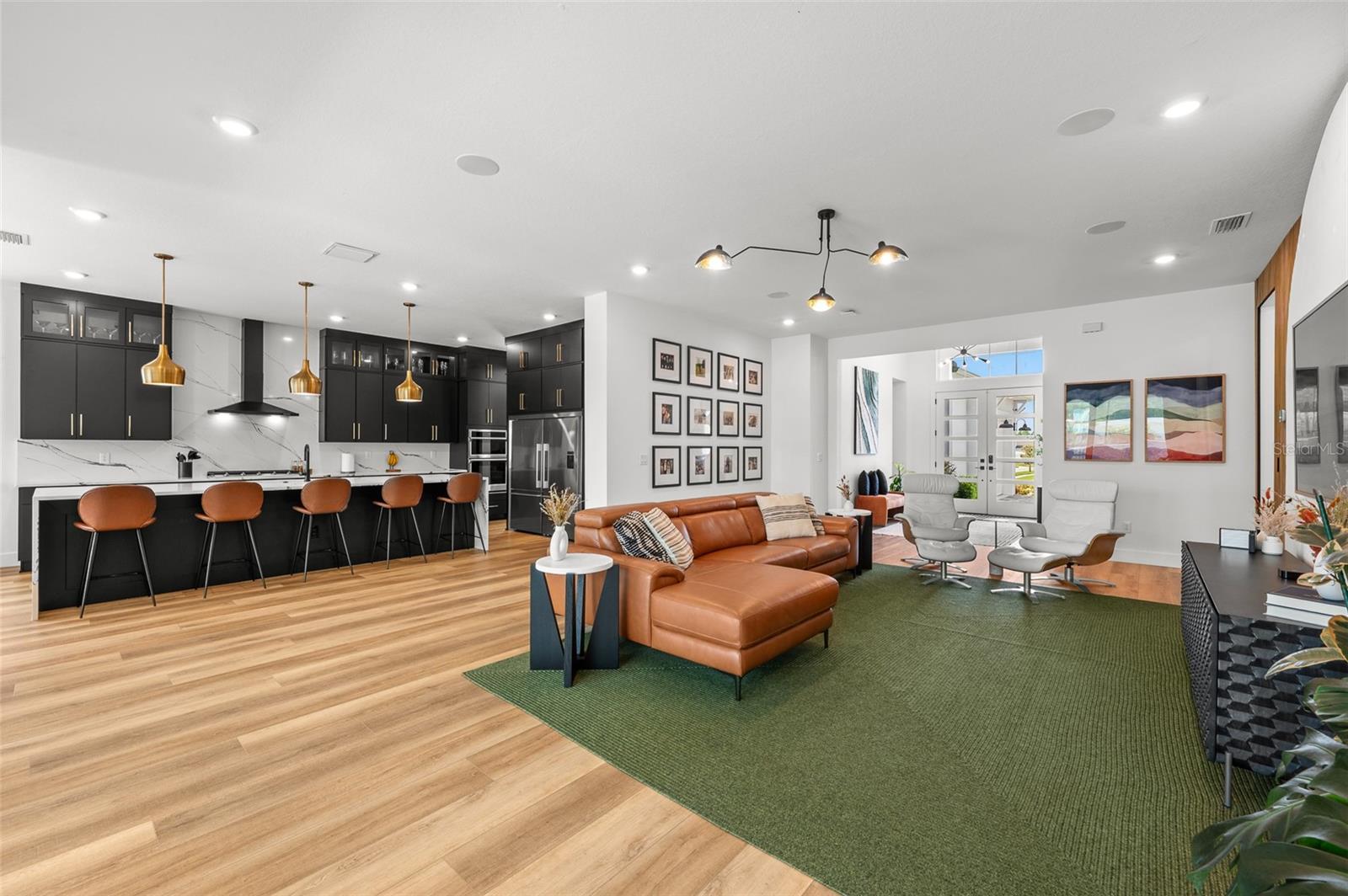Alluring luxury resort-style pool home in the secluded Robin’s Cove section of the Epperson Lagoon community. Ideally appointed five-bedroom, three full- and two-half-bath, bonus loft, three-car garage pool home is a masterpiece of style and functionality. Step outside to your private vacation style backyard featuring a heated saltwater pool complete with a Badu swim jet for lap swimming, tanning ledge, captivating waterfall and fountain jets, and mesmerizing Nebula pool cage lighting, all enclosed by a stylish mosaic tile privacy wall. The heart of the home is the chef's kitchen, boasting level 4 quartz dual waterfall island, elegant maple cabinetry, dual built-in convection ovens with steam and proofing features, a convection microwave with broil, a gas cooktop, and a commercial-style Fisher & Paykel 60-inch refrigerator and freezer. A dedicated coffee bar pantry and expansive walk-in pantry provide ample storage. Entertain effortlessly with the outdoor kitchen, complete with a Mont Alpi outdoor grill, bar refrigerator and sink, accented by a custom tile backsplash. The primary suite is a retreat, featuring a tasteful accent wall, an oversized window, a large built-out walk-in closet, a frameless glass walk-in shower with rainfall feature, dual vanity and a separate water closet. Enjoy movie nights in the living room with a built-in 5.1 surround sound system. Additional features include dual AC systems, a built-out laundry room, a split three-car garage with four built-in overhead racks, UV protection film on windows, impact sliding glass doors, 10-foot ceilings, a water softener and filtration system, modern square baseboards, soft-close drawers, an upgraded builder option oversized window package, and a 50-gallon propane tank servicing the cooktop, grill and water heater. Epperson’s famous crystal lagoon comprises 7.5 acres of clear blue water including sandy beaches, a swim-up bar, food trucks and various water activities. Epperson also showcases UltraFi, a community wide internet and cable experience, Streetleaf solar streetlights, golf cart paths and miles of trails. In the Robin's Cove neighborhood is Eagle Park which includes a community clubhouse, recreational trails, exercise stations, dog parks, playground and a dock for King Lake. This growing area is across the street from The Kirkland Ranch Academy of Innovation and new Kirkland Ranch K-8 School. Enjoy golf cart access to Publix and Starbucks while also conveniently less than five minutes from Interstate 75 providing ample shopping and dining options at the Tampa Premium Outlets, Shops at Wiregrass and Krate at the Grove.