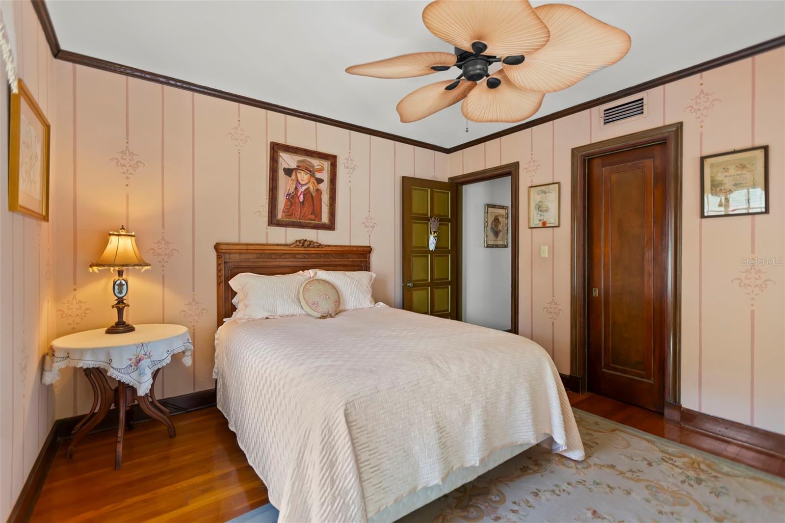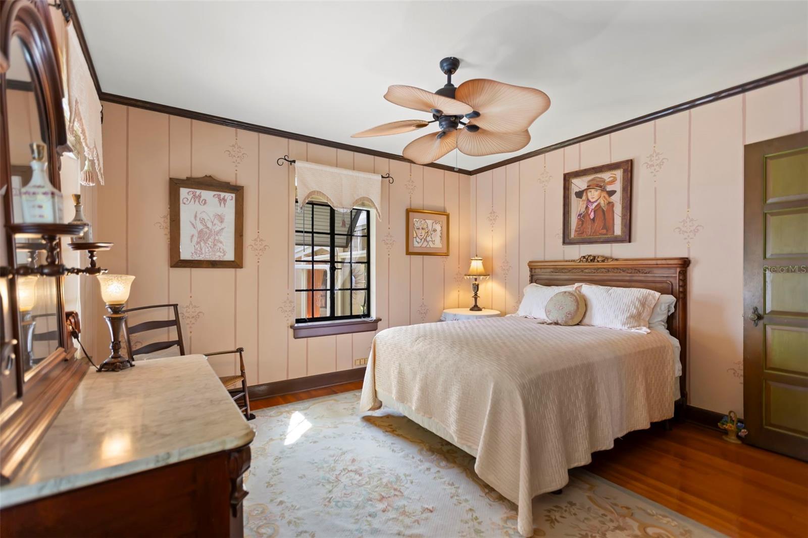 - Built-in Features, Ceiling Fans(s), Crown Molding, High Ceilings, Solid Wood Cabinets, Split Bedroom, Stone Counters, Thermostat, Window Treatments