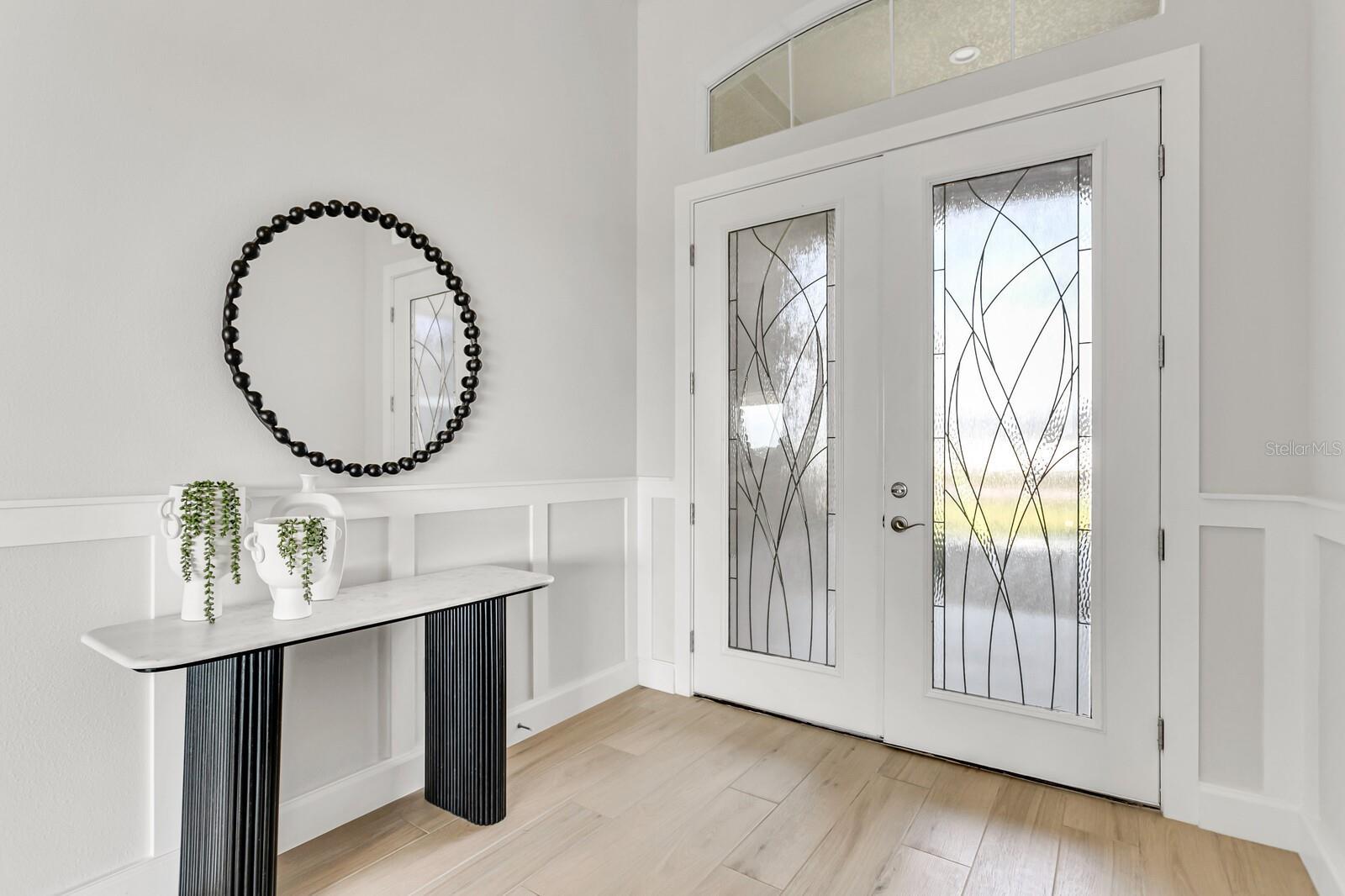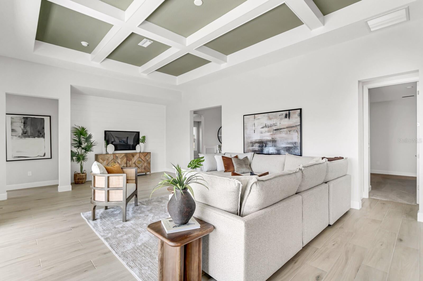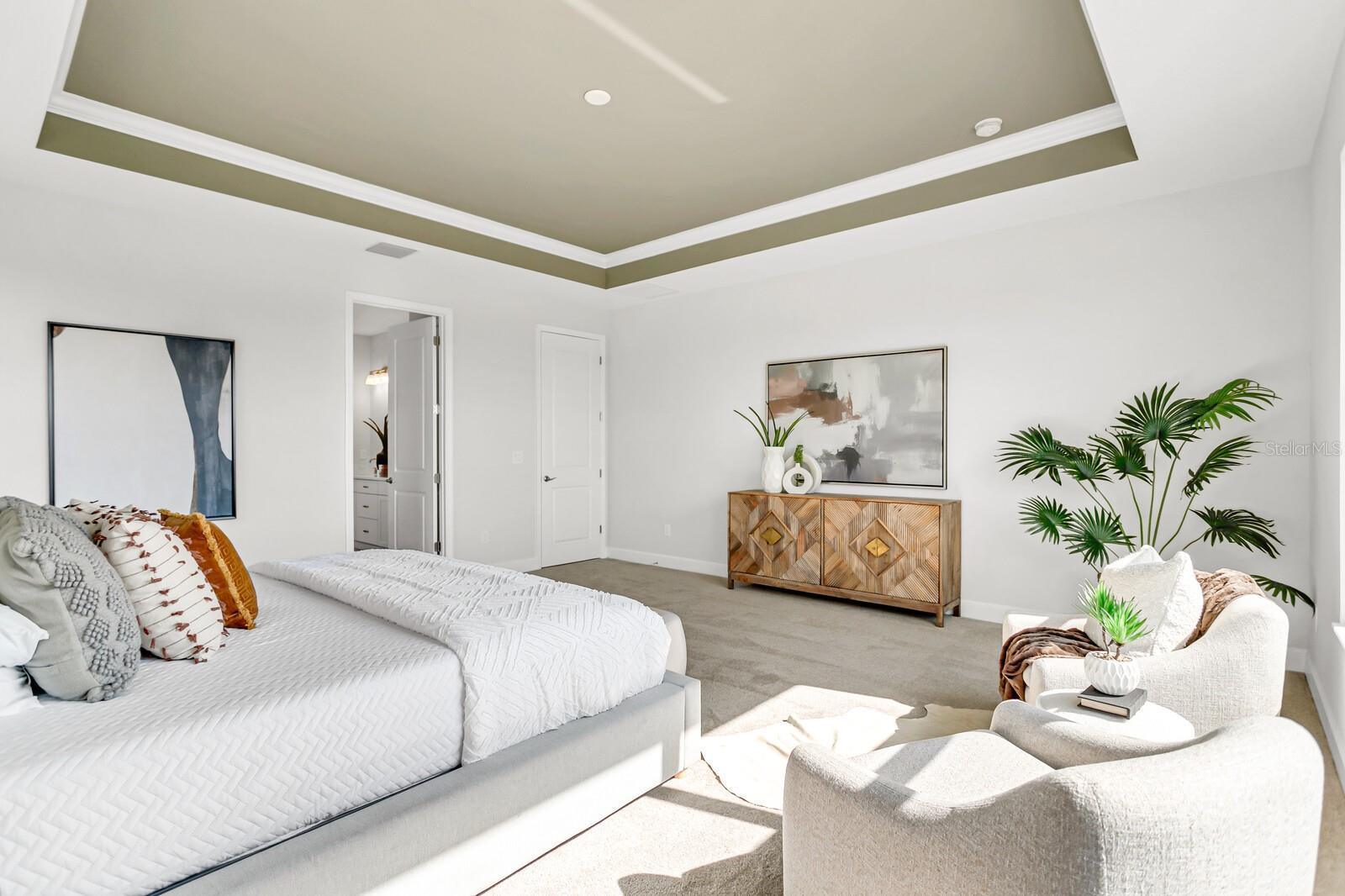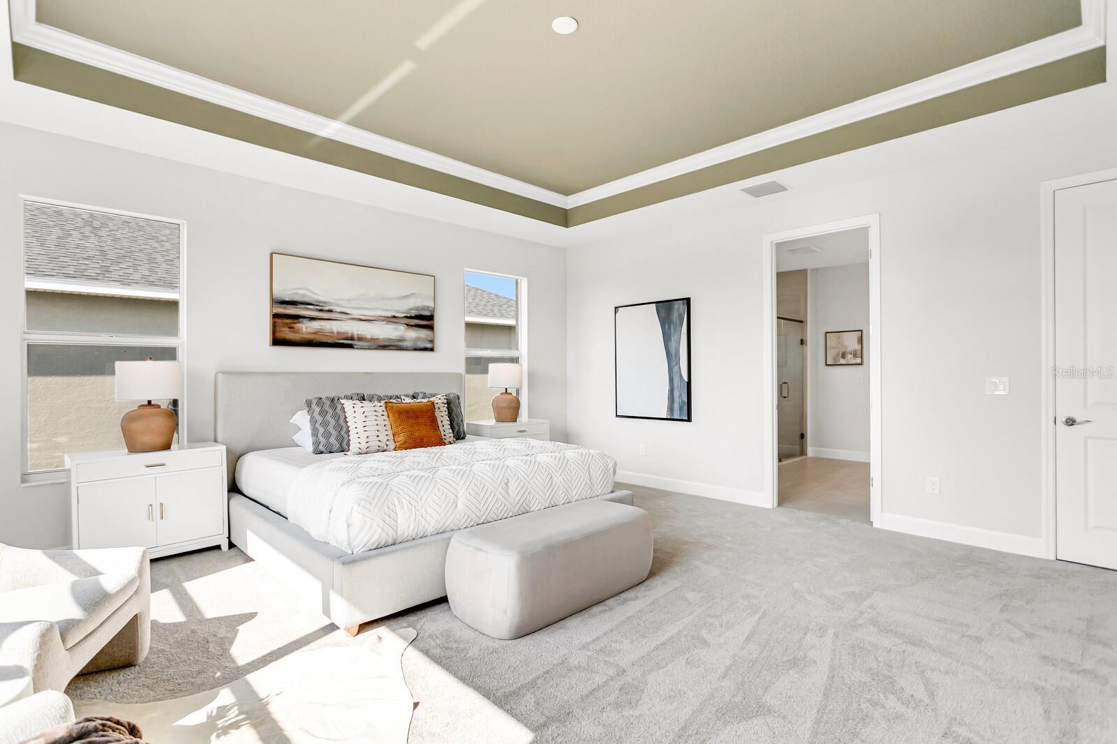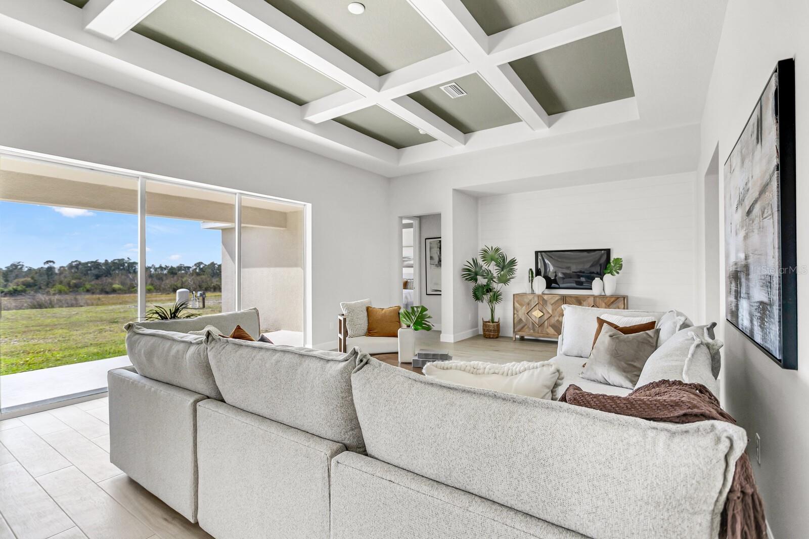 Welcome to 5214 Lake Venice Drive, a luxurious, BRAND new Sunrise Home residence nestled in one of the most sought-after communities in the area. This stunning 3-bedroom (2 MASTER BEDROOMS), 3 1/2-bathroom home offers over 2,850 square feet of refined living space, blending elegant design, functionality, and privacy—all surrounded by peaceful natural views. From the moment you arrive, the home’s curb appeal captures attention with its crisp, modern exterior, pristine landscaping, and a 3-car garage that offers both practicality and style. Step through the grand double glass front doors and into a space that exudes warmth, light, and sophistication. Inside, you're greeted by soaring coffered ceilings, wide-plank flooring, and an open-concept design that seamlessly connects the expansive living area, gourmet kitchen, and dining space. The chef’s kitchen is a showstopper with custom cabinetry, quartz countertops, stainless steel appliances, a large center island with seating, and a walk-in pantry—perfect for entertaining or family gatherings. The spacious primary suite is a true retreat, complete with tray ceilings, large windows that frame sweeping backyard views, and a luxurious en-suite bath featuring dual vanities, a walk-in shower, and a generous walk-in closet. One of the additional bedrooms serves as a second master suite, perfect for multigenerational living or long-term guests, offering its own private en-suite bath and ample space. Two more bedrooms are thoughtfully arranged to provide comfort and privacy—ideal for family members, visitors, or a home office setup. Step out onto the covered lanai to enjoy a tranquil backyard with no rear neighbors—your own slice of serenity overlooking Florida’s natural beauty. Whether you’re sipping morning coffee or hosting a sunset dinner, this outdoor living space is perfect for enjoying year-round. Every inch of this home has been designed with care and style, offering upscale features, energy efficiency, and a peaceful setting—all just minutes from shopping, dining, and major routes. OTHER UPGRADES INCLUDE: QUARTZ COUNTER TOPS, CROWN MOLDING, TRAY CEILINGS, NATURAL LIGHTING throughout, FLORIDA SLIDER to the exterior entertainment area, FRENCH ENTRY FRONT DOORS, PLANTATION SHUTTERS, WOOD-LOOK TILE THROUGHOUT, and MORE!