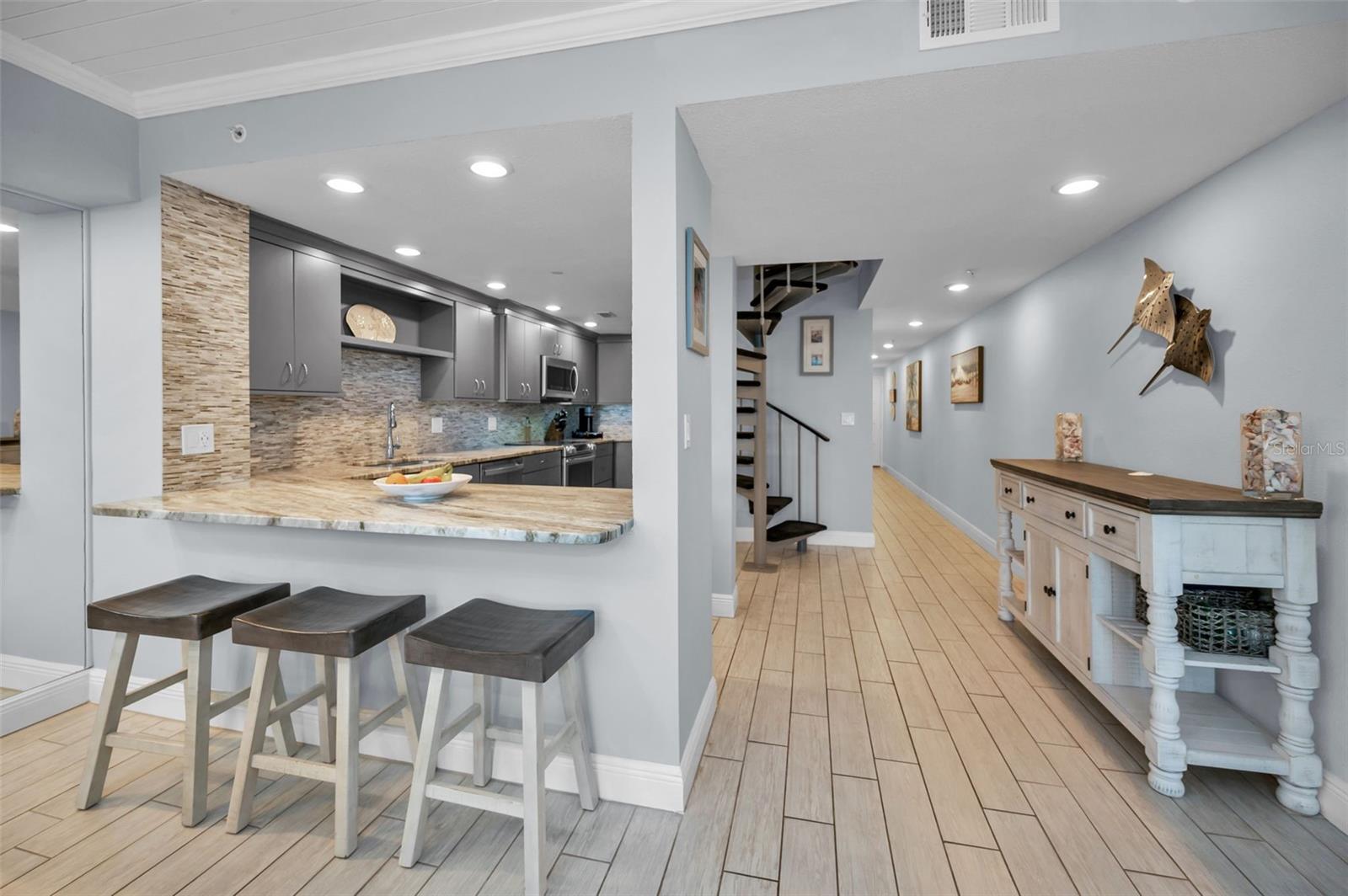 .. AMAZING OPPORTUNITY... NEW REDUCED PRICE...Updated two-story gulf-front townhouse-style condominium. Aesthetically pleasing fluted block construction in this boutique private 18-unit complex with Secured Garage parking called 700 WEST. Large three-bedroom, three full baths with over 1,740 square feet of living space enjoying year-round sunsets on sugar sand beaches. Move-in ready. Updated kitchen, Balcony Sliders, A/C System, Flooring, Bathrooms and Wall Finish etc. Ample closet space throughout home with designer built-ins including ELFA Master Closet System, new LG Thin Q refrigerator four-door with craft ice and all new sprinkler heads throughout unit. Urban chic floor plan with 28-by-15-foot great room, lofted main bedroom, newer turtle tint hurricane floor-to-ceiling glass all fronted by a private 15-by-8-foot direct gulf front balcony. Vaulted ceilings afford nice space for showcasing art. Gulf views from all living areas, main bedroom and kitchen. Elevator access on both floors affording guest suite private entrance. Condo would make a great weekend beach getaway retreat for a professional Tampa Couple. The entry - east side windows are complete with hurricane shutters. Living Area Sliders have Hurricane Glass, The main level features a living room with breathtaking views from the hurricane windows featuring Electronic Blinds, a Dining Room that is big enough to entertain from, a beautiful updated kitchen that will accommodate the chef in you and a 3rd Bedroom/Office/TV room with double glass french doors and a full bath. The beautiful spiral staircase will take you to the second level featuring the primary bedroom suite that enjoys beautiful gulf views from your King Bed, plus a primary bath with double sinks, an extra-large walk in shower, a toilet closet and walk in ELFA closet. There is also another En-Suite Bedroom and a full bath on the second level with Private access from the 5th Floor Landing. All floors are tiled which makes it easy for cleaning and no allergies. Secured lobby and gated garage area with two storage areas for residence # 403. All updated exterior lounging areas, new outdoor pool furniture and fire pit plus an updated beachfront clubhouse with full kitchen. Amenities included large gulf-front heated pool, fire pit, grills and multiple large lounging areas. Upscale private 18-unit complex. Pets OK. Welcome to Indian Shores noted for its semiprivate beaches due to a lack of public parking. Go to restaurants and nightlife or take a stroll on an uncrowded beach - yes - uncrowded beaches. Private complex with good reserves plus new roof 2017, New exterior paint and concrete work all completed. Floor plans available. Residence 403 Conveys with a Secured Garage Parking Spot plus the Complex has 11 Floating Guest Parking Spots - perfect for an occasional Dinner party or a family beach getaway weekend. Milestone completed, all good. Complex just completed exterior building beautification project including New pool area Tile, Fire Pit, Furniture, Fencing & Vegetation.. Sorry, This is not a short term rental building - the owners repeatedly vote to keep the complex a family oriented private building where you will know your neighbors and the Pool area is never crowded with strangers. Good product at a great price. Floorplans available. Enjoy the photos and walk-through tour. Immediate showings available, just call.