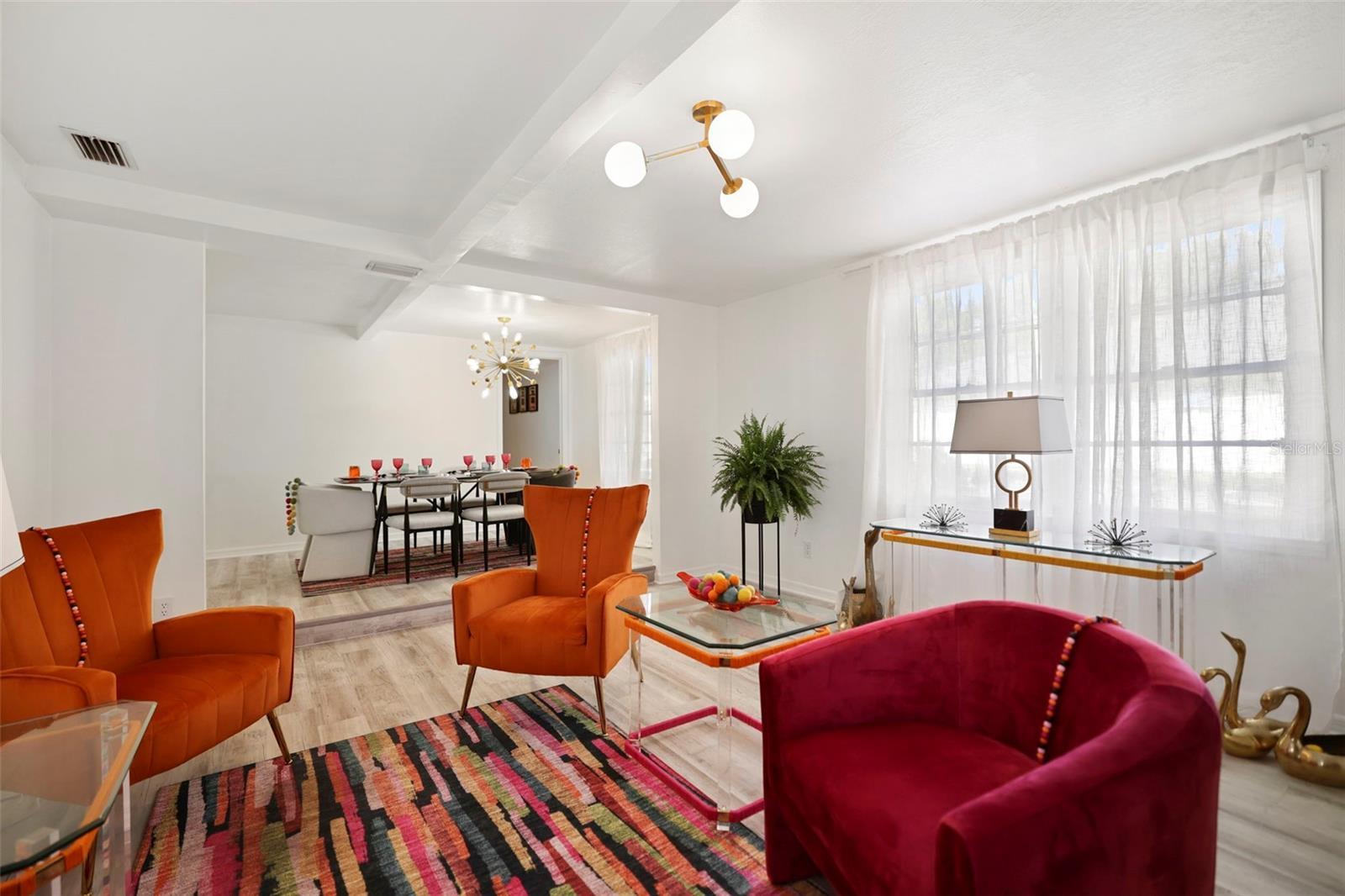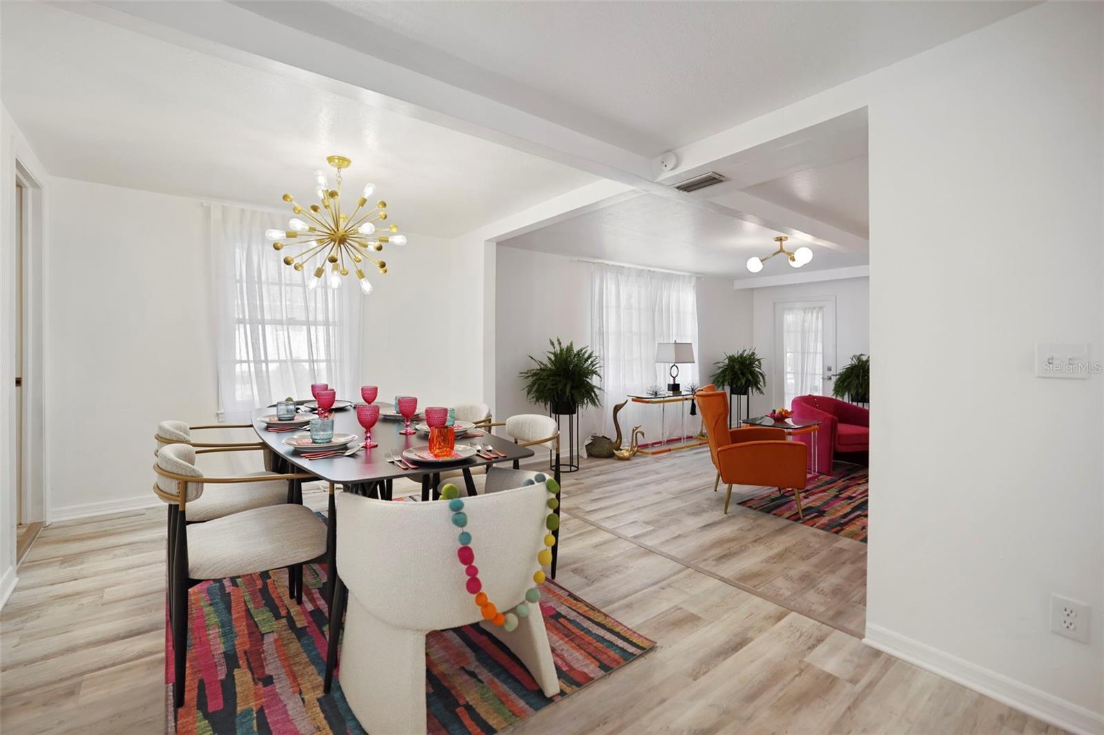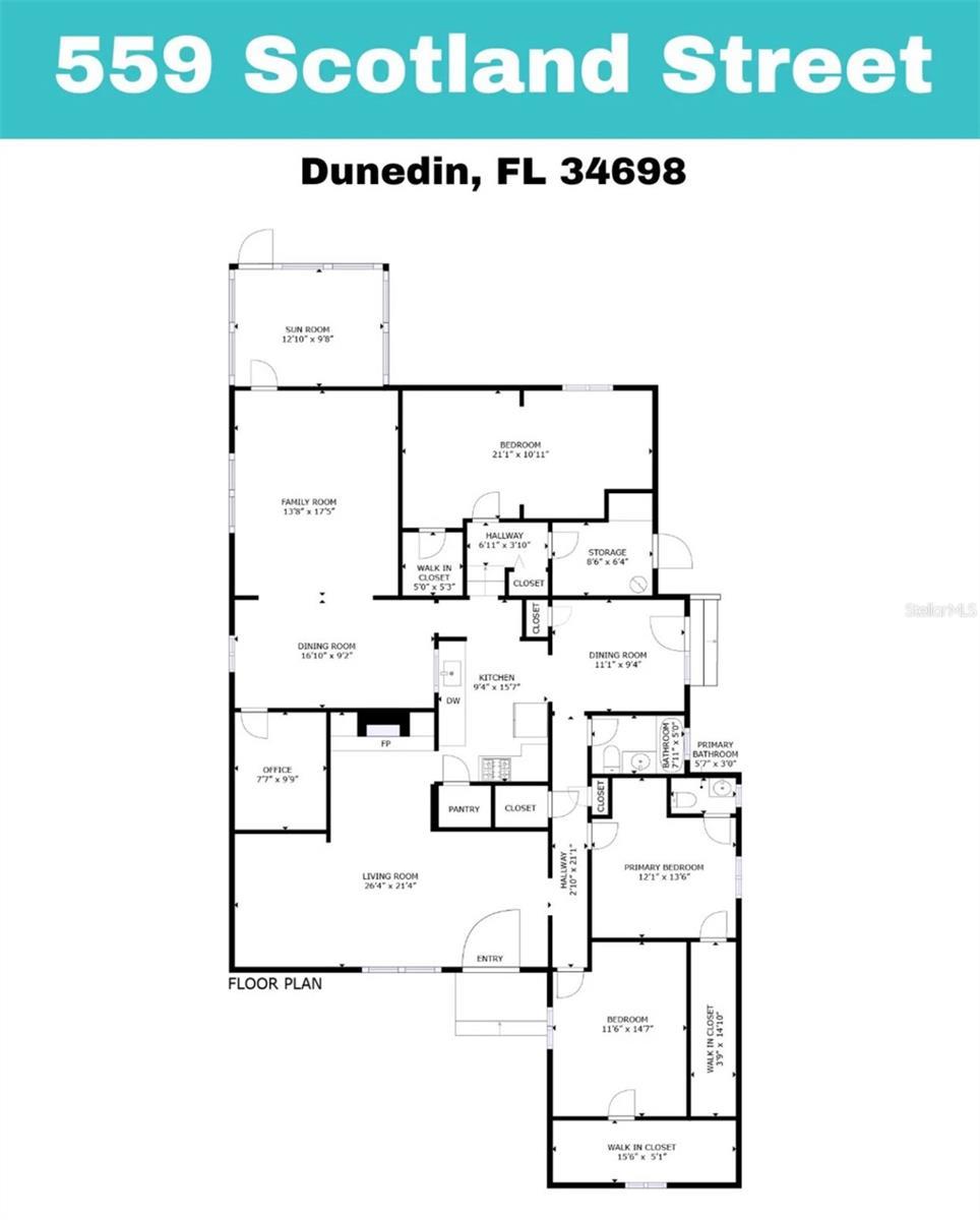 Welcome to your storybook home in the heart of Downtown Dunedin! Perfectly positioned on a picturesque brick-lined street at the corner of Milwaukee and Scotland, this enchanting 3-bedroom, 1.5-bath home sits on an oversized corner lot framed by majestic oak trees. The location couldn’t be more ideal—just a short stroll, bike ride, or golf cart cruise to everything that defines the Dunedin lifestyle: the marina, Pinellas Trail, parks, local breweries, boutiques, and world-class restaurants. Thoughtfully and tastefully remodeled, this home blends timeless charm with modern comfort. The heart of the home is the stunning new kitchen, featuring quartz countertops, crisp white shaker cabinets, stainless steel appliances, and designer lighting. Fresh paint, updated fixtures, and a warm, open floor plan invite you in. A cozy fireplace adds ambiance to the spacious living room, making it the perfect space for gathering and relaxing. To the right of the entry, a generous bedroom offers flexible use, while down the hall you’ll find two more bedrooms, including one with a convenient half bath. The main bath has been completely remodeled and has beautiful designer tile and finishes. The kitchen is ideally located at the center of the home, connecting a sunny eat-in nook—complete with a door that opens to a private side patio—and a formal dining area just off the living room. Need a quiet space to work or unwind? A dedicated office is tucked just off the living room. Step through to the screened-in lanai and take in the expansive backyard—an open canvas with plenty of room for a pool, garden, or anything your heart desires. With large closets, a 2024 A/C, and a 2018 roof, this home offers peace of mind and effortless living.Also not in a flood zone! Don’t miss your chance to experience the Dunedin lifestyle at its finest. Schedule your private showing today!