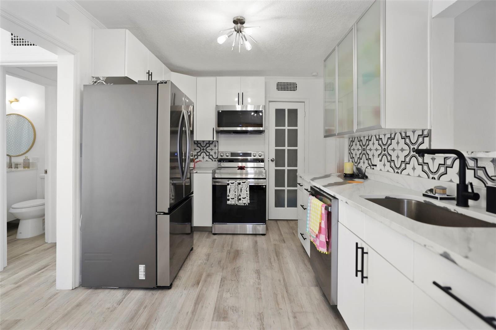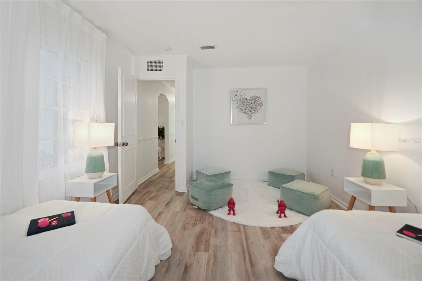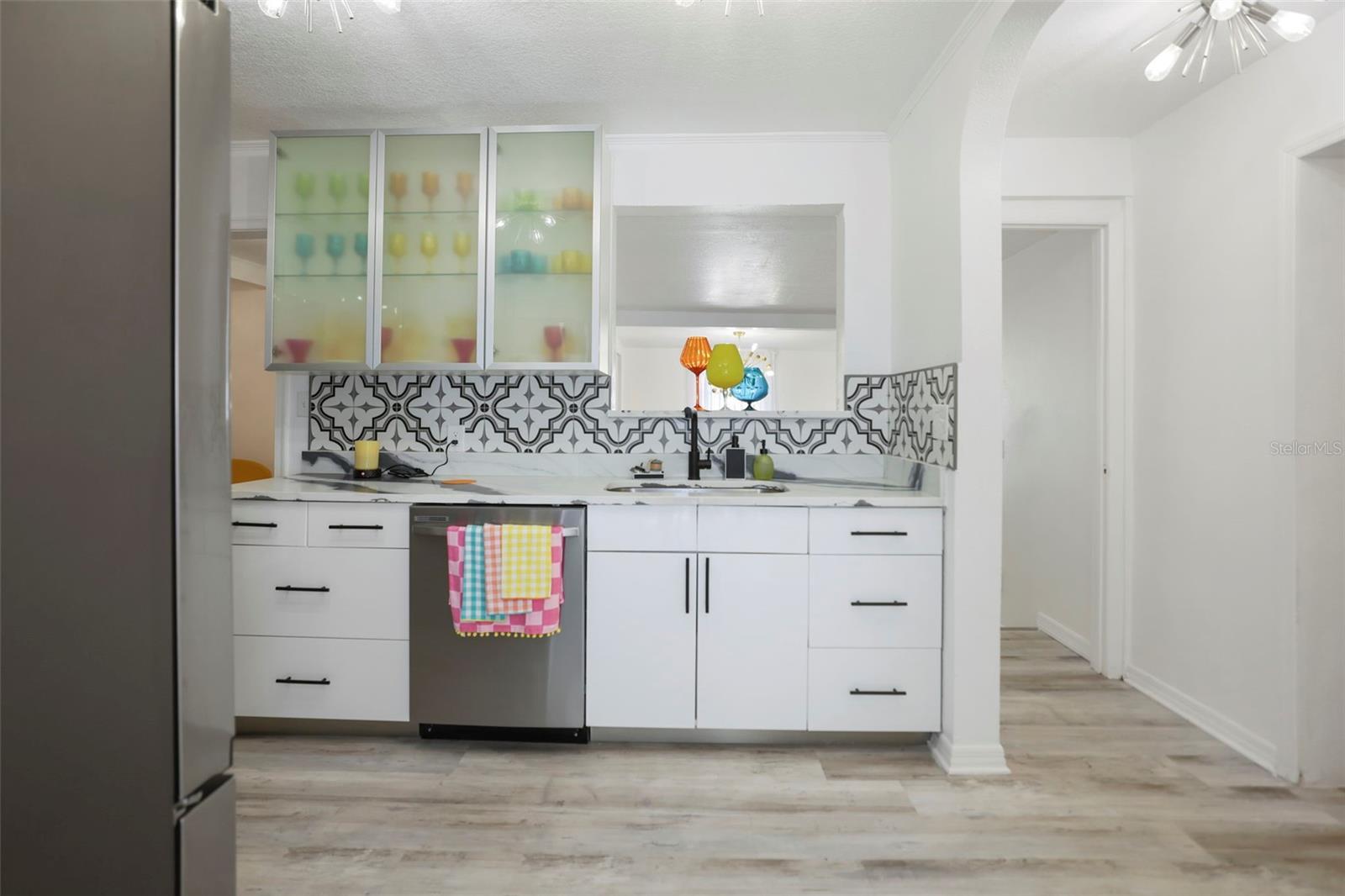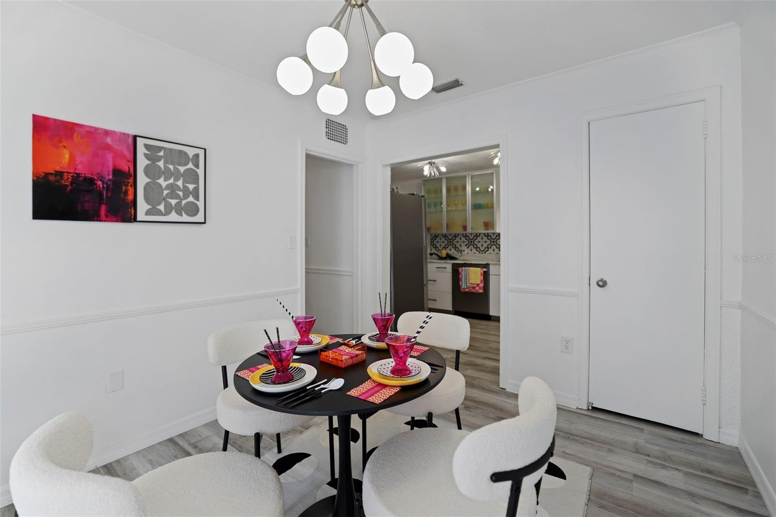 Welcome to your storybook home in the heart of Downtown Dunedin! Perfectly positioned on a picturesque brick-lined street at the corner of Milwaukee and Scotland, this enchanting 3-bedroom, 1.5-bath home sits on an oversized corner lot framed by majestic oak trees. The location couldn’t be more ideal—just a short stroll, bike ride, or golf cart cruise to everything that defines the Dunedin lifestyle: the marina, Pinellas Trail, parks, local breweries, boutiques, and world-class restaurants. Thoughtfully and tastefully remodeled, this home blends timeless charm with modern comfort. The heart of the home is the stunning new kitchen, featuring quartz countertops, crisp white shaker cabinets, stainless steel appliances, and designer lighting. Fresh paint, updated fixtures, and a warm, open floor plan invite you in. A cozy fireplace adds ambiance to the spacious living room, making it the perfect space for gathering and relaxing. To the right of the entry, a generous bedroom offers flexible use, while down the hall you’ll find two more bedrooms, including one with a convenient half bath. The main bath has been completely remodeled and has beautiful designer tile and finishes. The kitchen is ideally located at the center of the home, connecting a sunny eat-in nook—complete with a door that opens to a private side patio—and a formal dining area just off the living room. Need a quiet space to work or unwind? A dedicated office is tucked just off the living room. Step through to the screened-in lanai and take in the expansive backyard—an open canvas with plenty of room for a pool, garden, or anything your heart desires. With large closets, a 2024 A/C, and a 2018 roof, this home offers peace of mind and effortless living.Also not in a flood zone! Don’t miss your chance to experience the Dunedin lifestyle at its finest. Schedule your private showing today!