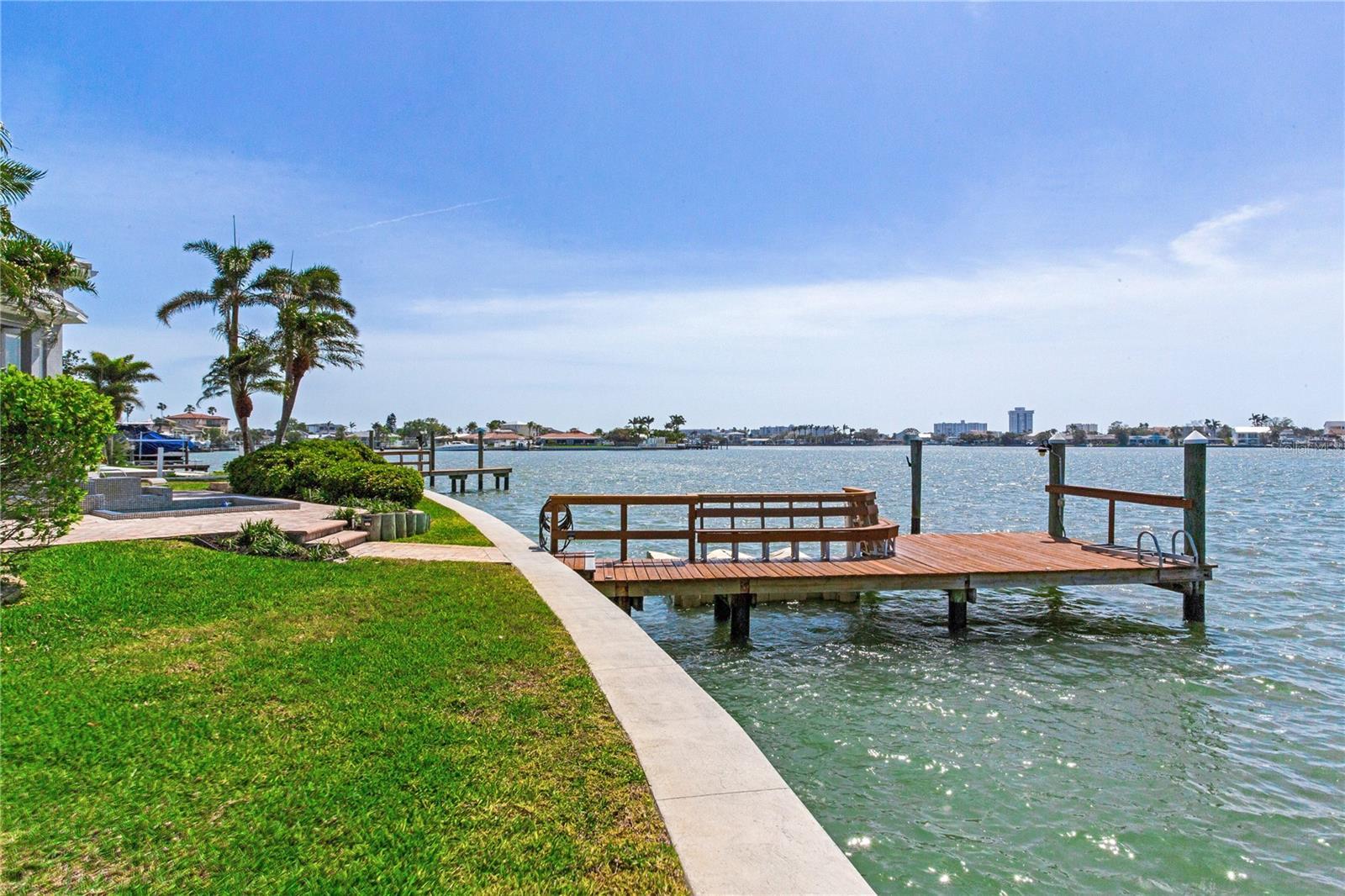 STUNNING ELEVATED CUSTOM-BUILT CONTEMPORARY HOME ON 107 FT OF WATERFRONT IN NORTH REDINGTON BEACH!! Welcome to your slice of waterfront paradise! Perfectly situated at the end of a quiet cul-de-sac, this architecturally unique residence boasts 107 feet of prime open water frontage with spectacular west-facing views—a front-row seat to unforgettable Florida sunsets. Step inside this 3-bedroom(3rd Bedroom has been opened up as a versatile loft space-perfect for a home office, den, or media area-but can easily be enclosed again with a door and half wall to restore full functionality), 3-bathroom home with 2,541 sqft of thoughtfully designed living space, where soaring vaulted ceilings and abundant natural light highlight the home’s open and airy feel. Nearly every room captures panoramic water views, bringing the beauty of the bay right into your living space. The spacious primary suite offers a true retreat, complete with a large walk-in closet and a spa-inspired en suite bath featuring a freestanding designer soaking tub, frameless glass shower, and dual vanities. The kitchen is perfectly positioned to overlook the living area and includes a cozy breakfast nook—ideal for morning coffee with tranquil water views. Luxury finishes throughout include granite countertops, a stunning pearl granite hearth, Pella windows, and storm panels. Step outside to the expansive balcony and enjoy your private dock, heated spa with fountains, and plenty of room for entertaining or unwinding in your peaceful bayfront oasis. The 107-foot seawall (installed in 2006) adds lasting value and peace of mind. Located just a short walk to the beach, near a city park, and surrounded by underground utilities for a clean, serene streetscape—this home seamlessly blends luxury, location, and lifestyle.