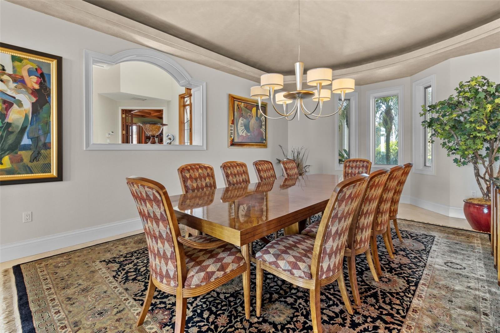 - Built-in Features, Ceiling Fans(s), Coffered Ceiling(s), Crown Molding, Dry Bar, Eat-in Kitchen, High Ceilings, In Wall Pest System, Kitchen/Family Room Combo, Open Floorplan, PrimaryBedroom Upstairs, Solid Wood Cabinets, Split Bedroom, Stone Counters, Thermostat, Tray Ceiling(s), Vaulted Ceiling(s), Walk-In Closet(s), Window Treatments