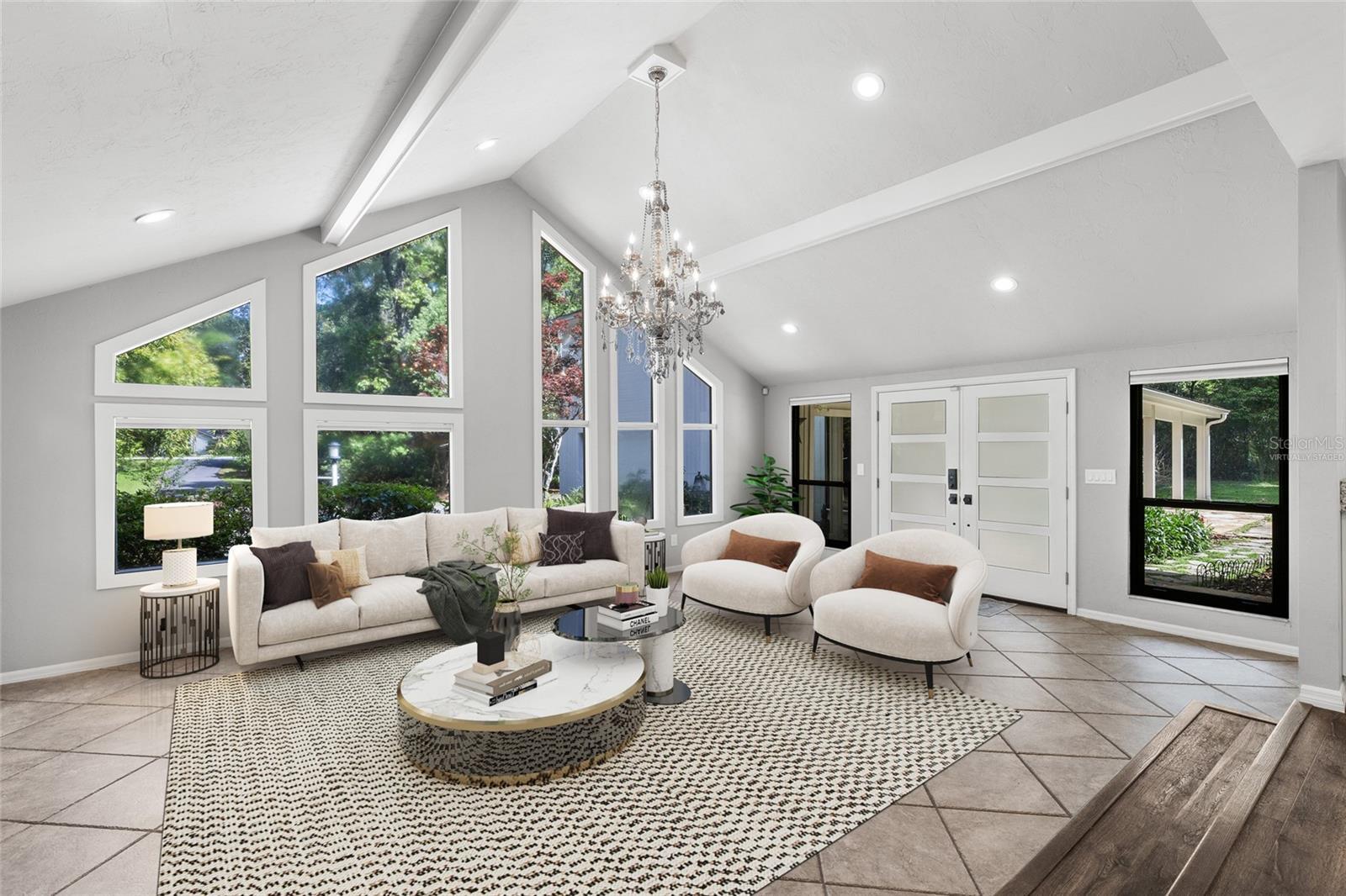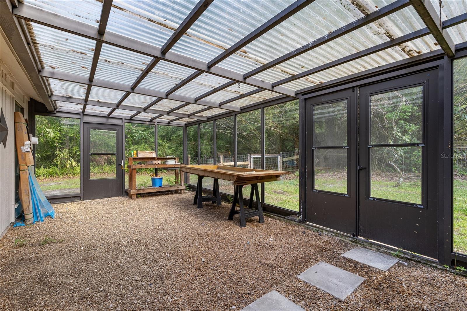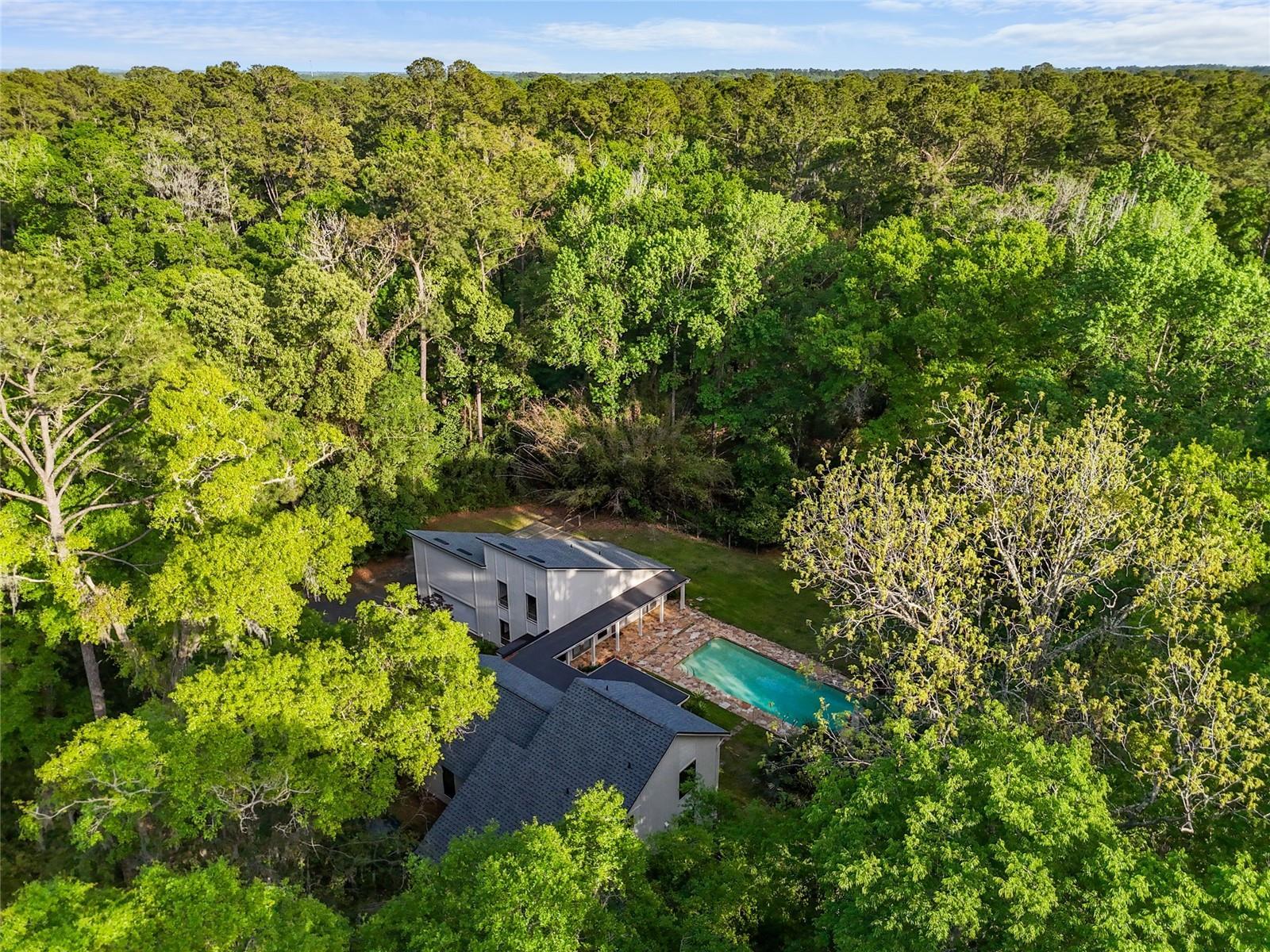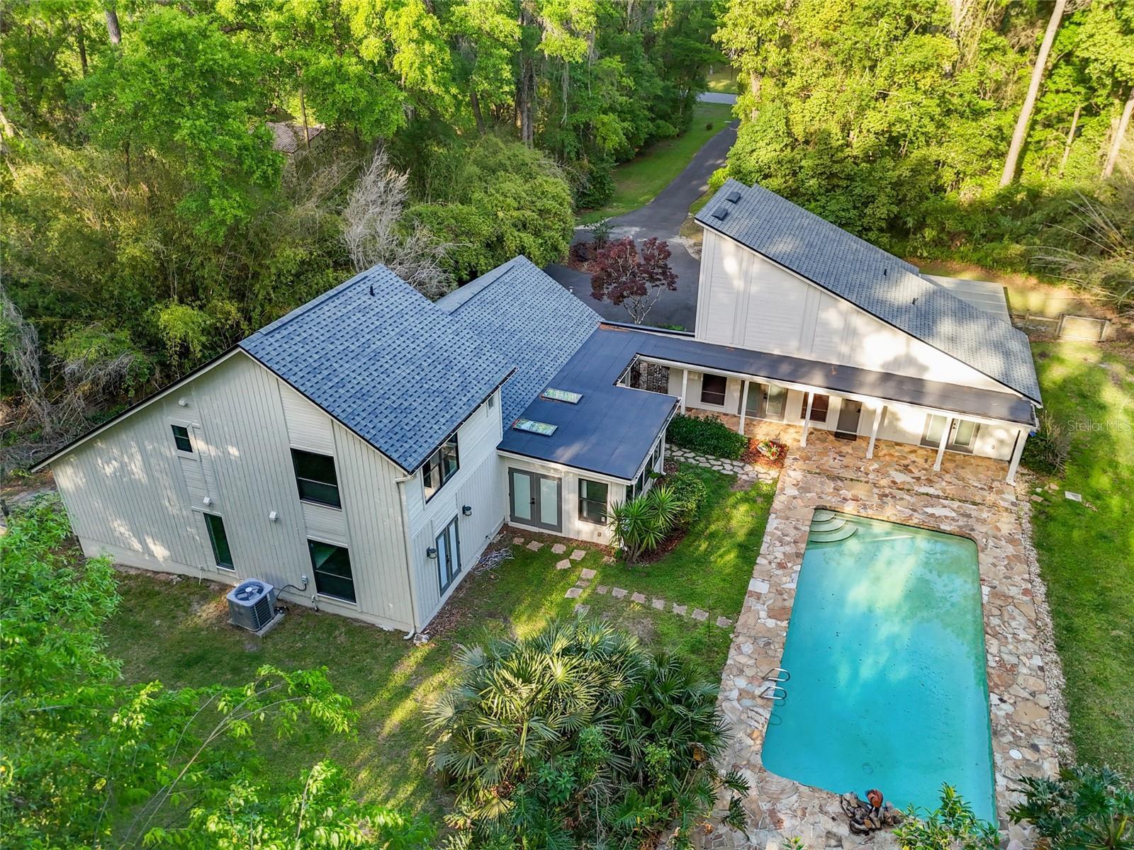 Under contract-accepting backup offers. This is the one you've been searching for! Set on nearly 2 acres of lush, natural beauty in the most desirable part of Southwest Gainesville, this stunning and architecturally unique property offers a distinctive blend of modern luxury amidst tranquil surroundings, making it ideal for those who appreciate both style and serenity. Like nothing available on the market, 1324 SW 98th Street gives its new owners unlimited options with both a main house and separate mother-in-law suite, in addition to a flagstone flanked swimming pool, oversized two-car garage, large greenhouse and koi pond. Enter through the residence's intricate wrought iron gate and you will feel like you've been transported to your own private compound that could have been the home of a famous artist, musician or writer. The main house spans more than 2,100 sqft and features a massive great room with elegantly updated and open kitchen, dining, and living room layout bathed in natural light and scenic views of the verdant grounds. The kitchen is a culinary delight, boasting fully updated stainless steel appliances, granite countertops, and a center island with breakfast bar. Enjoy two primary suites designed for ultimate comfort and privacy. The first-floor suite includes a fully renovated bath with double sinks, granite countertops, and a walk-in shower. Massive cedar walk-in closet! The upstairs suite boasts built-in bookshelves, another fully renovated bath and another walk-in closet. Additional amenities include a large interior laundry room with front-loading washer and dryer, a huge pantry closet, and a fully enclosed heated and cooled sunroom/den that overlooks the sparkling pool area, providing a perfect spot to relax and enjoy the surrounding natural splendor. Joined by a covered walkway, the mother-in-law suite provides another 800 sqft of living space with large bedroom overlooking the greenhouse, walk-in closet, and a full bath easily accessible from the pool, plus a generous separate living area with loft space. This incredible secondary dwelling is perfect for multigenerational housing and offers incredible versatility. It could be renovated to include a full kitchen or transformed into a gym, yoga studio, artist/music studio, or the perfect work-from-home office space. Alternatively, it could serve as an incredible pool house, ideal for hosting epic game day parties and entertaining guests. It can not be overstated that this truly unique property is a nature lover’s paradise, complete with a private greenhouse and a serene Koi Pond, offering a peaceful retreat right in your backyard. The oversized two-car garage provides ample storage and workshop space for all your needs. Fully fenced, the grounds ensure privacy and security amidst the lush landscape. Located just minutes from Haile Plantation, the Town of Tioga, and the top-rated schools in Southwest Gainesville, this home offers the perfect balance of seclusion and accessibility. Immerse yourself in the natural beauty and modern elegance of this one-of-a-kind property. Don’t miss the opportunity to make this stunning retreat your own! Watch the Video Tour at: https://youtu.be/fk7SsKqLAJE?si=wbagWV0nrO0i94Rq