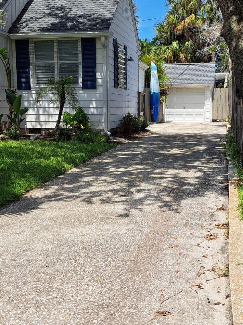 Absolutely charming North Beach quintessential cottage home has only had 3 previous owners in 85 years. Light, bright and airy it is ideally located near an intercoastal access and a short walk straight to Clearwater’s beautiful beaches. This home boasts the location you want and is surrounded by many multi-million dollar high value properties. The very livable courtyard shaped floorplan has an easy flow and great feeling that makes this home live much larger than it is. Eat in Kitchen has two floor to ceiling pantry areas, north and east counter height windows plus a secondary side entry. The 87 foot long driveway features an offset for refuse/recycle containers plus kayaks which combined with a new circular front drive this property could accommodate up to 7-8 vehicles plus the 1c garage. Spacious 450 square foot courtyard with shade arbor is a main attraction and highlights the outdoor Florida lifestyle it is visible from the entry, LR, Music/Office room, TV/sitting area and the Main Bedroom and Ensuite. The gated rear yard area off the courtyard provides ample room for a pool and decking. Storm remediation is almost complete as this home sits on a crawl space which lessened storm damage. Some of the recent updates are. New elevated HVAC October 2025 ?New premium roof July 2022 with transferable warranty ?New raised electrical main panel done in July 2022 ?Current owner has a Pest Control maintenance and Termite inspection contract. Perimeter fences are neighbor owned. Home is being sold as is, where is, but inspections are welcomed. 2 attic accesses and a useable crawl space entry inside guest walk in closet. The garage has a 121 sq ft laundry area with utility sink, a separate 3 x 8 cedar lined closet and 210 sq ft 1-c garage with an 8 ft wide door. If you want a 3 or 4 bd/2 bath home then consider easily changing the 9 x 16 music room/office area into a 3rd bedroom with just a door and the 10 x 10 sitting/TV room could transition to a child’s bedroom immediately adjacent to the 170 sq ft Main Suite. The Ensuite has a walk in closet with window and 115 sq ft main bath area with freestanding tub, large custom shower and glass enclosure highlighted by an open beamed ceiling. ************ Adding a second story private Suite w rear facing balcony with almost 300 sq ft over would be fabulous. Rough cost estimates plus permits and fees would make this cottage into a stunning 6 bedroom 3 bath with a covered courtyard, pool and parking for everyone for under $200k. What’s not to like about that at sunset!
