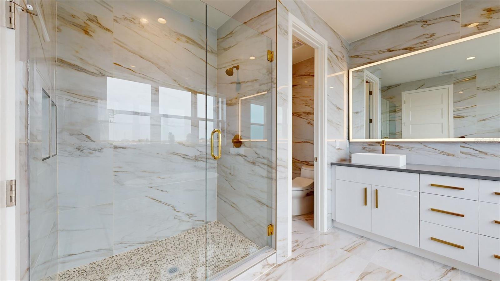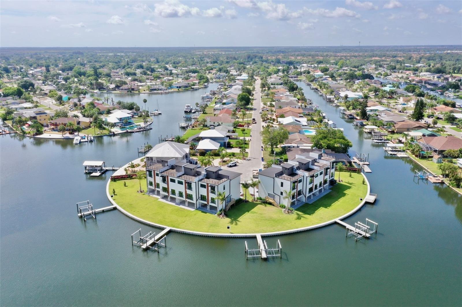 One or more photo(s) has been virtually staged. $20,000 FLEX CASH through the end of December! This can be applied towards a private POOL, outdoor kitchen, custom upgrades inside or out! The choice is yours! These townhomes each include a Private Elevator, Rooftop Terrace, Dock with a 10,000lb Boat Lift. Direct and easy access to Tampa Bay! Concrete Block top to bottom. Impact windows and doors, plus designer-curated interior finishes. Designed with flexibility in mind, these townhomes have low rental restrictions. Details meticulously crafted for both function and luxury. The private 2-car garage comes equipped with an EV charging station, extra storage space, and a sleek exterior garage door. Just steps from your car, you will be greeted by an expansive covered rear lanai that's pre-plumbed for an outdoor kitchen! An elevator inside your own home effortlessly transports you between floors, adding both grocery/luggage convenience, privacy, and sophistication. The open-concept kitchen is a chef's delight, featuring LG stainless steel appliances, Caesarstone quartz countertops, and a stunning waterfall island with the built-in SHARP drawer microwave. Adjacent to the kitchen, a flex space area provides ample room for gatherings and entertainment. The main living area includes a separate 4th bedroom or den/office, along with a guest powder room. Upstairs from the main living space, the primary suite is a true retreat, offering a walk-in closet with custom shelving and an opulent ensuite bathroom with floor-to-ceiling marble, a walk-in shower, and a standalone soaking tub. LED-backlit mirrors adorn every bathroom. Custom walk-in closets. Two additional guest bedrooms also feature walk-in closets, plank tile flooring, and trim work as seen through the main living areas, tall solid core doors, expansive ceiling heights and large windows for plenty of natural light, making the space feel elegant and inviting. Crowning this waterfront masterpiece is a private rooftop terrace! Panoramic views of Tampa Bay set the stage for unforgettable sunsets, summer storms, and fireworks. Whether enjoying a quiet evening under the stars or hosting a lively gathering, this rooftop oasis is the pinnacle of luxury living. Tropical landscaping plus lawn maintenance, irrigation, and a fishing pier are included in the low monthly HOA. No CDD fees. NO bridge restrictions! Builder warranty included! Financing Incentive available through preferred lender. Come join us for a Boat Tour and walk the fully decorated model!