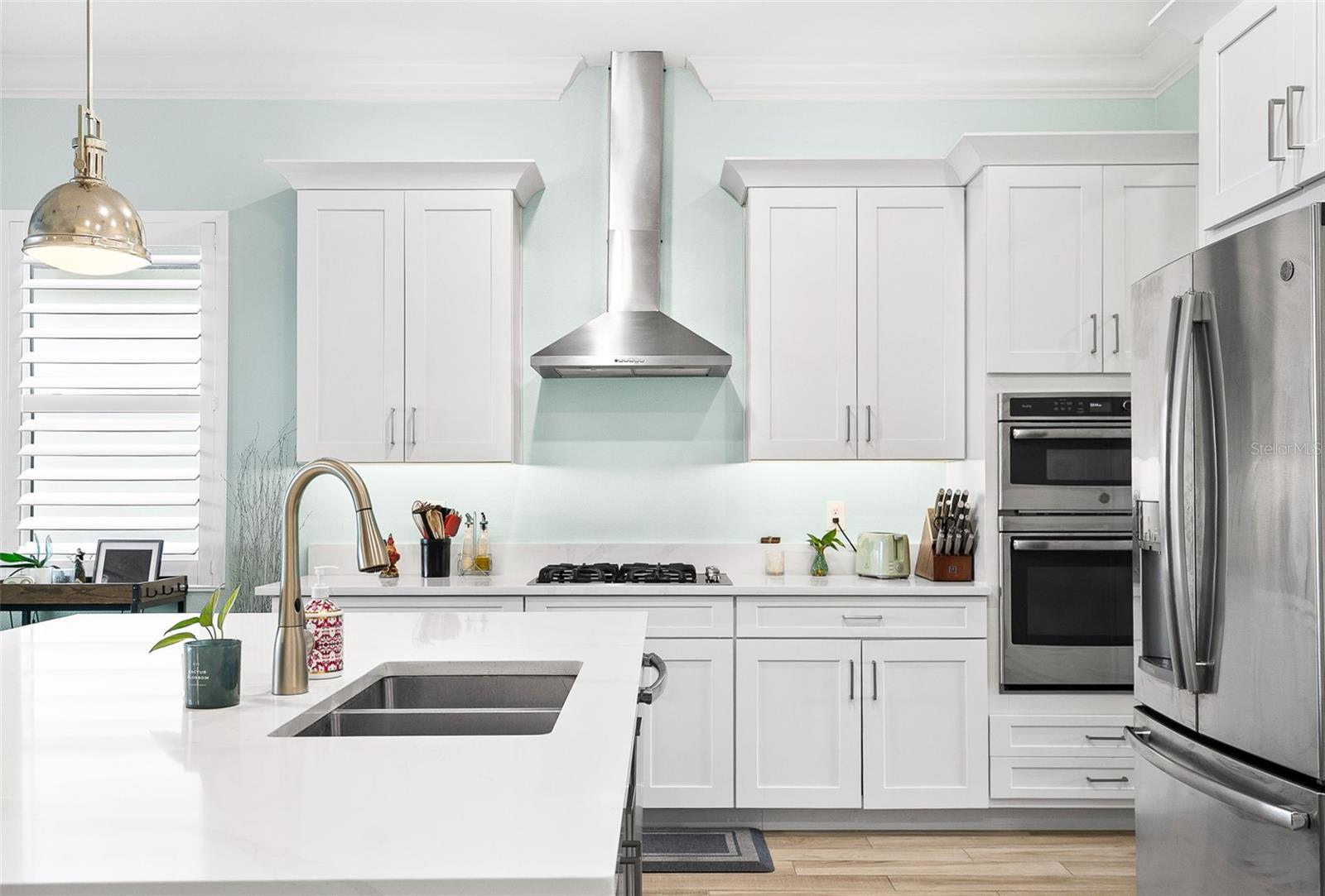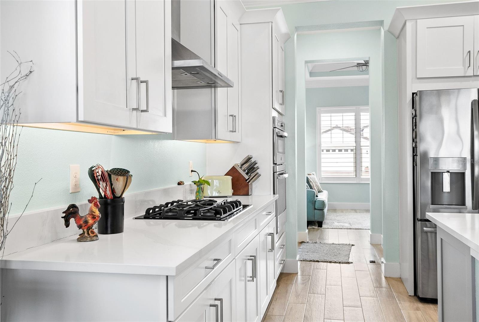 - Bar Fridge, Built-In Oven, Convection Oven, Cooktop, Dishwasher, Disposal, Microwave, Range Hood, Refrigerator, Tankless Water Heater, Touchless Faucet