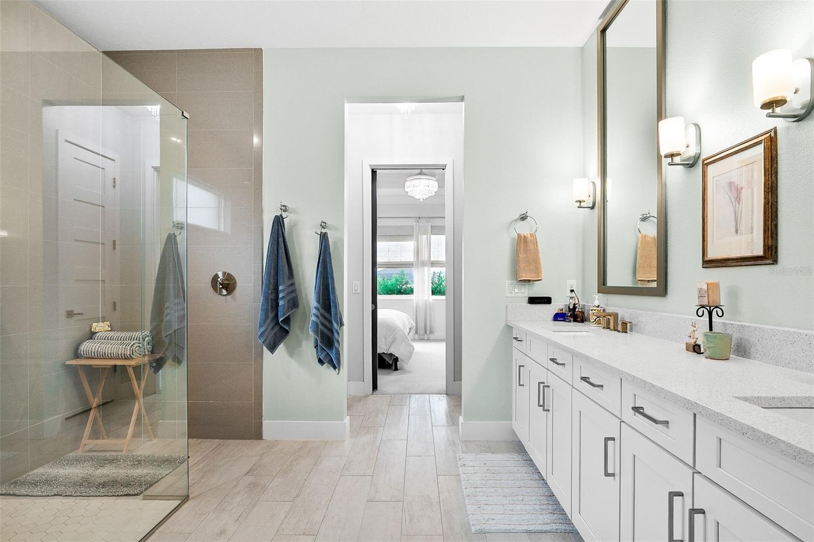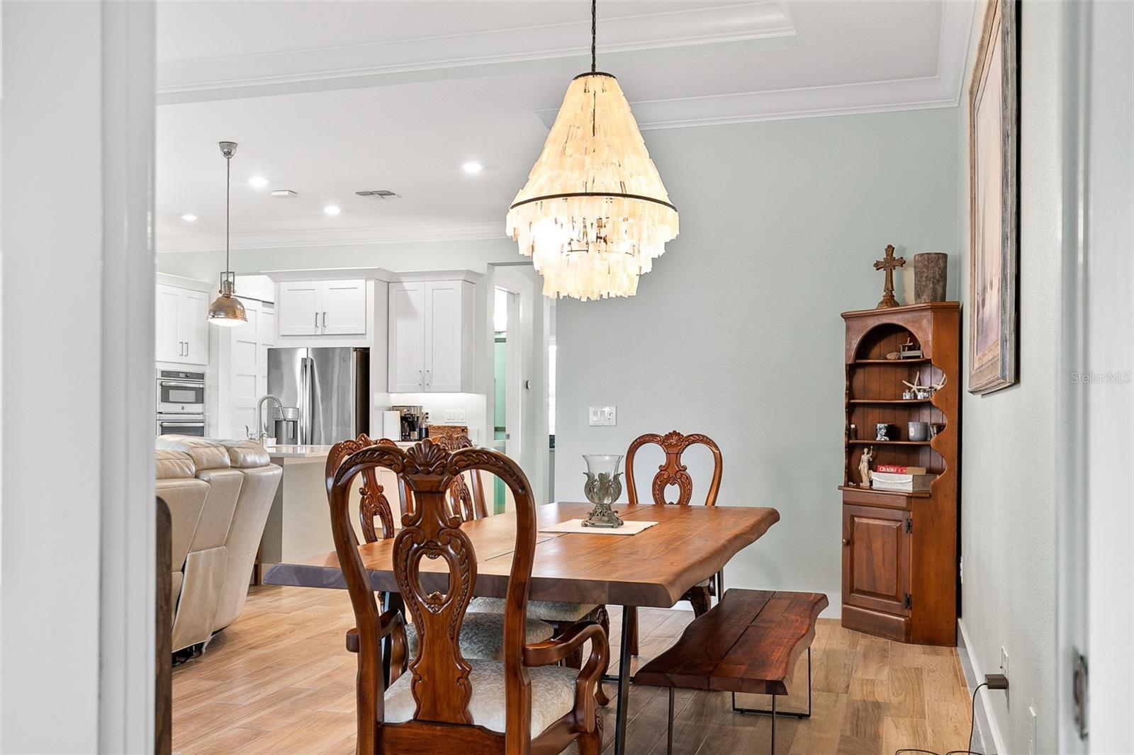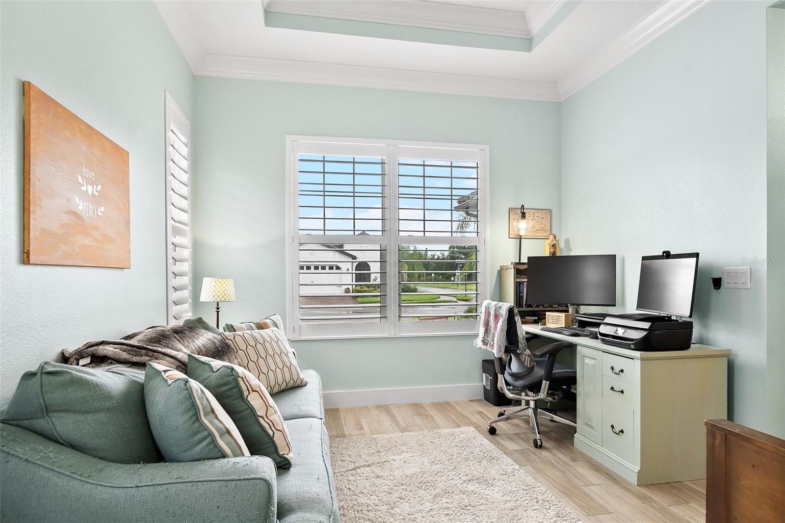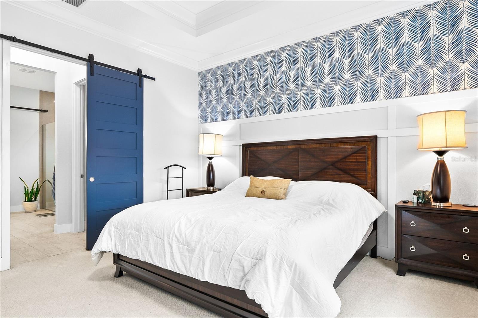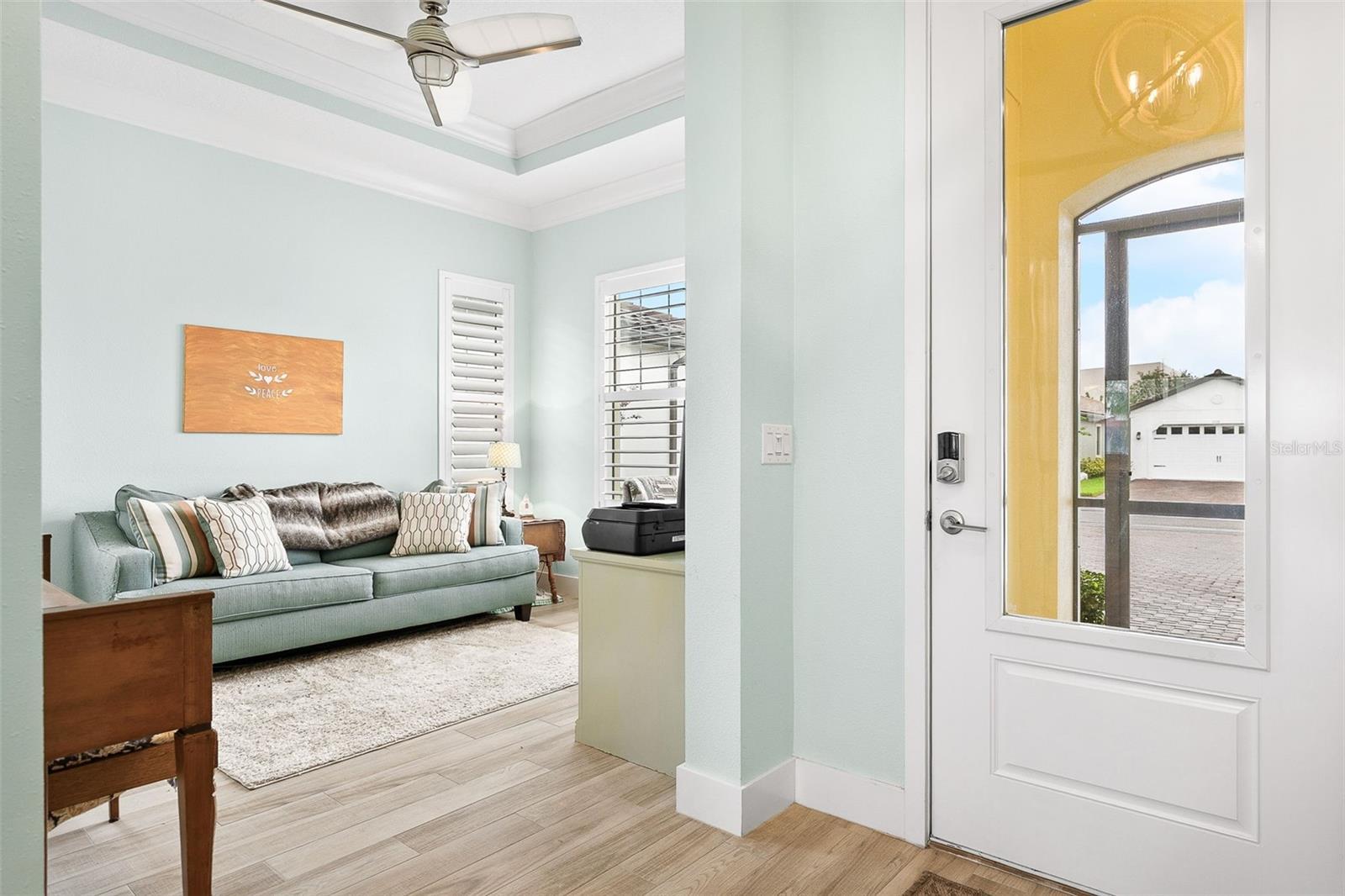 - Ceiling Fans(s), Crown Molding, Eat-in Kitchen, High Ceilings, Open Floorplan, Primary Bedroom Main Floor, Smart Home, Solid Surface Counters, Solid Wood Cabinets, Thermostat, Tray Ceiling(s), Walk-In Closet(s), Window Treatments