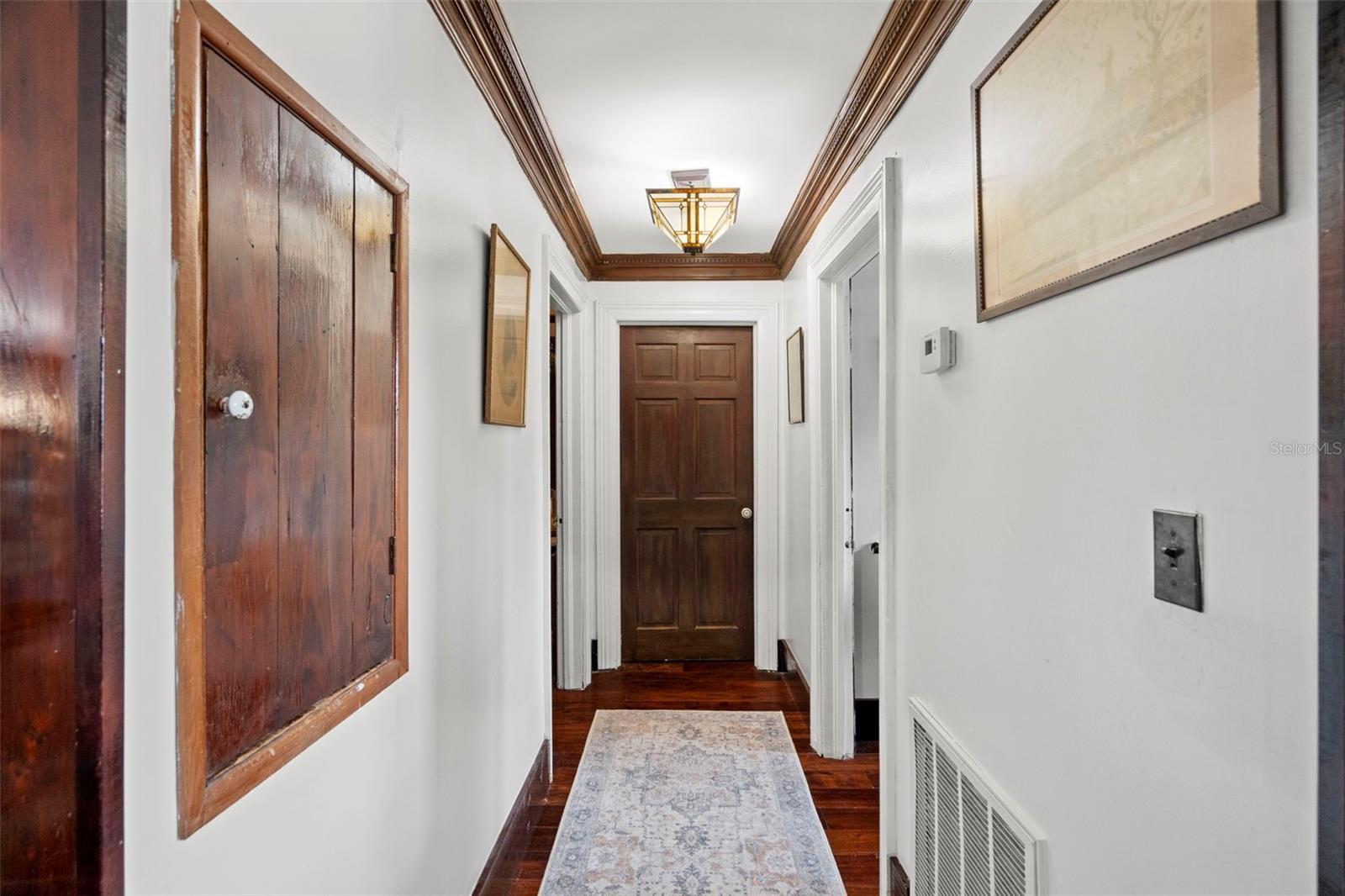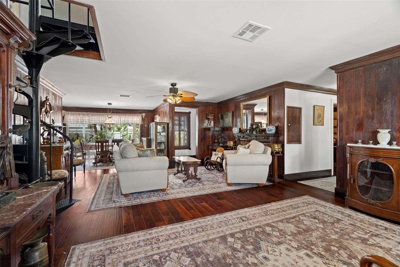 - Ceiling Fans(s), Crown Molding, Dry Bar, Living Room/Dining Room Combo, PrimaryBedroom Upstairs, Solid Surface Counters, Solid Wood Cabinets, Split Bedroom, Walk-In Closet(s)