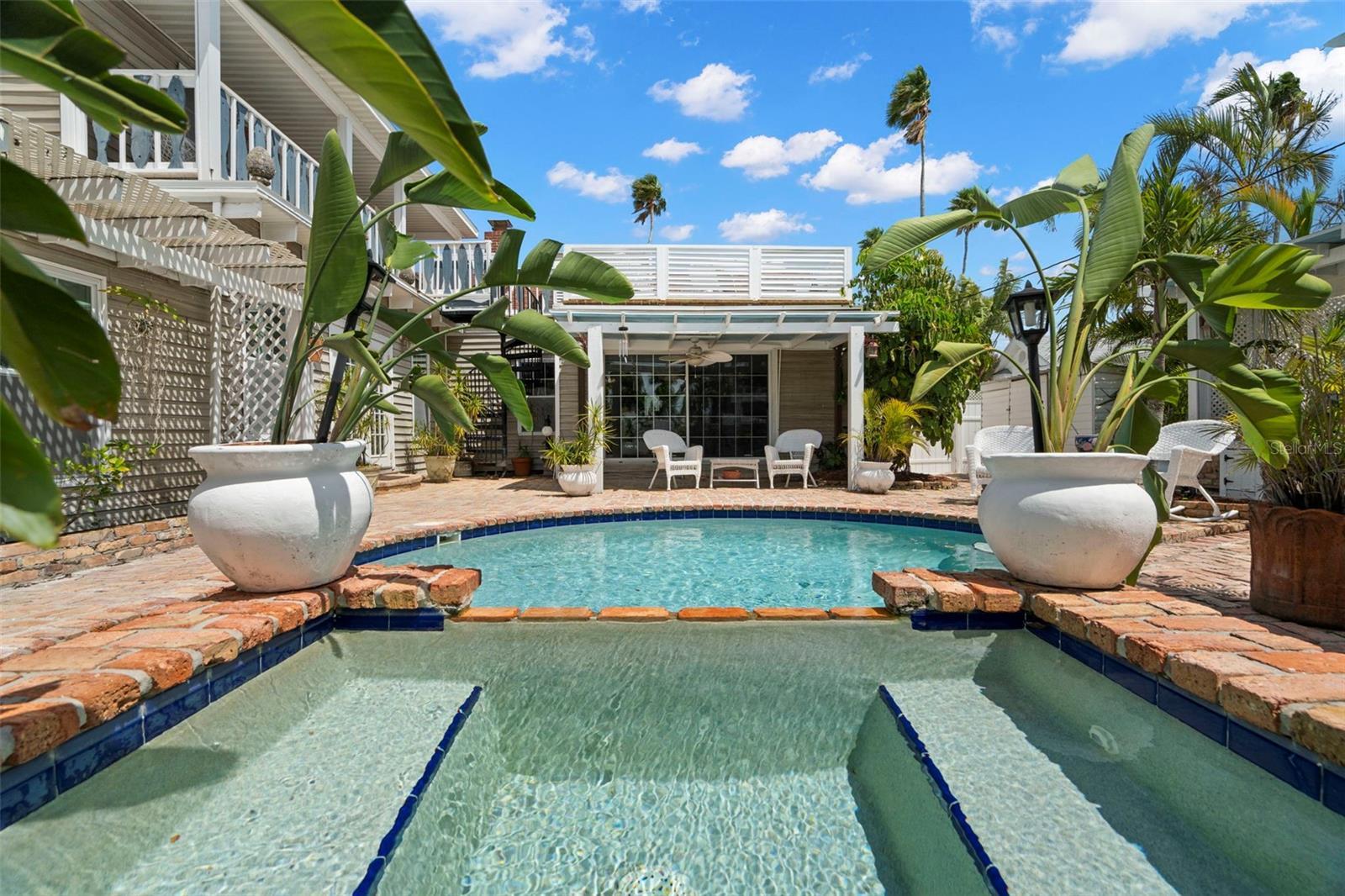 Imagine living at a beach that consistently is rated #1 or #2 in America! This Key West Style home has the original North Clearwater Beach feel in that the owner preserved the historical value while updating it. The home sits on a rare lot across from a park like setting separating Bay Esplanade and Narcissus, giving the home an open space and a view to the Intercoastal waterway. While it is nestled in a quiet residential neighborhood it is still close enough to walk to the beach or the area shops, restaurants, and marina. Built around the large Inground Pool, the entire property provides an entertainers dream escape. In total privacy you will enjoy the Barbeque and covered sitting areas. Outdoor life is abundant as you enjoy this beach home. This 5 Bedroom 4 bath home provides plenty of space for friends and family. It is freshly painted. The Dining Room is open to the Living Room and the Family Room is large and combines a built-in bar perfect for entertainment. Floors were recently updated using a lovely Venezuelan Hard Wood (the Sub Floor was also replaced). The upstairs presents a complete owners suite with its own sitting area and balcony overlooking the pool. Access is via an indoor and an outdoor stairwell. While outdoors you will enjoy sitting on the front porch (built with Trek-wood) and meeting neighbors. The Pool deck is Original Old Chicago brick. This fully landscaped property is easy maintenance so traveling away is not a concern. MATTERPORT TOUR: https://www.homes.com/property/806-narcissus-ave-clearwater-beach-fl/52yfz4qr67kgr/?tab=1&dk=wkj40wbpsyqqd FLOOR PLAN AVAILABLE CALL FOR YOUR PRIVATE SHOWING TODAY! NEW: Air Conditioners (2 of them), Water Heater, Stove, Pool Pump and Pool Heater You don’t want to wait to see this truly unique home!