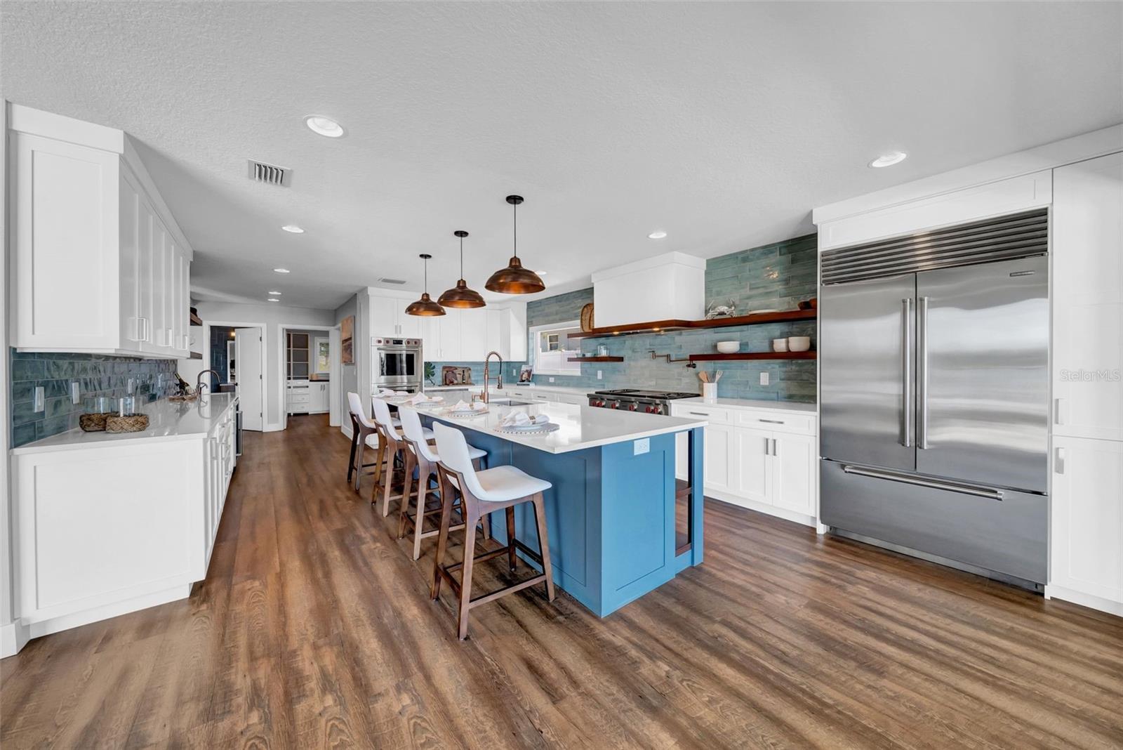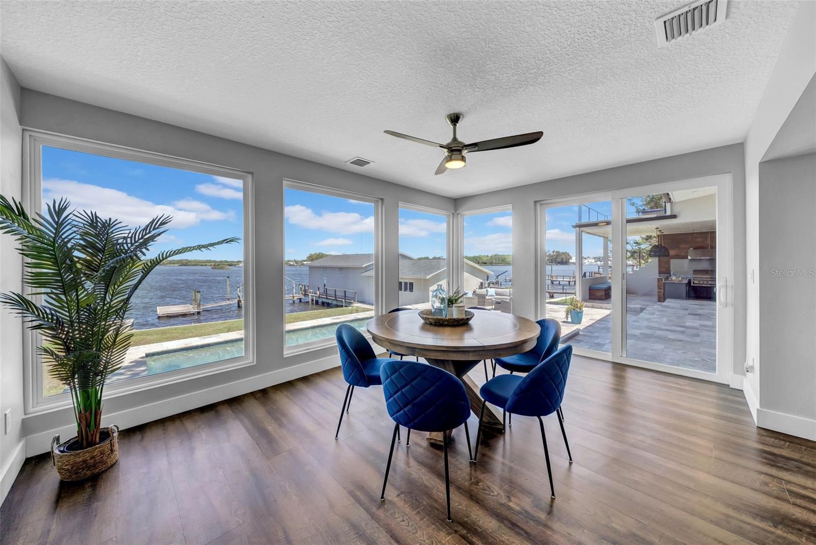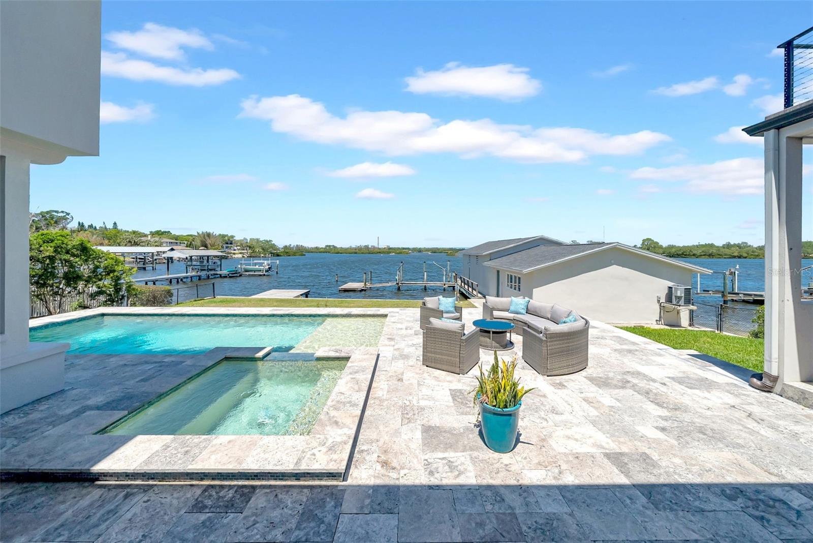 One or more photo(s) has been virtually staged. Riverside elegance meets Gulf-coast adventure! Set on the sparkling Anclote River with unobstructed, bridge-free passage to the Gulf, this re-imagined Tarpon Springs estate delivers more than 5,000 sqft of resort-style living and entertaining. Inside highlights: Magazine-worthy great room – soaring ceilings and a 10-ft wall of impact sliders frame panoramic water views. 2019 whole-home renovation – added a 1,122 sqft primary wing, opened the floor plan, upgraded to a new roof and full-house impact glass. Chef’s dream kitchen – quartz counters, oversized island, Wolf gas range & double ovens, Sub-Zero refrigeration, pot-filler, wet bar, walk-in pantry and sunny breakfast nook. Primary retreat – a private wing with balcony, wet bar, custom dressing room with granite island, Sunlight M-Pulse infrared sauna, and a spa bath (dual vanities, free-standing tub, multi-head rain shower). Family wing – three generous bedrooms: two share a stylish bath; one enjoys its own ensuite and pool/river views. Wide-plank luxury vinyl flows throughout for worry-free style. Extras that matter: Oversized tandem garage with Tesla charger. Driveway parking (with RV hook-up) plus room for a boat trailer. Newer roof, impact windows/doors, and whole-home mechanical upgrades. Outdoor oasis: 2019 outdoor kitchen: granite bar, Twin Eagles grill, beverage coolers, sink, seating for a crowd. Heated salt-water pool with sunshelf and spa overlooking the river. Two docks: a fixed fishing/launch dock and a floating dock for effortless boarding. Covered boathouse with lift plus a permitted in-law suite (kitchen, living, bedroom, bath) freshly remediated and ready for your vision—guest cottage, tiki bar, or river lounge. Peace of mind: The main residence stood high and dry through the 2024 storms; only the boathouse required remediation. Why you’ll love it: Waterfront grandeur, Gulf access in minutes, room for every toy, and a layout built for memorable gatherings—all on an oversized riverfront parcel. Schedule your private tour today and start living the Anclote River dream!