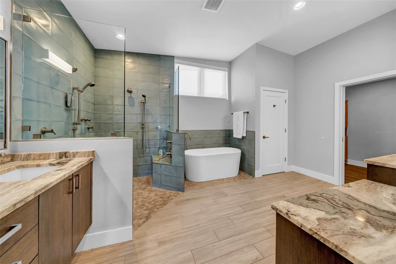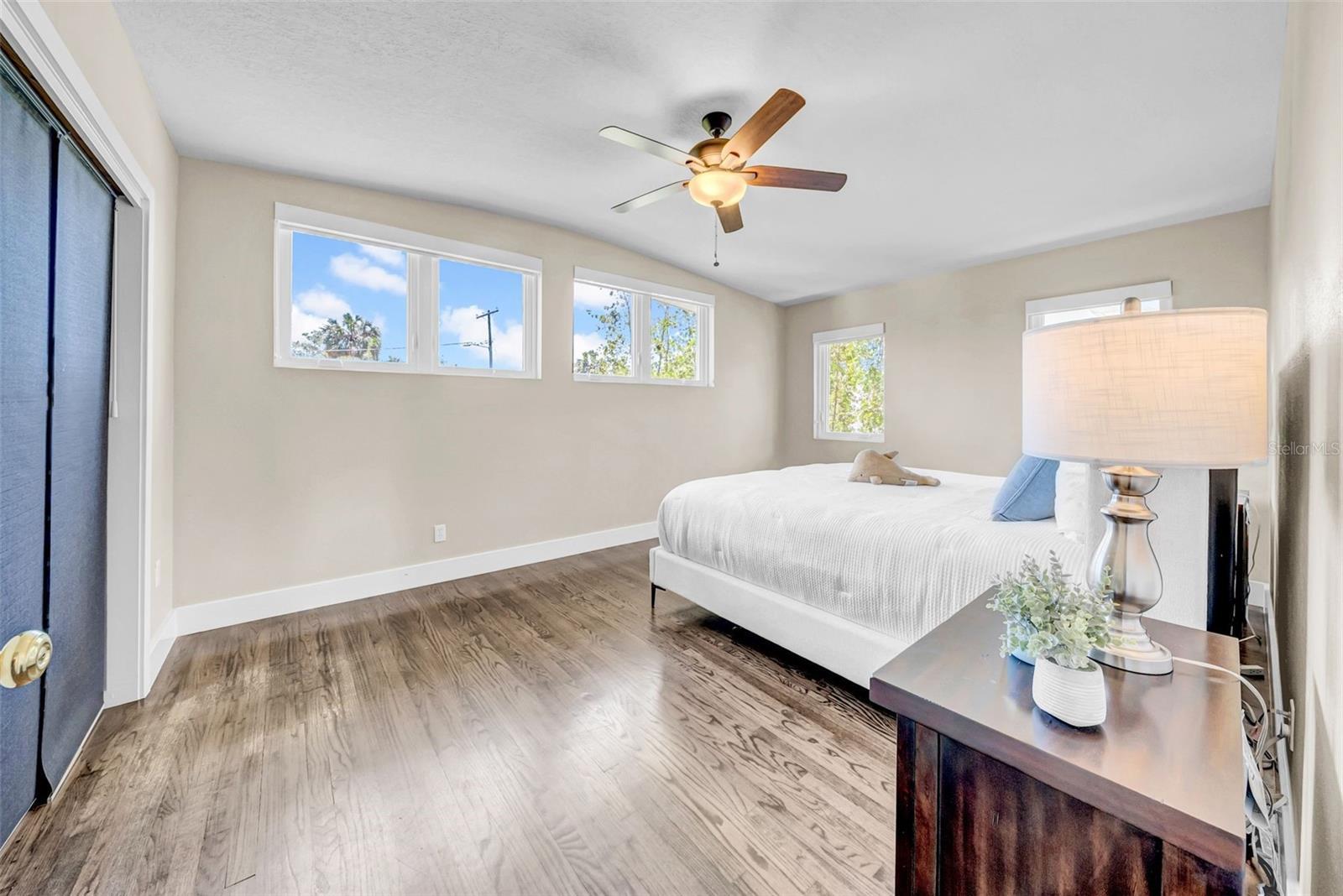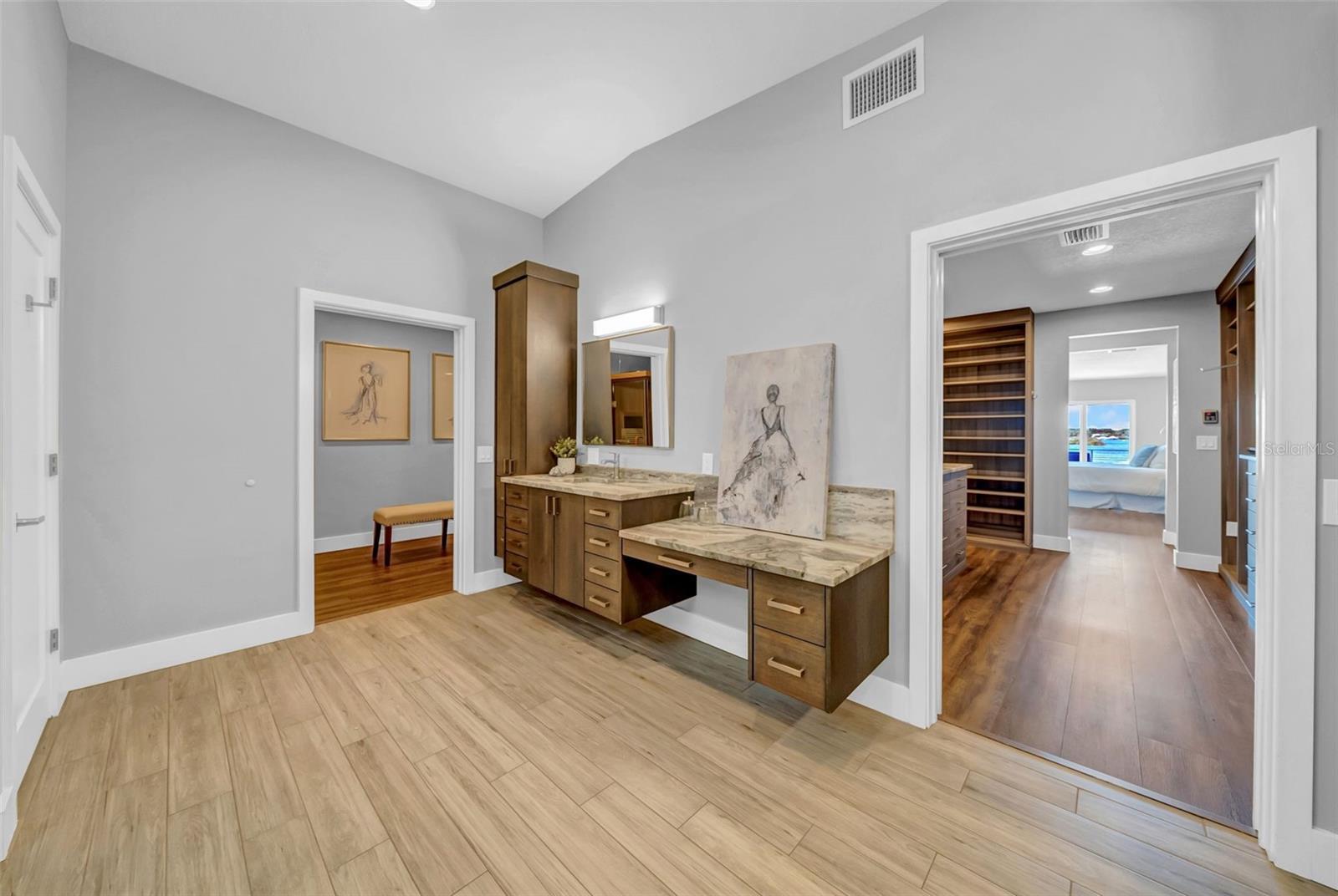 - Built-in Features, Ceiling Fans(s), High Ceilings, Open Floorplan, Pest Guard System, PrimaryBedroom Upstairs, Sauna, Solid Surface Counters, Solid Wood Cabinets, Split Bedroom, Stone Counters, Thermostat, Vaulted Ceiling(s), Walk-In Closet(s), Wet Bar, Window Treatments