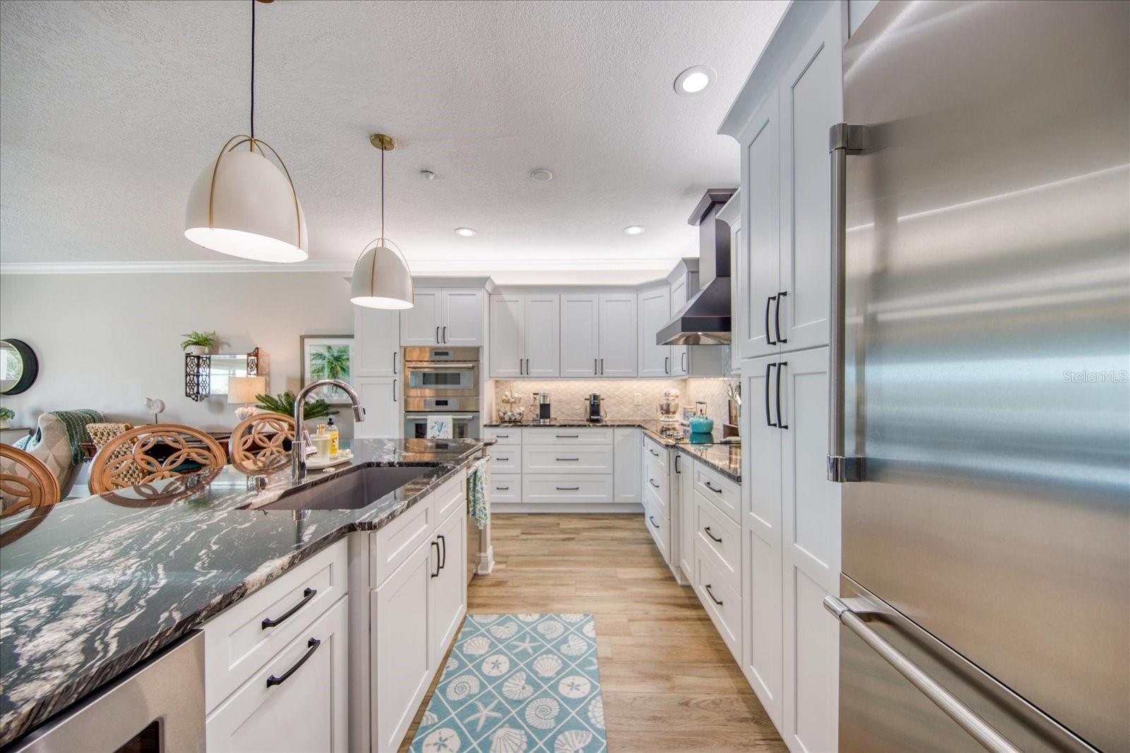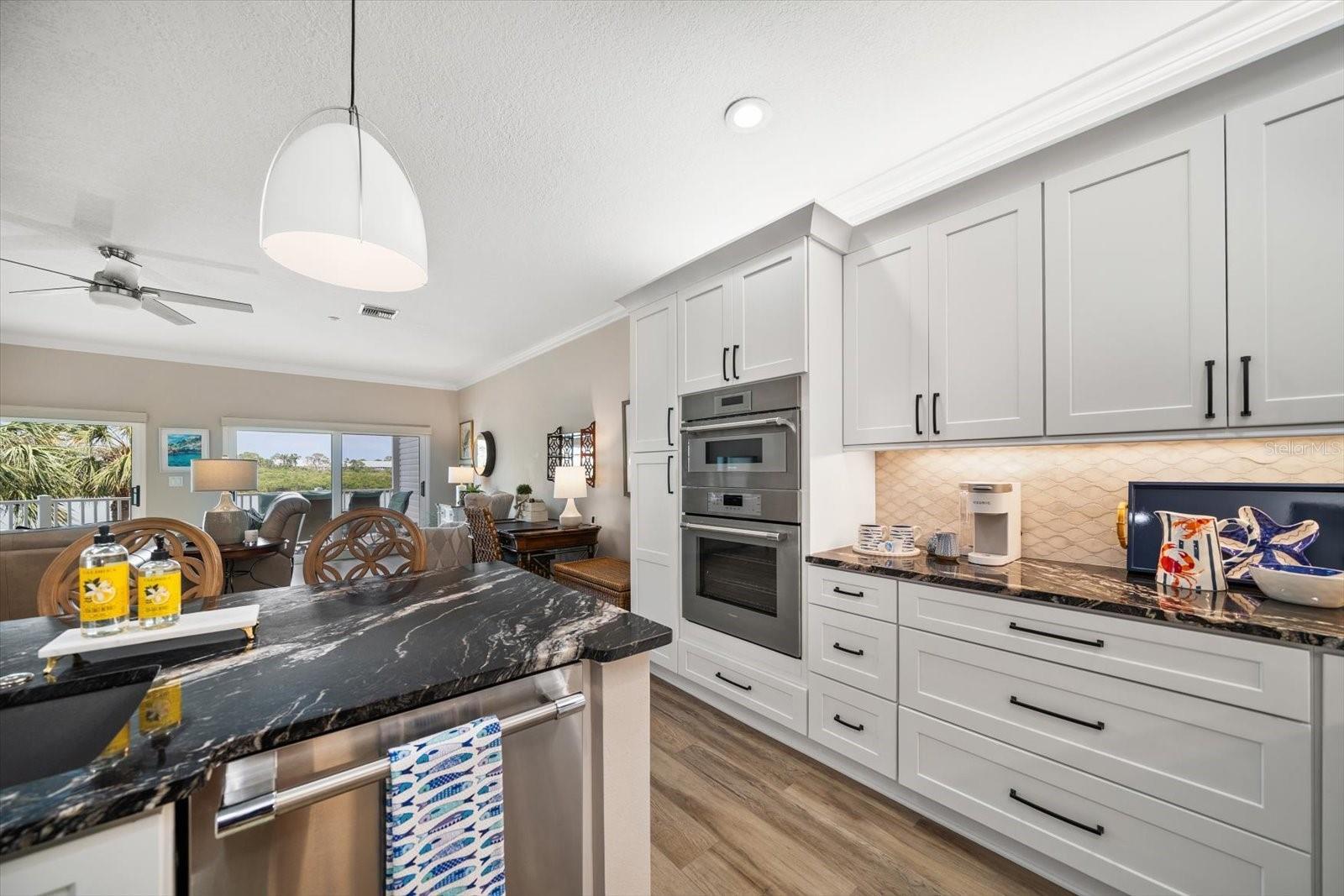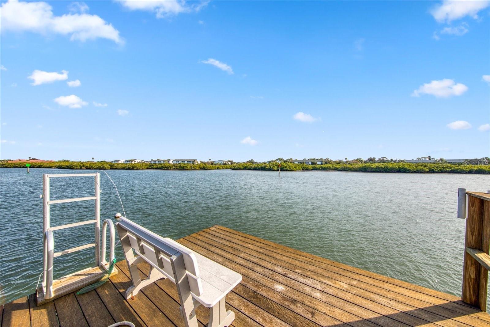 Welcome to your coastal paradise! Step into luxury living with this fully furnished 2-bedroom, 2- bath waterfront condo that captures the essence of coastal elegance. With direct east-facing views of the Intracoastal, this home immerses you in breathtaking water vistas from the living room, kitchen, and master bedroom. Step inside, and you'll find a meticulously remodeled haven completed in 2023. The open floor plan seamlessly connects the living space, showcasing a gourmet kitchen adorned with Thermador Appliances, granite countertops, a marble backsplash, and custom wood cabinets with soft closures. Picture yourself enjoying a morning coffee or evening cocktail on the oversized covered balcony, where local dolphins might make a special appearance. The master bedroom is a retreat in itself, featuring his and her walk-in closets, a double granite vanity, custom wood cabinets, and a luxurious tiled walk-in shower. Every detail, from the crown molding to the top-of-the-line finishes, exudes sophistication. Convenience meets luxury with in-unit laundry and ample storage space. Dive into the community amenities – a heated pool, two parking spaces, and a dock for fishing or kayaking. Just a short walk to local restaurants and a block away from the beach, this condo offers not just a home but a lifestyle. Imagine golf courses, pickleball courts, and public boat ramps within easy reach. Plus, seamless access to Tampa Bay airports for stress-free travel. Don't miss the chance to make this waterfront dream your reality. Welcome home to a life of unparalleled luxury and coastal bliss!