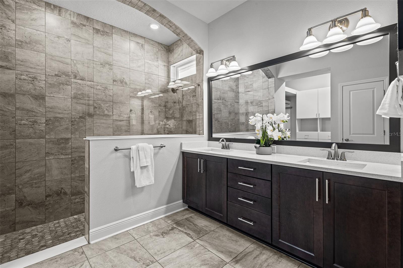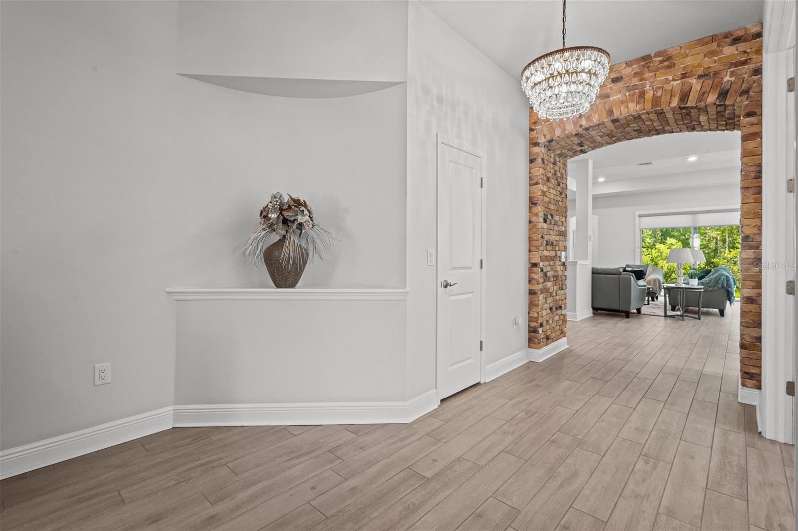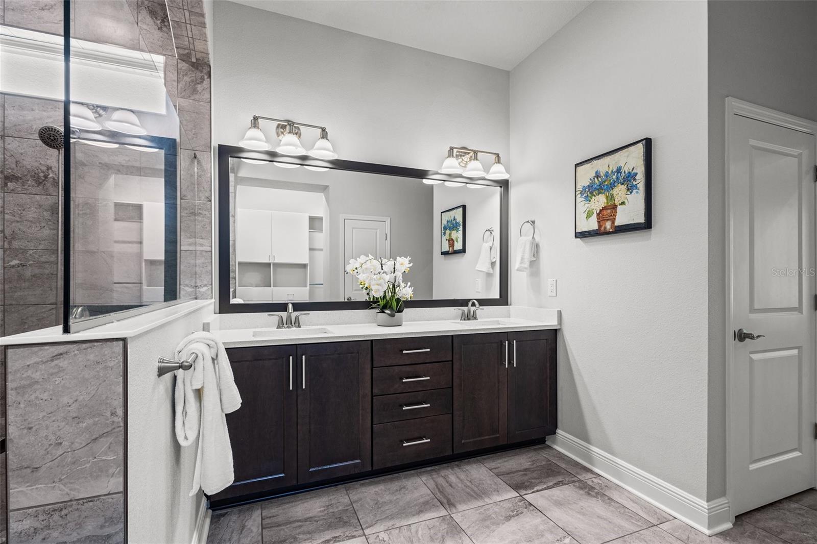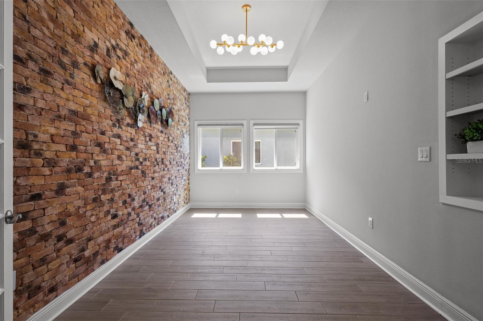 Under contract-accepting backup offers. One or more photo(s) has been virtually staged. Privacy and layout drive the experience in this single-story home set on a conservation lot with no rear neighbors in Asturia. Nearly 2,900 sq ft is arranged to keep daily living open and connected while maintaining separation for work, guests, and quiet spaces. Southwest-facing rear exposure brings consistent natural light and frames wooded conservation views through large glass sliders. Main living areas feature 12-foot ceilings and wide-plank wood-look tile. The kitchen functions as the center of the home with 42-inch cabinetry, quartz countertops, tile backsplash, stainless steel appliances, a gas range, and an oversized island suited for everyday use and entertaining. A built-in workspace near the kitchen provides a defined area for remote work or household organization. The great room connects directly to the dining area and a bright sitting nook overlooking the backyard and conservation. A dedicated home office at the front of the home includes French doors, a tray ceiling, brick accent wall, and custom lighting, offering flexibility for work or creative use. The primary suite is privately located at the rear and includes a spa-style bath with dual sinks, walk-in shower, and custom closet system. A guest suite with a full bath sits on a separate wing, while two additional bedrooms share a hall bath. A half bath and a spacious laundry room with built-in storage complete the interior layout. Outdoor living includes a covered veranda and fenced yard backing to protected conservation, providing privacy and sunset views. The 3-car tandem garage offers space for vehicles, storage, or workshop use and includes an EV charging outlet. Asturia community amenities include a clubhouse, resort-style pool, fitness center, dog park, playground, and miles of trails. Located approx. 1 mile from the Suncoast Trail and Suncoast Parkway access. Convenient to Publix Super Market at Starkey Ranch, Tampa International Airport, and MacDill Air Force Base.