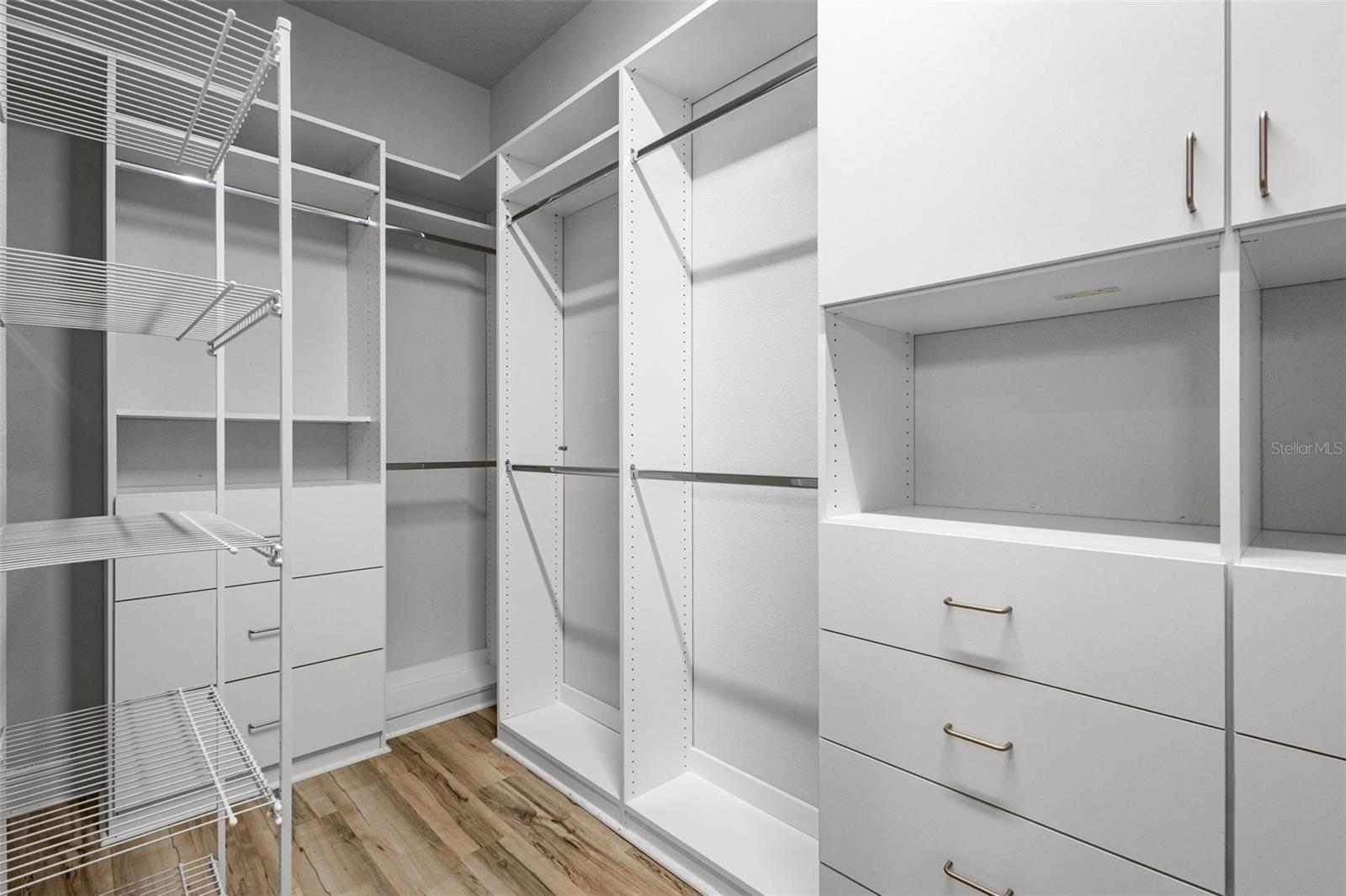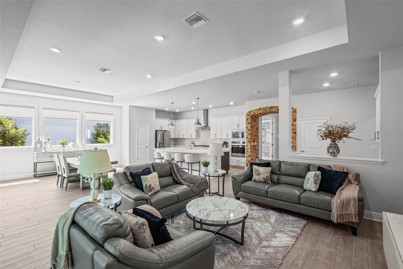 - Ceiling Fans(s), Crown Molding, Eat-in Kitchen, High Ceilings, Kitchen/Family Room Combo, Living Room/Dining Room Combo, Open Floorplan, Primary Bedroom Main Floor, Split Bedroom, Stone Counters, Thermostat, Tray Ceiling(s), Walk-In Closet(s), Window Treatments