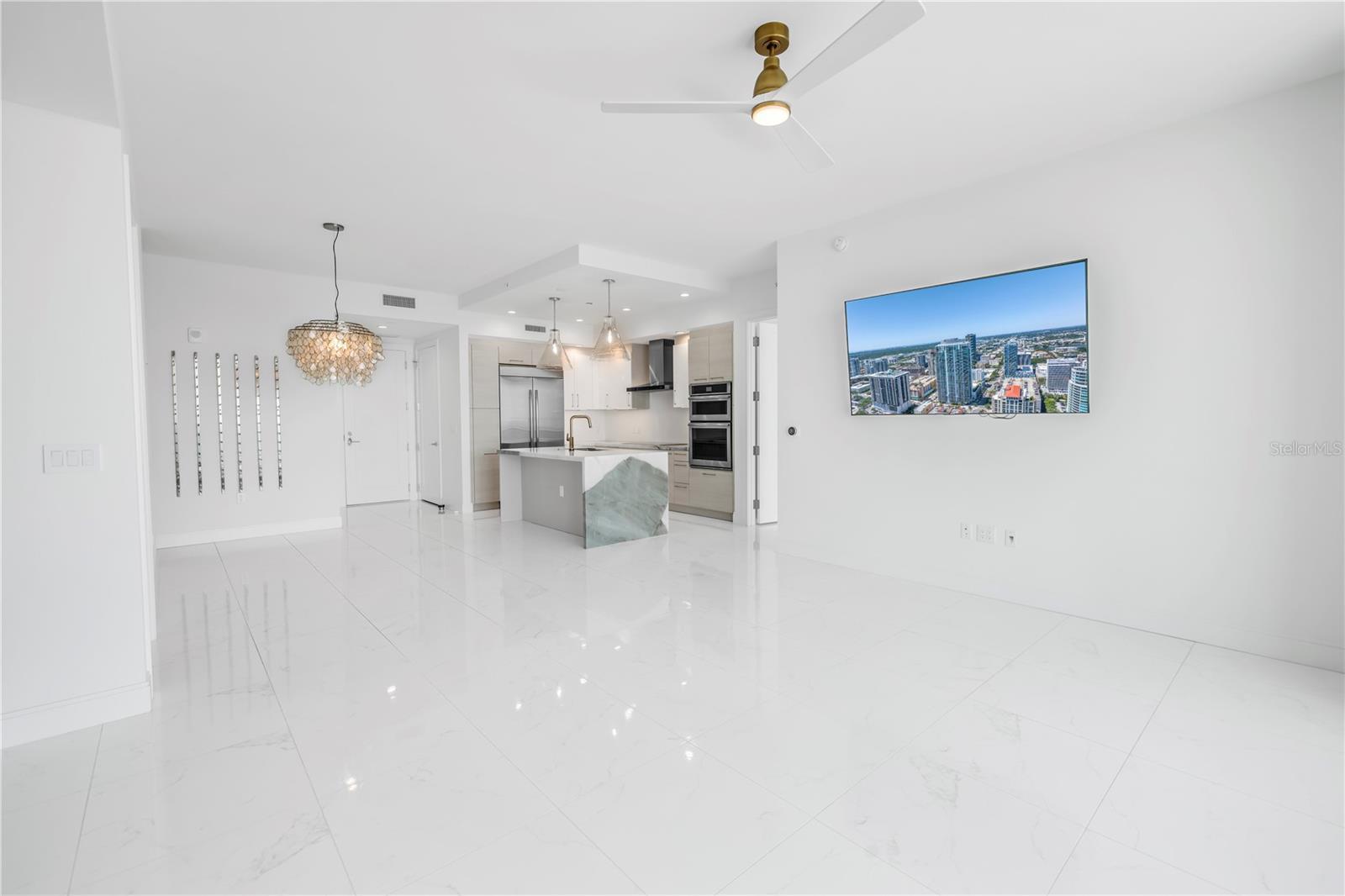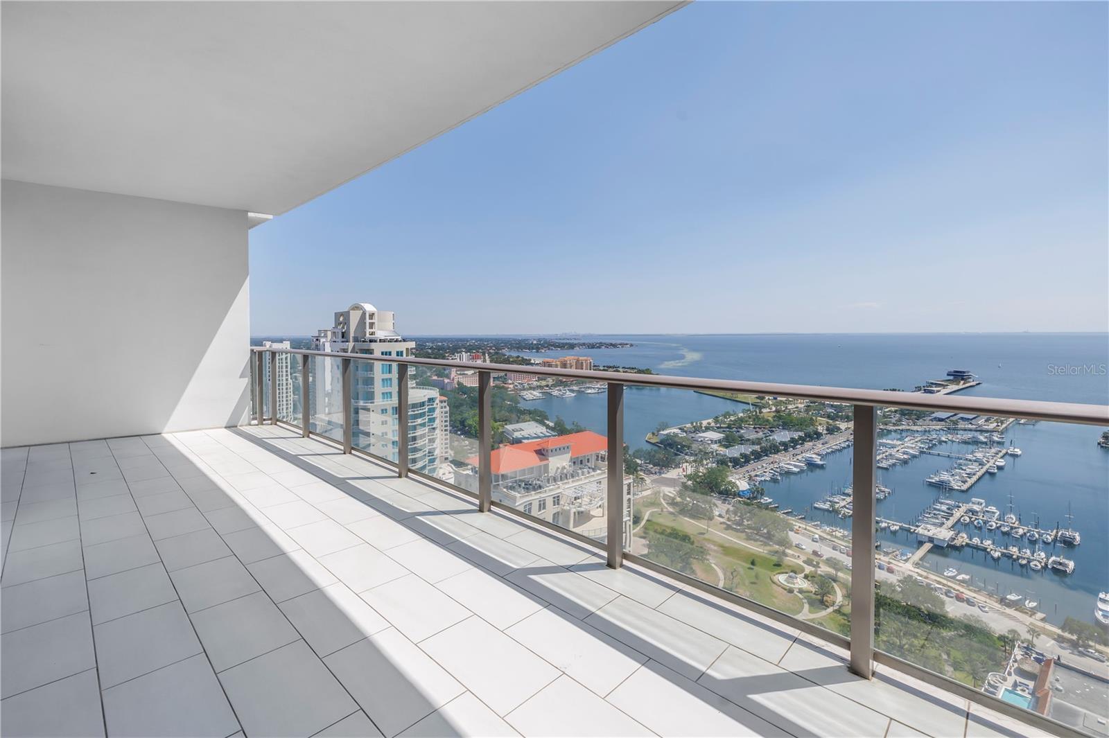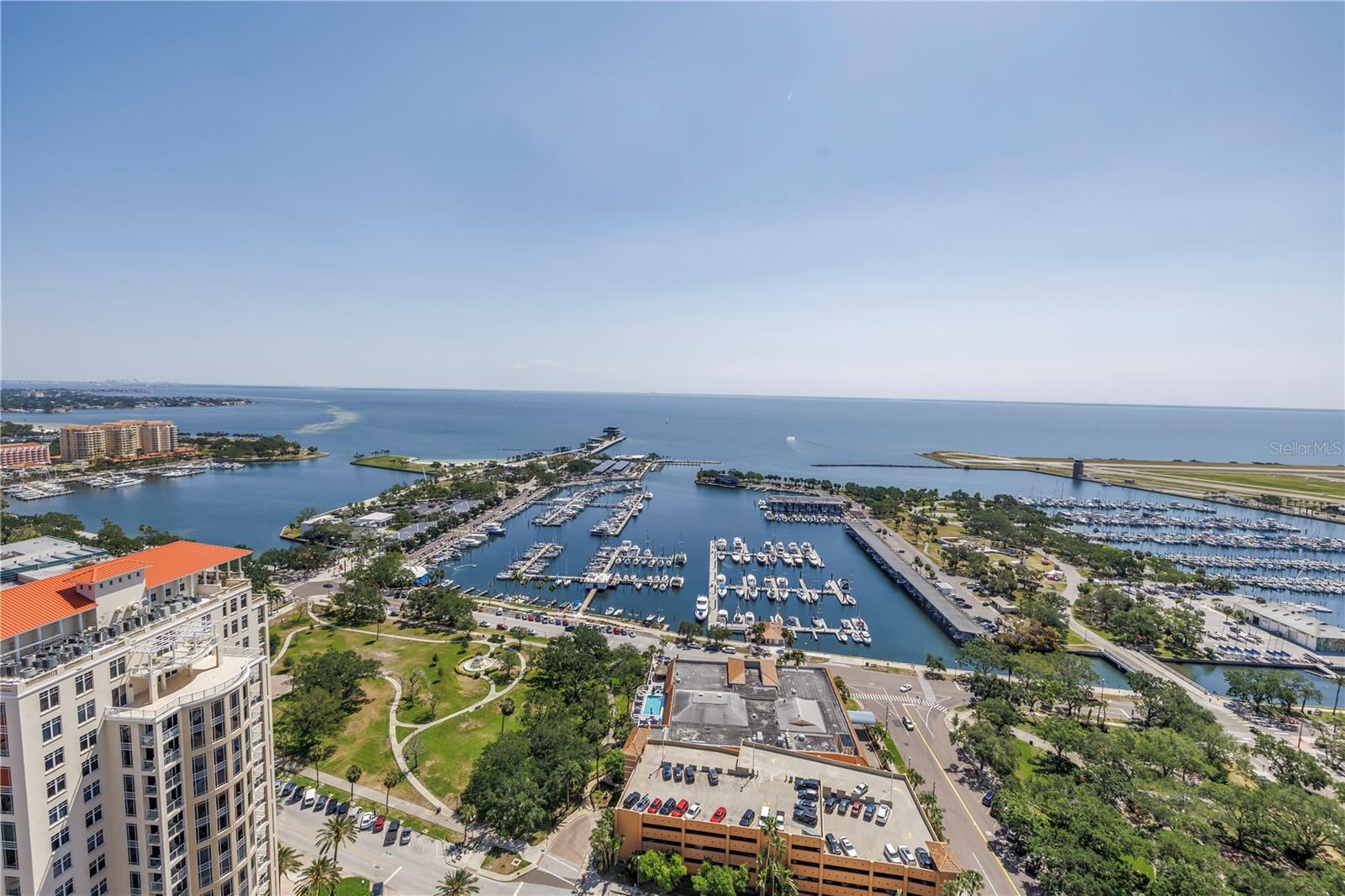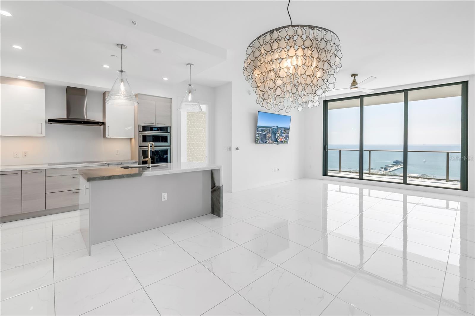 Step into a world of luxury the moment you open the door to this stunning 31st-floor residence. Immediately, your eyes are drawn across the spacious great room to the floor-to-ceiling sliding glass doors, framing sweeping panoramic views of Tampa Bay, downtown St. Pete and Albert Whitted Airport. This unit truly boasts one of the best views of any unit in Downtown St. Petersburg. Designed for both relaxation and entertaining, this 2-bedroom, 2.5-bath condo features a large multipurpose den, soaring 10-foot ceilings and an open-concept layout that flows effortlessly from space to space. The chef’s kitchen is a true showpiece, complete with high-end stainless steel appliances, flat-surface cooktop with hood, double built-in ovens, an oversized center island, and ample custom cabinetry; all finished with elegant European touches and quartz countertops. Just off the dining area, tucked quietly away, you’ll find the den. Perfect for a home office or reading nook, along with its own stylish half bath. The serene primary suite offers a private sanctuary, boasting floor-to-ceiling windows with one-touch electric shades, a large walk-in closet and a luxurious ensuite bath. The split-bedroom layout ensures privacy, with the guest suite positioned on the opposite side of the residence. Guests will enjoy their own spa-inspired bathroom and access to the expansive balcony through sliding glass doors. The oversized balcony is ideal for sipping your morning coffee as the sun rises or watching sailboats drift by and planes glide into Albert Whitted. Additional upgrades include rich 24”x24” Nuvo Calacatta Gris porcelain tile throughout, quiet electric blinds, two assigned garage parking spaces with electric car charger and a climate-controlled storage unit. Resort-style living continues on the impressive 7th-floor amenity deck. Enjoy a 75-foot lap pool, private cabanas, hot tub, multiple grilling areas, and an outdoor kitchen. Stay active in the 5,000 sq ft state-of-the-art fitness center or unwind in the club room overlooking the bay. Multiple lounges, co-working spaces, a game room, and concierge service complete the elevated lifestyle at ONE. Located in the heart of downtown St. Pete with incredible walkability, you’re just steps away from fine dining, boutique shopping, museums, galleries, theaters, the Pier, and endless entertainment. This is more than a residence, it's a lifestyle. Welcome home to ONE St. Petersburg!