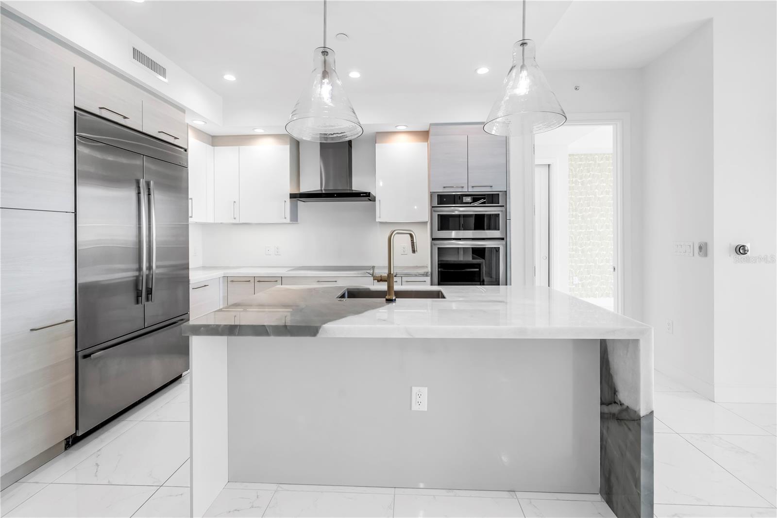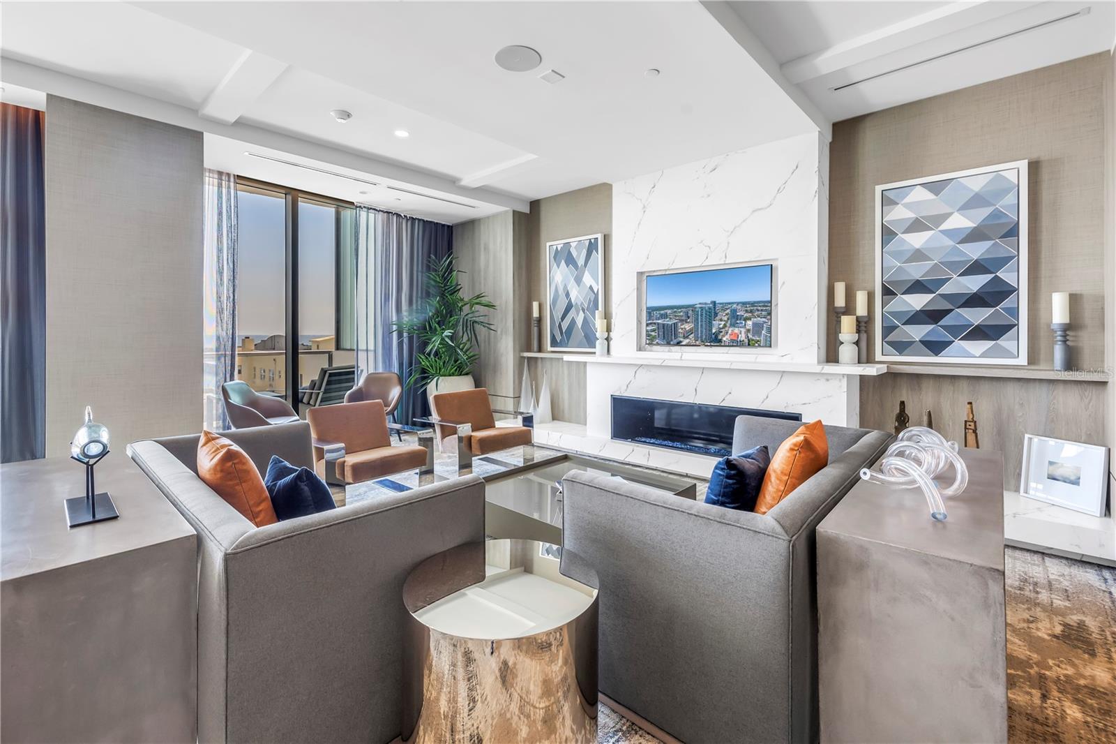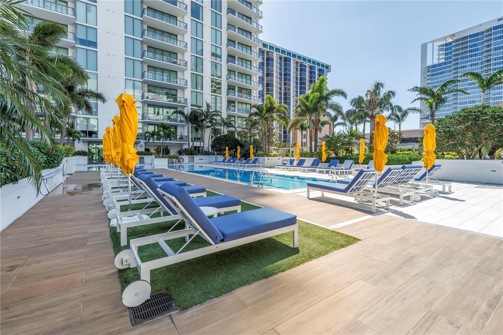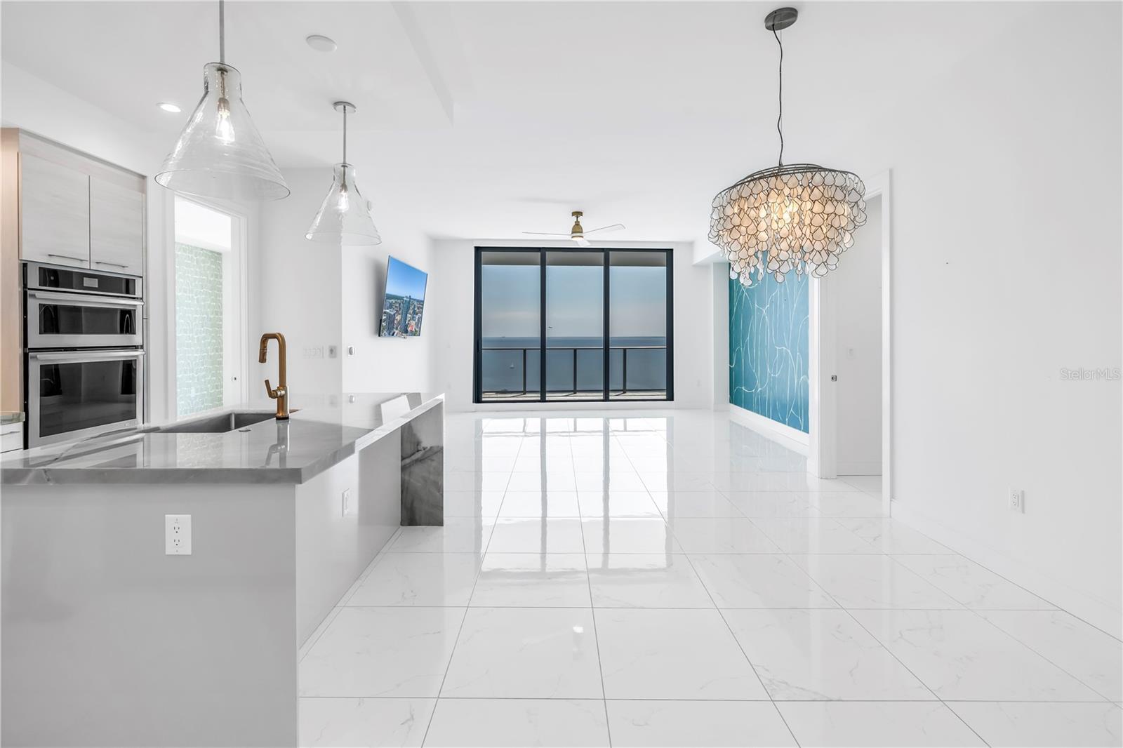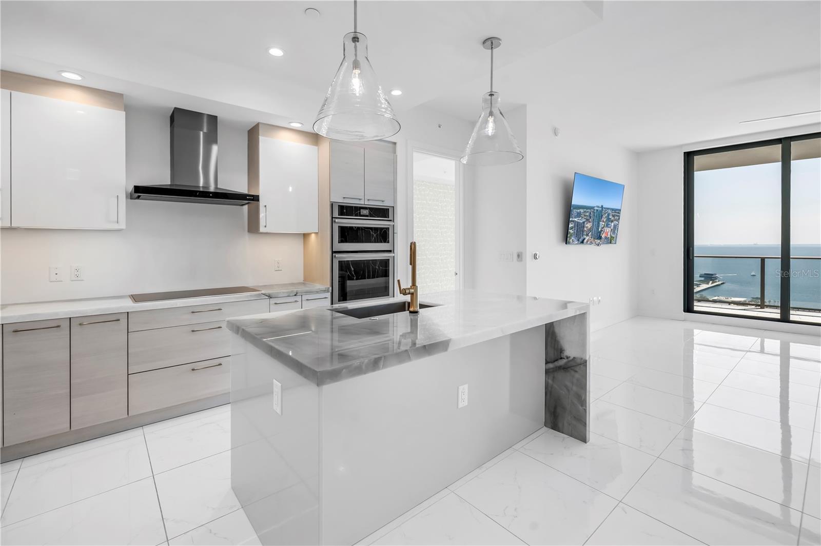 Step into a world of luxury the moment you open the door to this stunning 31st-floor residence. Immediately, your eyes are drawn across the spacious great room to the floor-to-ceiling sliding glass doors, framing sweeping panoramic views of Tampa Bay, downtown St. Pete and Albert Whitted Airport. This unit truly boasts one of the best views of any unit in Downtown St. Petersburg. Designed for both relaxation and entertaining, this 2-bedroom, 2.5-bath condo features a large multipurpose den, soaring 10-foot ceilings and an open-concept layout that flows effortlessly from space to space. The chef’s kitchen is a true showpiece, complete with high-end stainless steel appliances, flat-surface cooktop with hood, double built-in ovens, an oversized center island, and ample custom cabinetry; all finished with elegant European touches and quartz countertops. Just off the dining area, tucked quietly away, you’ll find the den. Perfect for a home office or reading nook, along with its own stylish half bath. The serene primary suite offers a private sanctuary, boasting floor-to-ceiling windows with one-touch electric shades, a large walk-in closet and a luxurious ensuite bath. The split-bedroom layout ensures privacy, with the guest suite positioned on the opposite side of the residence. Guests will enjoy their own spa-inspired bathroom and access to the expansive balcony through sliding glass doors. The oversized balcony is ideal for sipping your morning coffee as the sun rises or watching sailboats drift by and planes glide into Albert Whitted. Additional upgrades include rich 24”x24” Nuvo Calacatta Gris porcelain tile throughout, quiet electric blinds, two assigned garage parking spaces with electric car charger and a climate-controlled storage unit. Resort-style living continues on the impressive 7th-floor amenity deck. Enjoy a 75-foot lap pool, private cabanas, hot tub, multiple grilling areas, and an outdoor kitchen. Stay active in the 5,000 sq ft state-of-the-art fitness center or unwind in the club room overlooking the bay. Multiple lounges, co-working spaces, a game room, and concierge service complete the elevated lifestyle at ONE. Located in the heart of downtown St. Pete with incredible walkability, you’re just steps away from fine dining, boutique shopping, museums, galleries, theaters, the Pier, and endless entertainment. This is more than a residence, it's a lifestyle. Welcome home to ONE St. Petersburg!