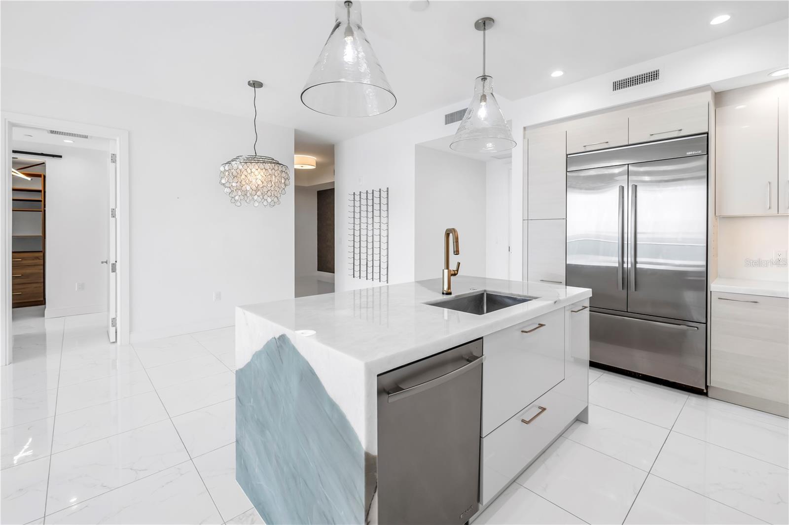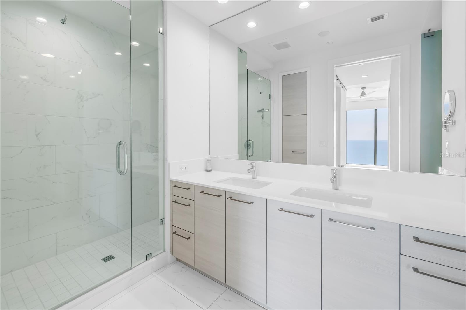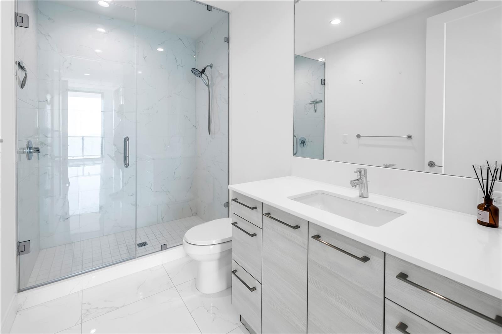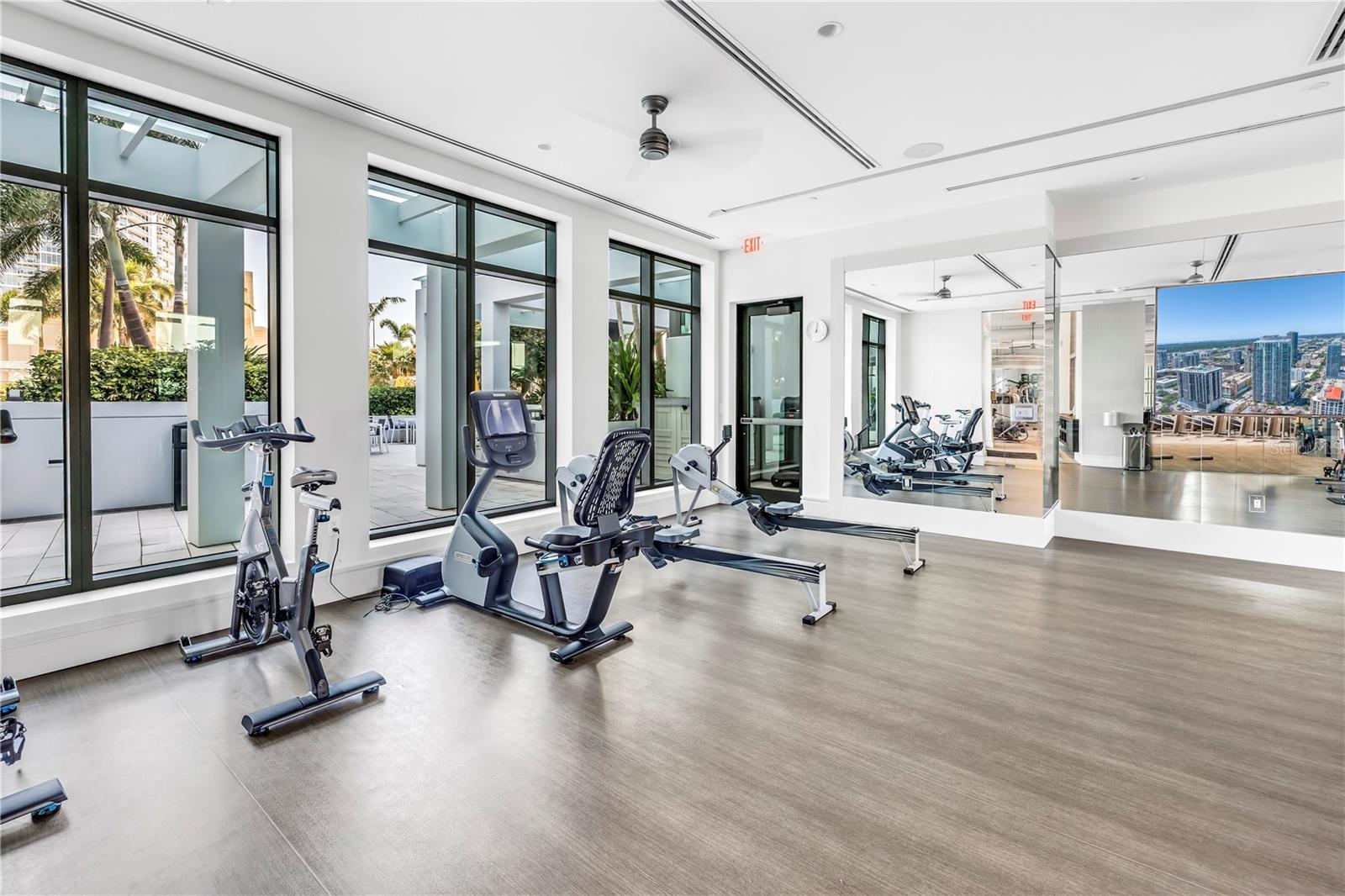 Step into a world of luxury the moment you open the door to this stunning 31st-floor residence. Immediately, your eyes are drawn across the spacious great room to the floor-to-ceiling sliding glass doors, framing sweeping panoramic views of Tampa Bay, downtown St. Pete and Albert Whitted Airport. This unit truly boasts one of the best views of any unit in Downtown St. Petersburg. Designed for both relaxation and entertaining, this 2-bedroom, 2.5-bath condo features a large multipurpose den, soaring 10-foot ceilings and an open-concept layout that flows effortlessly from space to space. The chef’s kitchen is a true showpiece, complete with high-end stainless steel appliances, flat-surface cooktop with hood, double built-in ovens, an oversized center island, and ample custom cabinetry; all finished with elegant European touches and quartz countertops. Just off the dining area, tucked quietly away, you’ll find the den. Perfect for a home office or reading nook, along with its own stylish half bath. The serene primary suite offers a private sanctuary, boasting floor-to-ceiling windows with one-touch electric shades, a large walk-in closet and a luxurious ensuite bath. The split-bedroom layout ensures privacy, with the guest suite positioned on the opposite side of the residence. Guests will enjoy their own spa-inspired bathroom and access to the expansive balcony through sliding glass doors. The oversized balcony is ideal for sipping your morning coffee as the sun rises or watching sailboats drift by and planes glide into Albert Whitted. Additional upgrades include rich 24”x24” Nuvo Calacatta Gris porcelain tile throughout, quiet electric blinds, two assigned garage parking spaces with electric car charger and a climate-controlled storage unit. Resort-style living continues on the impressive 7th-floor amenity deck. Enjoy a 75-foot lap pool, private cabanas, hot tub, multiple grilling areas, and an outdoor kitchen. Stay active in the 5,000 sq ft state-of-the-art fitness center or unwind in the club room overlooking the bay. Multiple lounges, co-working spaces, a game room, and concierge service complete the elevated lifestyle at ONE. Located in the heart of downtown St. Pete with incredible walkability, you’re just steps away from fine dining, boutique shopping, museums, galleries, theaters, the Pier, and endless entertainment. This is more than a residence, it's a lifestyle. Welcome home to ONE St. Petersburg!