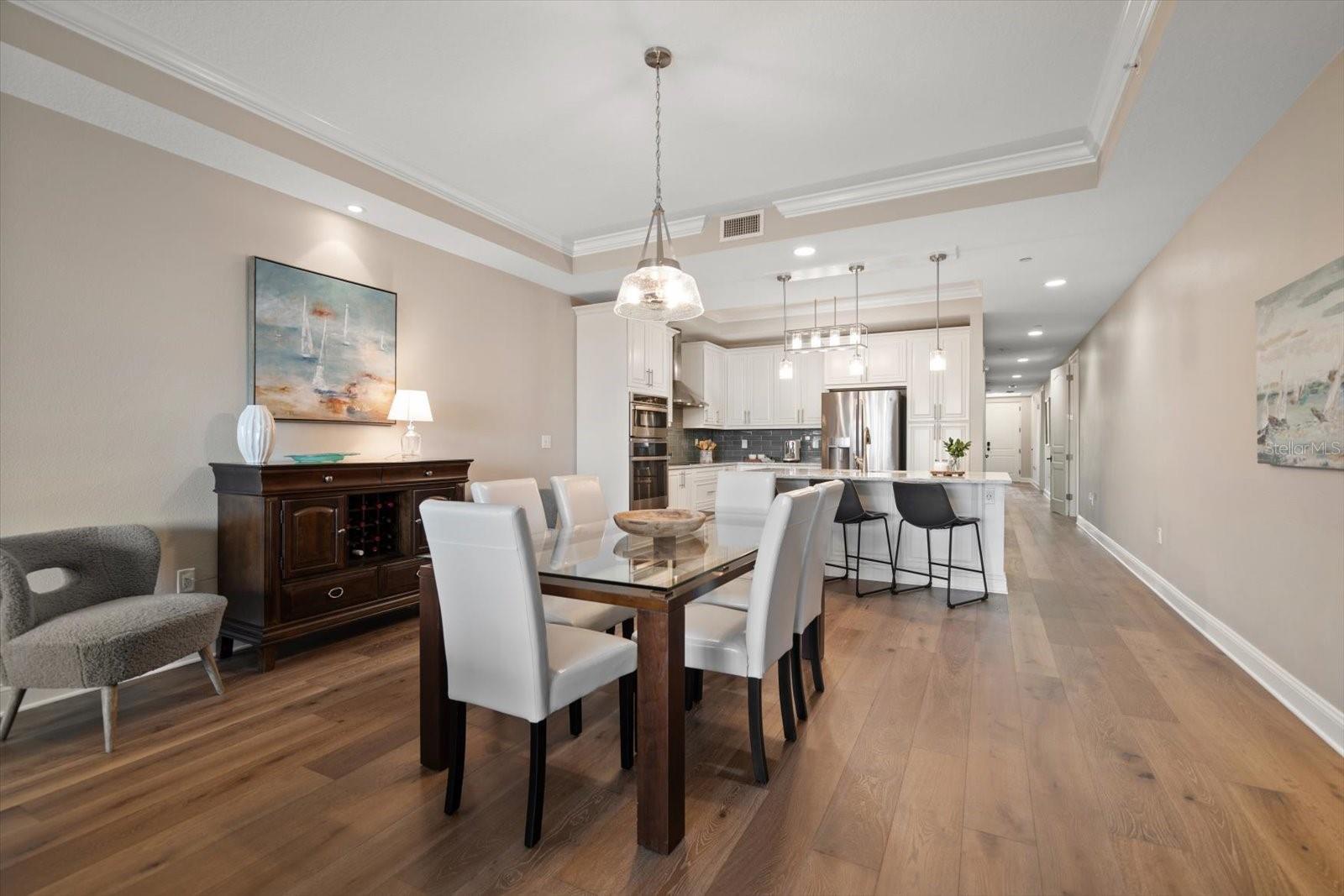 - Crown Molding, Eat-in Kitchen, High Ceilings, Kitchen/Family Room Combo, Open Floorplan, Split Bedroom, Walk-In Closet(s), Window Treatments