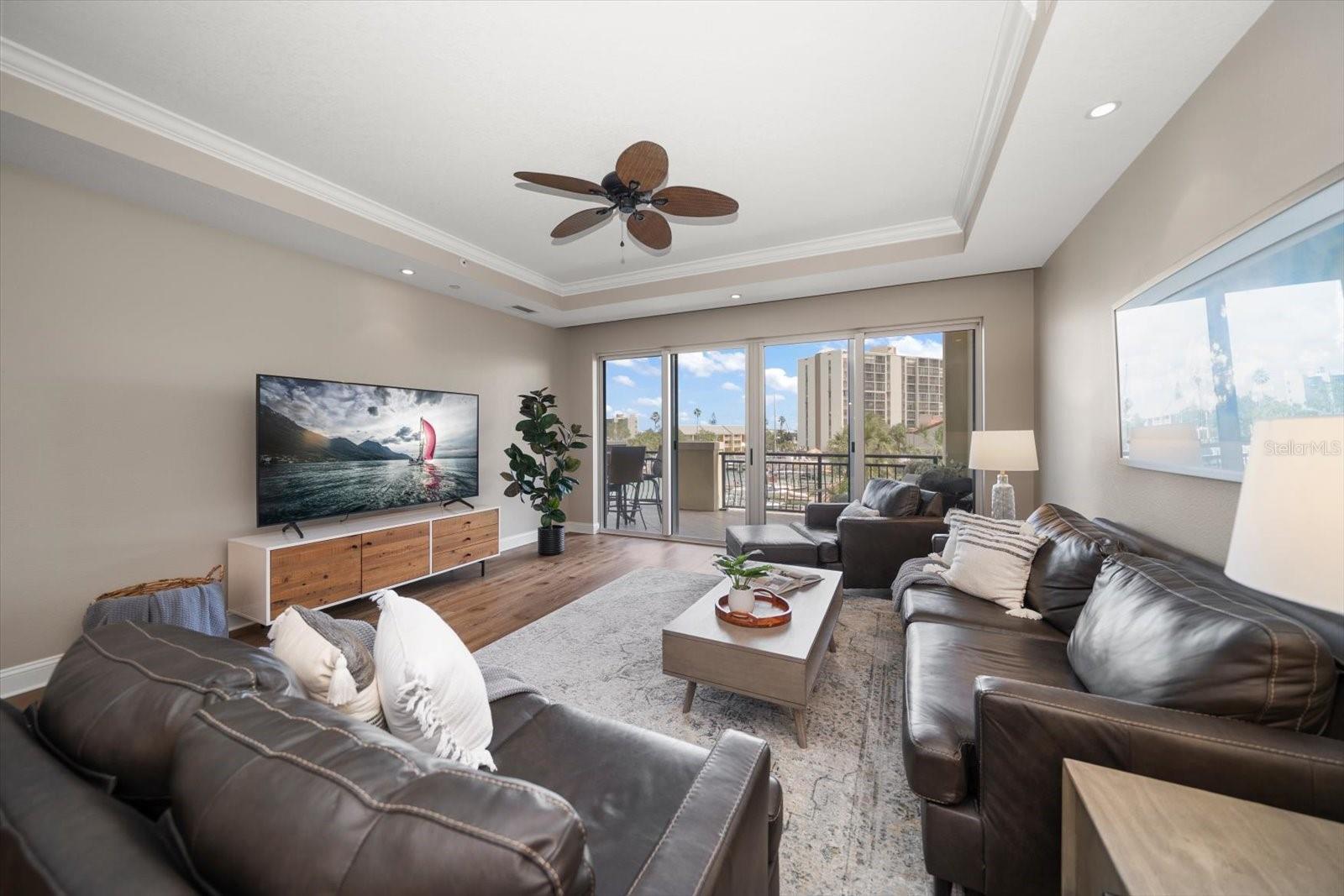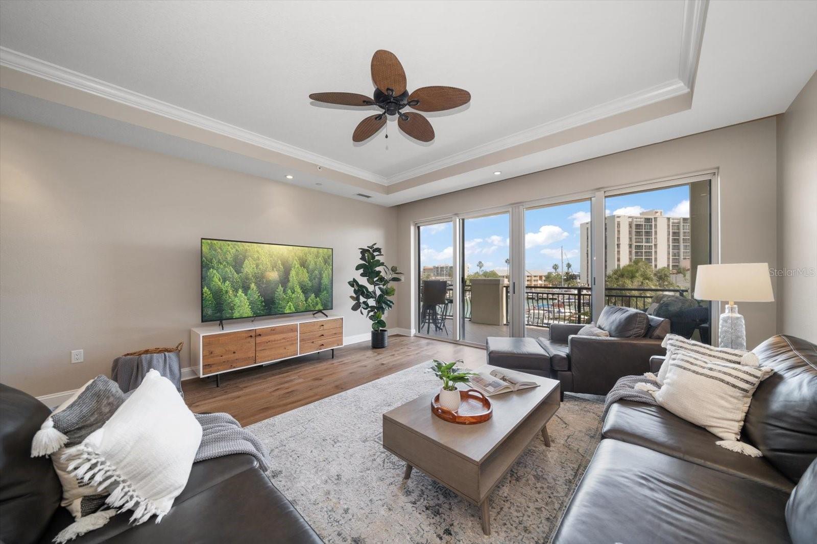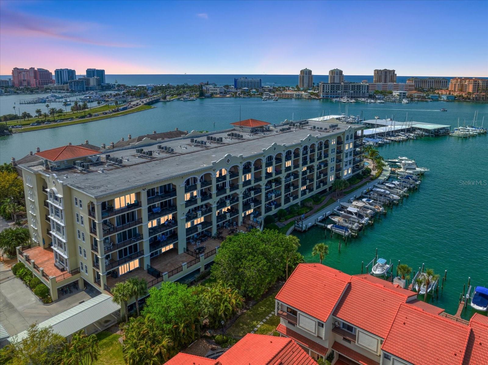 Experience the pinnacle of coastal luxury at The Residences at Windward Passage. Including one of the residence’s highly sought-after boat slips, this elegant retreat offers breathtaking views of the intracoastal waterway, soaring 10-foot ceilings, hurricane-rated windows and sliders, and a neutral palette enriched by thoughtful designer touches. While looking at the iconic Clearwater Beach skyline, enjoy a Florida lifestyle of ease and sophistication with secure entry, gated under-building parking (with two assigned spaces), and resort-style amenities. This spacious residence features 3 bedrooms, 3.5 bathrooms (including ensuite bathrooms for each bedroom), and a versatile bonus/media room — ideal for both everyday living and entertaining. The chef’s kitchen has been beautifully renovated with quartz countertops, an oversized island, stainless steel appliances, and a wine fridge—seamlessly connecting to the expansive dining and family room. A wall of sliding glass doors opens to a very large private balcony to enjoy the breathtaking marina and sunset views. The primary suite is a true retreat, featuring tray ceilings, balcony access, and serene water vistas. The luxurious ensuite bath includes a double vanity, jetted soaking tub, large walk-in shower, and three generous closets. Additional highlights include a flexible media room or office, a spacious laundry room, and a convenient half bath. Each additional bedroom includes a private ensuite bath and ample closet space, offering comfort and privacy for family and guests alike. Boaters will appreciate the included private boat slip (one of just eighteen in the community), complete with a 7,500 lb. lift and remote control. The community features a sparkling waterfront pool, an inviting owners’ club room, and beautifully maintained grounds—recently enhanced with fresh exterior paint and lush new landscaping. Live like you’re on vacation every day with easy access to Clearwater Beach, vibrant local shops, dining, and entertainment. This is a rare opportunity to own not just a luxury property, but a true piece of paradise.
