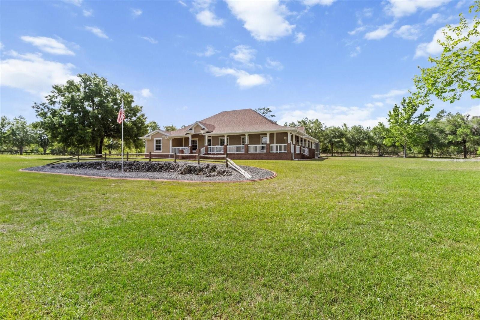 COUNTRY LIVING MEETS LUXURY WITH THIS GORGEOUS POOL HOME ON A 10 ACRE ESTATE IN BEAUTIFUL PINERIDGE FARMS! Welcome to your charming farmhouse in Pineridge Farms, a sought-after neighborhood in the heart of Florida’s Nature Coast. No HOA & all the peace & quiet you could ask for! Bring your toys, animals, hobbies, & dreams of a laid-back lifestyle…this property can handle it all! The ideal ranch-style home, complete with a wraparound porch and a vintage screen door that adds just the right touch of country charm. A rambling 2600 sqft of living area features 4 beds & 2 baths. The common area of the home boasts a wide-open concept, anchored by a kitchen built for gathering, complete with a huge island, breakfast bar, Corian counters, & solid wood cabinetry. Gorgeous gleaming hardwood floors throughout the home & tongue and groove pine in the tray ceilings. A large master suite & with plenty of room for a king bed & large furniture. You'll also love the two walk-in closets & walk-in shower. Featuring a split floor plan with the 3 guest bedrooms on the other side of the home ensuring privacy & relaxation. Speaking of relaxation, double doors lead to the massive screened-in back porch & pool area, where you can relax or entertain guests by the glimmering saltwater pool while listening to the trickle of the spill over spa. The pool & spa are heated with solar panels & an electric heat pump, so it’s swim season all year-round. After the day’s work is done, pull up a rocking chair on the wraparound porch, listening to the gentle breeze through the trees. Got toys & tools? Then you need this serious garage! The massive detached garage with three bays (2 front/1 rear), an office/gym (cooled/htd with mini split), full bathroom, its own 200-amp electric panel, & separate septic—great for projects & workshop. Need even more space? Well, there is also a steel 50x61 (approx.) pole barn, perfect for trailers, boats, RVs, & more! Upgrades include ROOF in 2023, a solar-powered entry gate, whole-house wired for surround sound & security, & a storm-safe laundry room with a dog wash station. The boundary of the property is fully fenced with about half of the property cleared & half left in its natural wooded state, giving you a nice balance of function & nature. All of this located in the heart of the Nature Coast, with some of the best fishing, hiking, hunting, biking, & recreation in this part of the nation. This one’s full of charm, space, & freedom—just waiting for you to call it home.