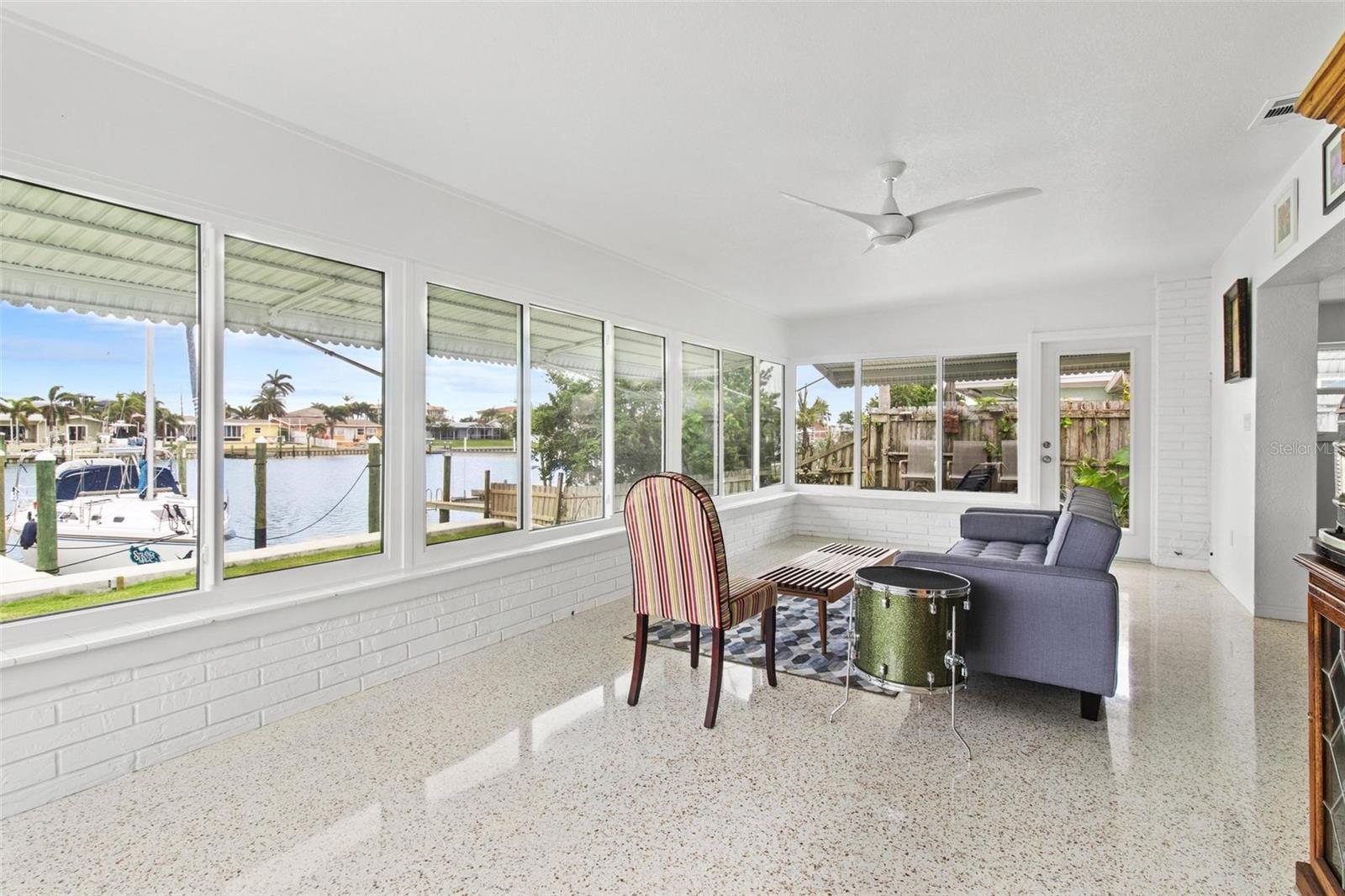 Welcome to your coastal home in the highly sought-after Crystal Island neighborhood of Madeira Beach. This waterfront residence offers the perfect blend of Florida charm and modern updates. Waterfront Living at Its Finest: Situated on a 60' x 115' waterfront lot, this home offers wide canal views and provides quick access to both the Intracoastal Waterway and the Gulf. The home sits a few feet higher than others, and has proven its resilience during Hurricane Helene with very minimal impact. A new seawall and dock (2023) accommodate large vessels, including sailboats, making this an ideal home for boating enthusiasts. Bright, Updated Interiors: Step inside to discover gleaming refinished terrazzo floors throughout, creating a seamless flow between spaces. The bright Florida room serves as a perfect retreat, offering great water views and abundant natural light. The updated kitchen showcases modern quartz countertops, raised-panel cabinetry, stainless steel appliances and a convenient dining peninsula. Recent Upgrades for Peace of Mind: All new impact windows and doors (2023-2025); new shingle roof (2023); updated HVAC system (2021); and new impact-rated garage door (2025). Additional Features: Convenient inside laundry room and included washer/dryer; a spacious two-car garage; and a generous back yard with awning covered patio. This turnkey waterfront property offers the perfect combination of coastal living, modern updates, and boating accessibility. Don't miss this opportunity to own your piece of paradise.