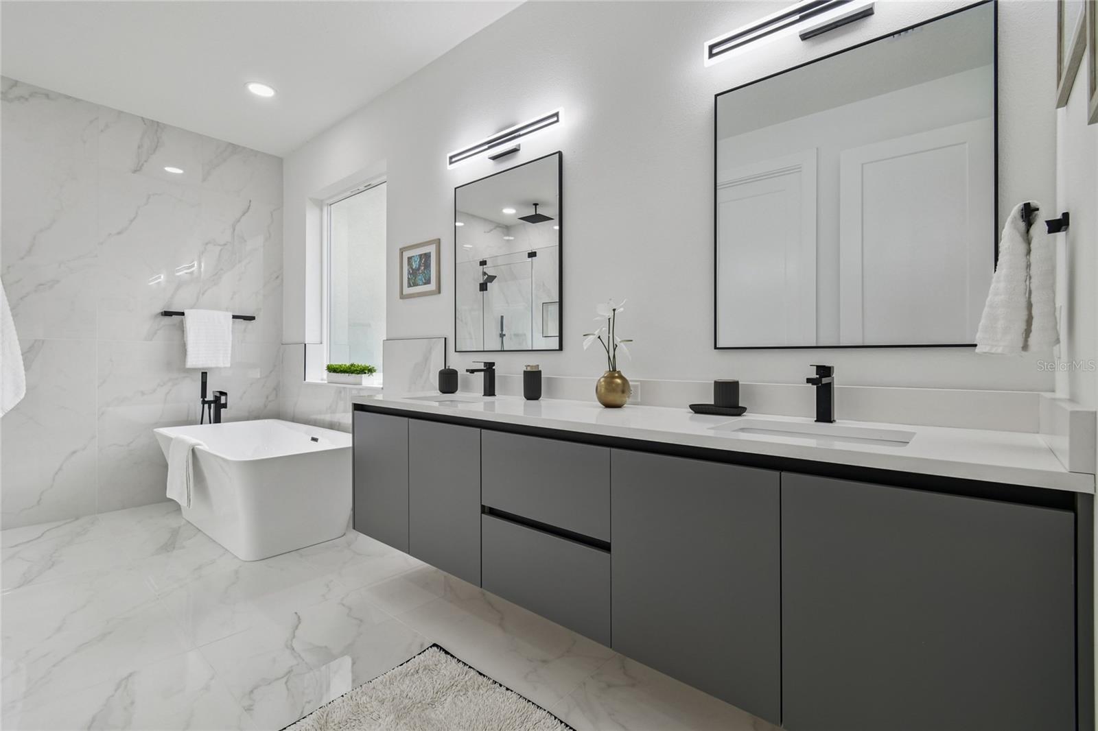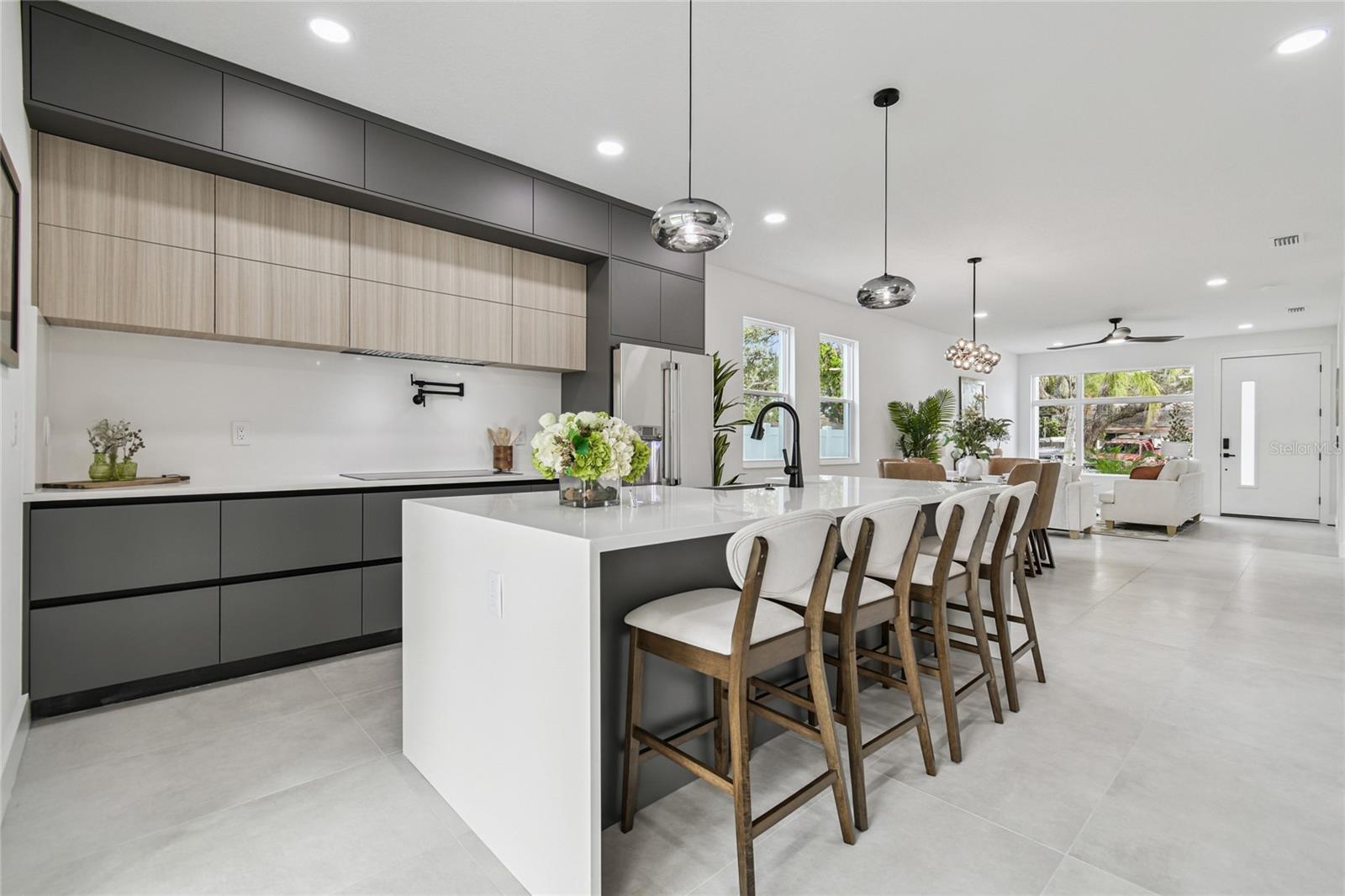 Welcome to this brand-new home, crafted by a local builder and architect in the Tampa Bay area. It promises exceptional quality and design. The builder has carefully selected every element of the house, from the stunning fine stucco finish to the porcelain tile flooring throughout, and the engering hardwood floors covering the stairs and the second floor. The chic chef's kitchen features luxurious cabinetry with all base drawers cabinetry, floor-to-ceiling built-ins, an oversized island with waterfall edges made out of amazing quartz, a pot filler, and the coffee bar is the most complete setup for today's kitchen needs, completed with all handmade CAFE-Branded appliances, a built-in oven, an accessible microwave, hiden hood ventialtion withing the cabinetry fro refininemnt and cosmetic, pot filler, and many more detail. This home features 10-foot ceilings and 8-foot doors, with state-of-the-art amenities and a full bathroom on the first floor, making it ideal for multigenerational living and hosting guests. The primary suite offers an amazing size for an endless-size bed and convenient storage, with a built-in closet. The bathroom features floating cabinets, a stand-alone tub, natural light, and a walk-in shower with a frameless glass enclosure. The beautiful covered back porch, accented with outdoor porcelain tile and ceiling fans, offers a perfect space for relaxation. This home list features impact-resistant windows, a fully fenced yard, smart home features, glass shower enclosures, Dual AC systems, and a walk-in closet in the primary suite. Situated on the serene, private streets of Wellswood, Riverbend, and Seminole Heights, this unique property is conveniently near major Tampa Bay-area attractions, including International Plaza, airports, restaurants, fitness centers, and the Hillsborough River. Explore the nearby areas of the vibrant city of Tampa through the attached images.