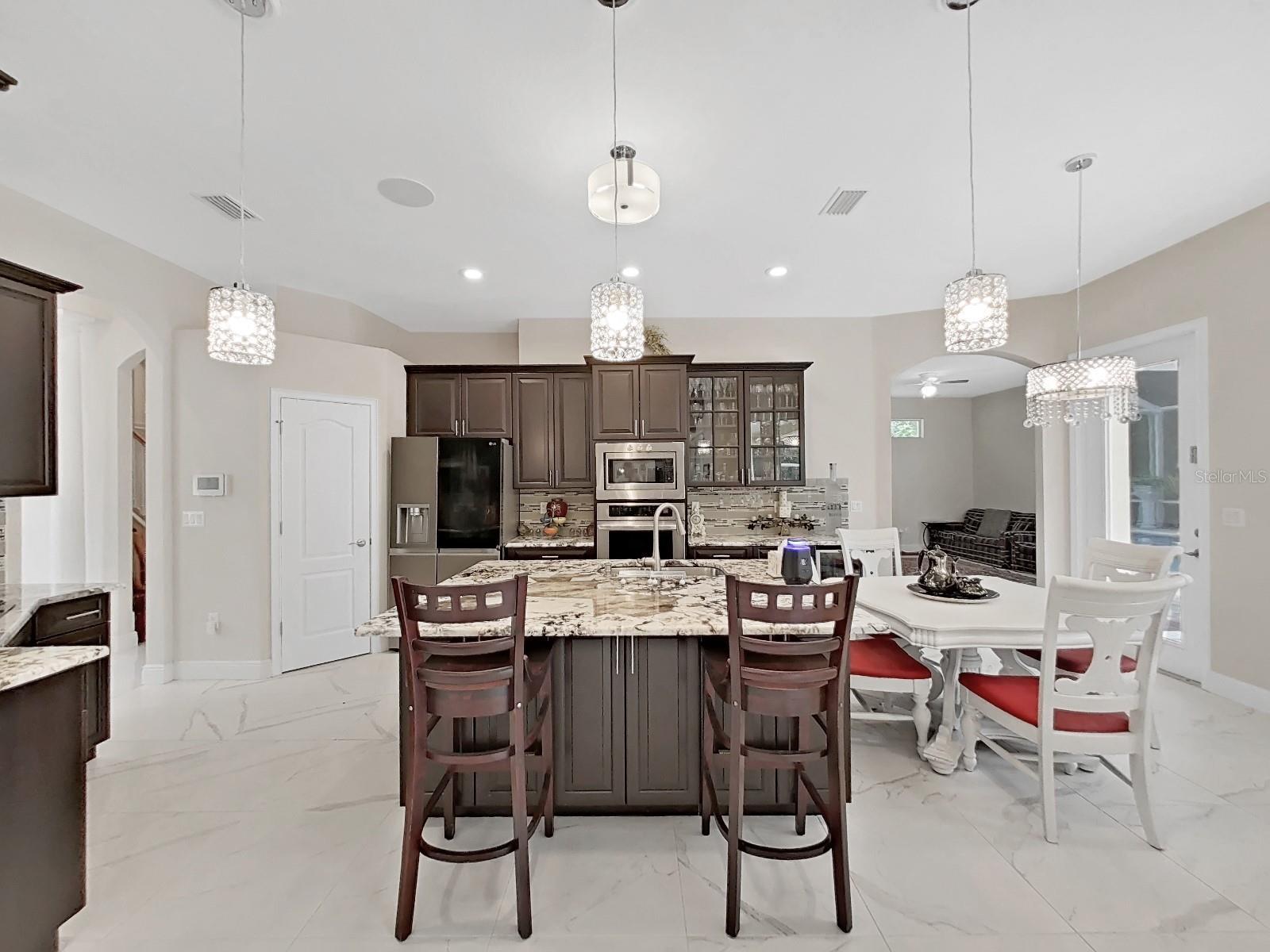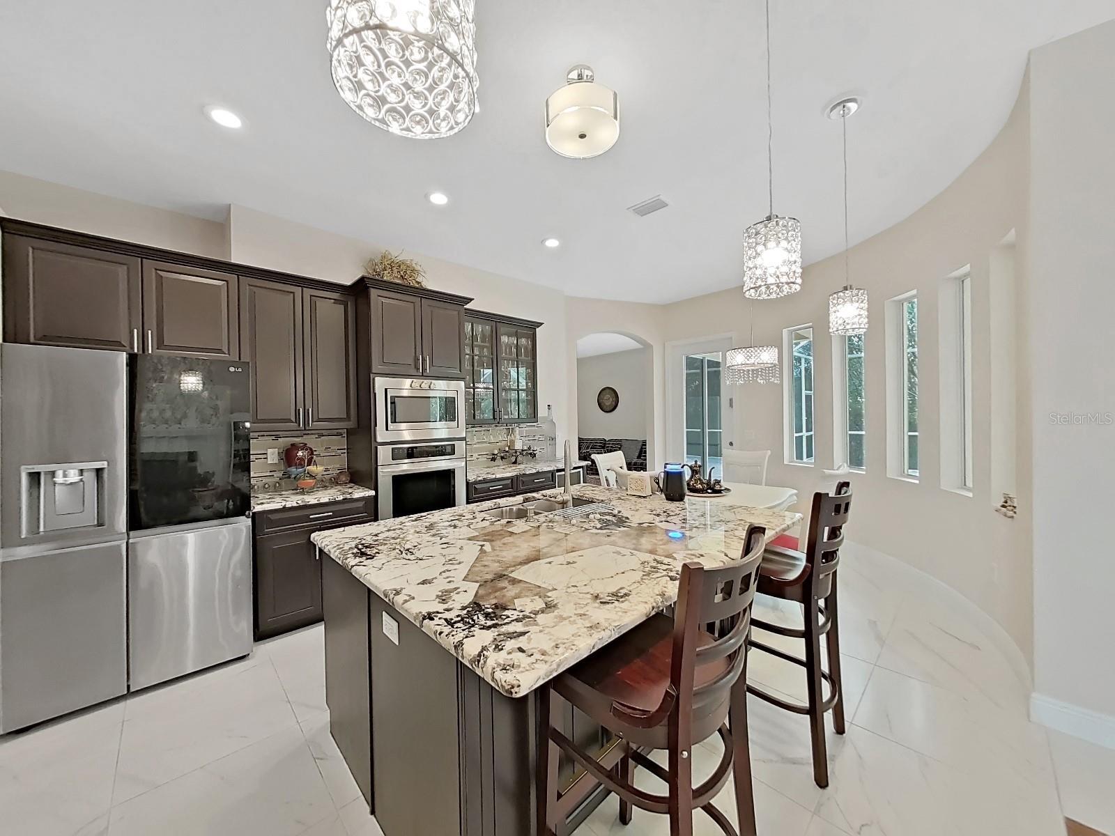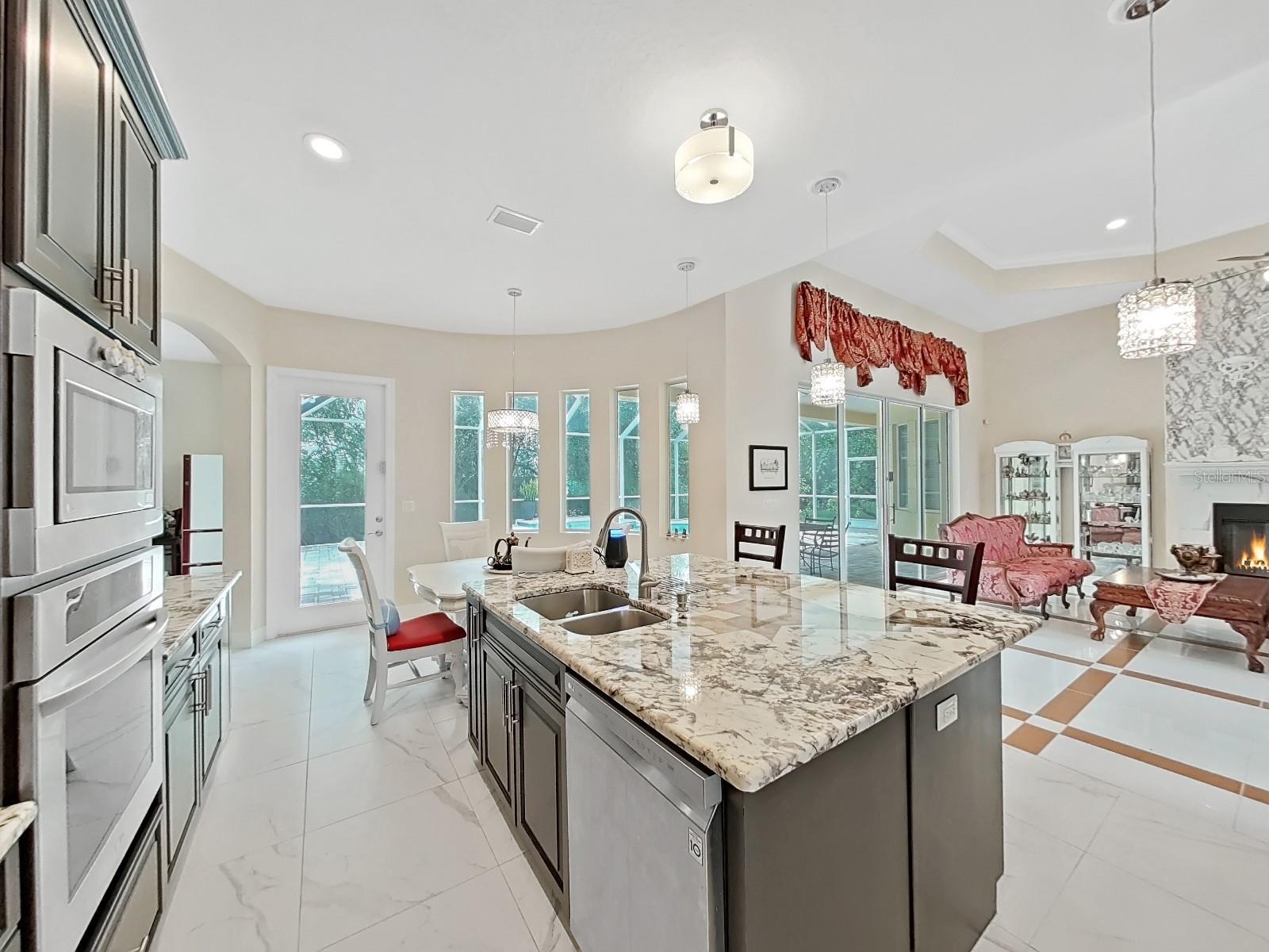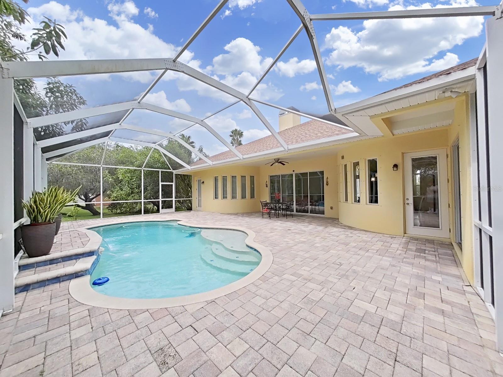 Located in an exquisite GATED community, this spectacular home offers the ultimate combination of luxury, space, and convenience. Nestled on a sprawling homesite of over half an acre, this custom-built masterpiece is not just a home—it’s a retreat from the everyday hustle. Positioned mere moments from life's essentials like Publix, dining hotspots, upscale shopping, medical facilities, pet services, county offices, and banks, you’ll have the best of both worlds: tranquility and convenience at your doorstep.You’ll be captivated by the home’s impressive curb appeal from the moment you arrive. A paved driveway leads to a massive 3-car tandem garage, offering both style and ample space for all your vehicles, toys, and storage needs. The meticulously landscaped front yard sets the tone for what awaits inside—this home exudes elegance and charm at every turn. This beautiful lakeside home perfectly blends modern comfort and nature's tranquility. Boasting 0.53 acre lot , this 4 bedroom, 3 bathroom property is designed for those who love peaceful and luxury living with a view. As you enter, you are greeted with an elegant double entry doors with designer glass inserts featuring high ceilings, exquisite architectural details, and upscale tile flooring. Perfect for entertaining, the formal living and dining rooms are enhanced by a gorgeous fireplace and separate office with double French doors. Once you move past the front door you are greeted by an open-concept living area filled with natural light and a stunning panoramic lake view. The features a stone fireplace, vaulted ceilings and gorgeous tile floors that adds warmth and charm, making it ideal for family gatherings. The spacious kitchen is a chef’s dream, equipped with espresso cabinets, granite countertops, matching backsplash, stainless steel appliances, a wine fridge, and a spacious walk-in pantry. The master suite is a private haven, featuring s a recessed ceiling, crown molding, pool views, and a private lanai door. The master bath is a spa-like retreat, featuring double vanities, his and her sinks, marbled countertops, a soaking tub, and a double-entry shower. Additional highlights include secondary bedrooms on the first floor, and a bonus/guest room with full bath upstairs, each additional bedroom is spacious and filled with natural light, providing comfort and privacy for guests, friends, and family. Step outside to your private patio and enjoy your morning coffee while soaking in the scenic lake views. The backyard extends to the water’s edge, perfect for fishing, kayaking, or simply unwinding by the shore making plenty of space for outdoor entertaining and activities. Moreover, there is your own personal screened-in pool with lighting is perfect for day or night relaxation, and the home includes surround sound, a central vacuum, and a security system. The community of the home includes a community tennis court and enjoy exclusive access to a sprawling ski-sized lake. Don’t Miss Out on This Dream Home! Schedule your private