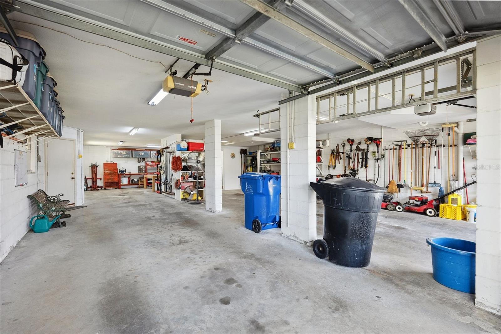 Welcome to 1842 Bayou Grande Blvd NE – where elevated living meets exceptional functionality. This impressive residence offers over 2,500 sq ft of living space, 3 spacious bedrooms, 2.5 baths, and a garage setup that’s truly a rare find. The oversized 5+ car garage is a dream for car collectors, boaters, DIY enthusiasts, or anyone in need of serious storage. With multiple parking bays, built-in tool organization, generous cabinetry, and direct access to the backyard and pool area, this space easily doubles as a workshop, man cave, or flexible recreational zone. Whether you’re tackling projects or hosting poolside gatherings, the garage is as versatile as it is expansive. All main living areas are elevated, with access via a wide staircase and a convenient chair lift. Upstairs, you'll find a light-filled layout with an open living and dining area that connects to a large upper deck—perfect for enjoying morning coffee or evening breezes. The living room features a cozy wood-burning fireplace, perfect for cool evenings or adding charm to your entertaining space. The unique, octagon-style kitchen offers great prep space, a walk-in pantry, and bar seating, overlooking the living area for easy entertaining. The primary bedroom features high ceilings, two closets, and an ensuite bath with double vanities, a soaking tub, and a walk-in shower. Two additional bedrooms and a full bathroom are located down the hallway, along with a dedicated laundry room. The home also includes hurricane-rated windows on the front elevation for added peace of mind. Brand new roof in 2024. Step outside to your private backyard oasis—complete with a pool, tropical landscaping, and plenty of space for relaxing or entertaining under the sun. Located just minutes from parks, local waterfront spots, downtown St. Pete, and easy access to I-275 and the airport, this home combines comfort, convenience, and incredible storage potential.