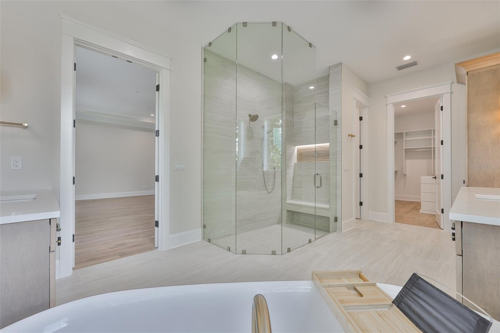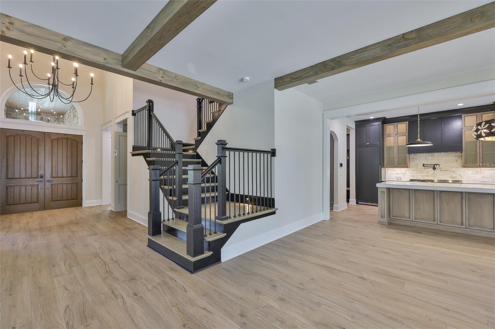 - Crown Molding, Elevator, High Ceilings, In Wall Pest System, Kitchen/Family Room Combo, Open Floorplan, PrimaryBedroom Upstairs, Smart Home, Solid Surface Counters, Stone Counters, Thermostat, Tray Ceiling(s), Walk-In Closet(s)